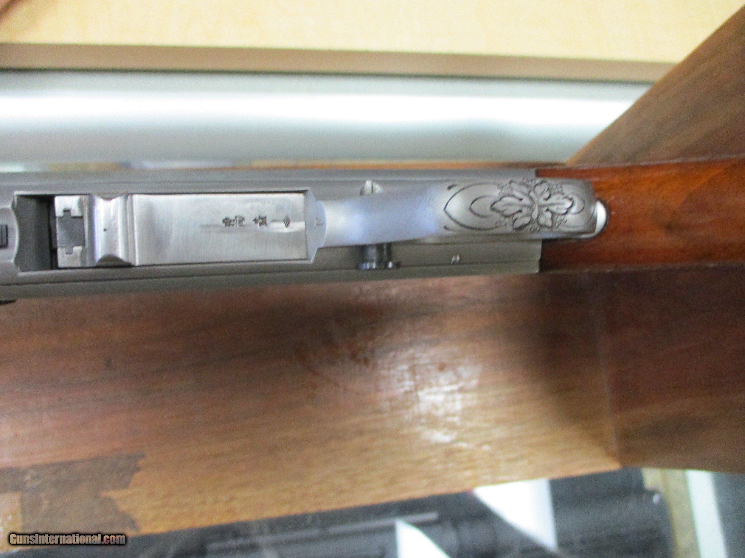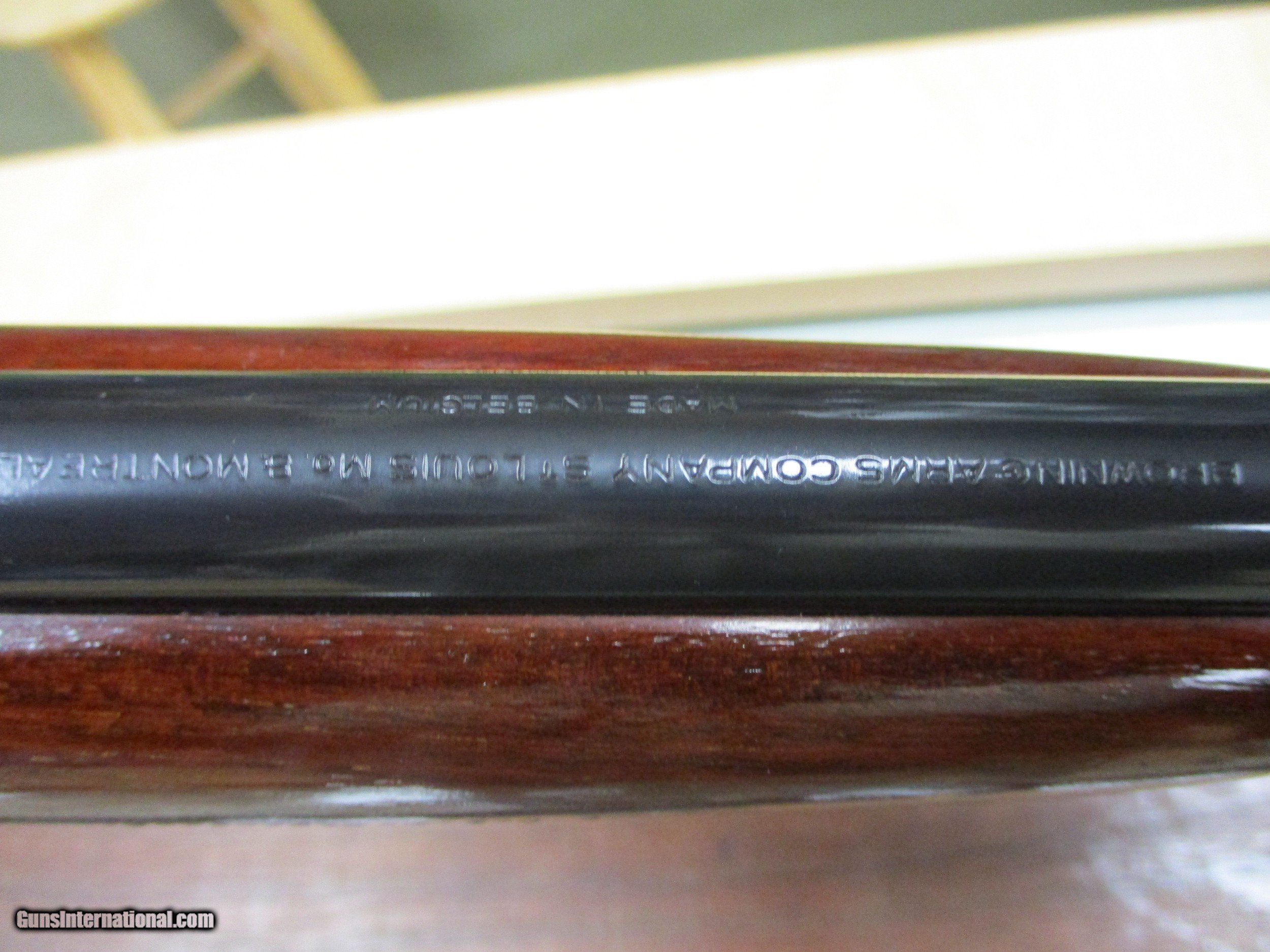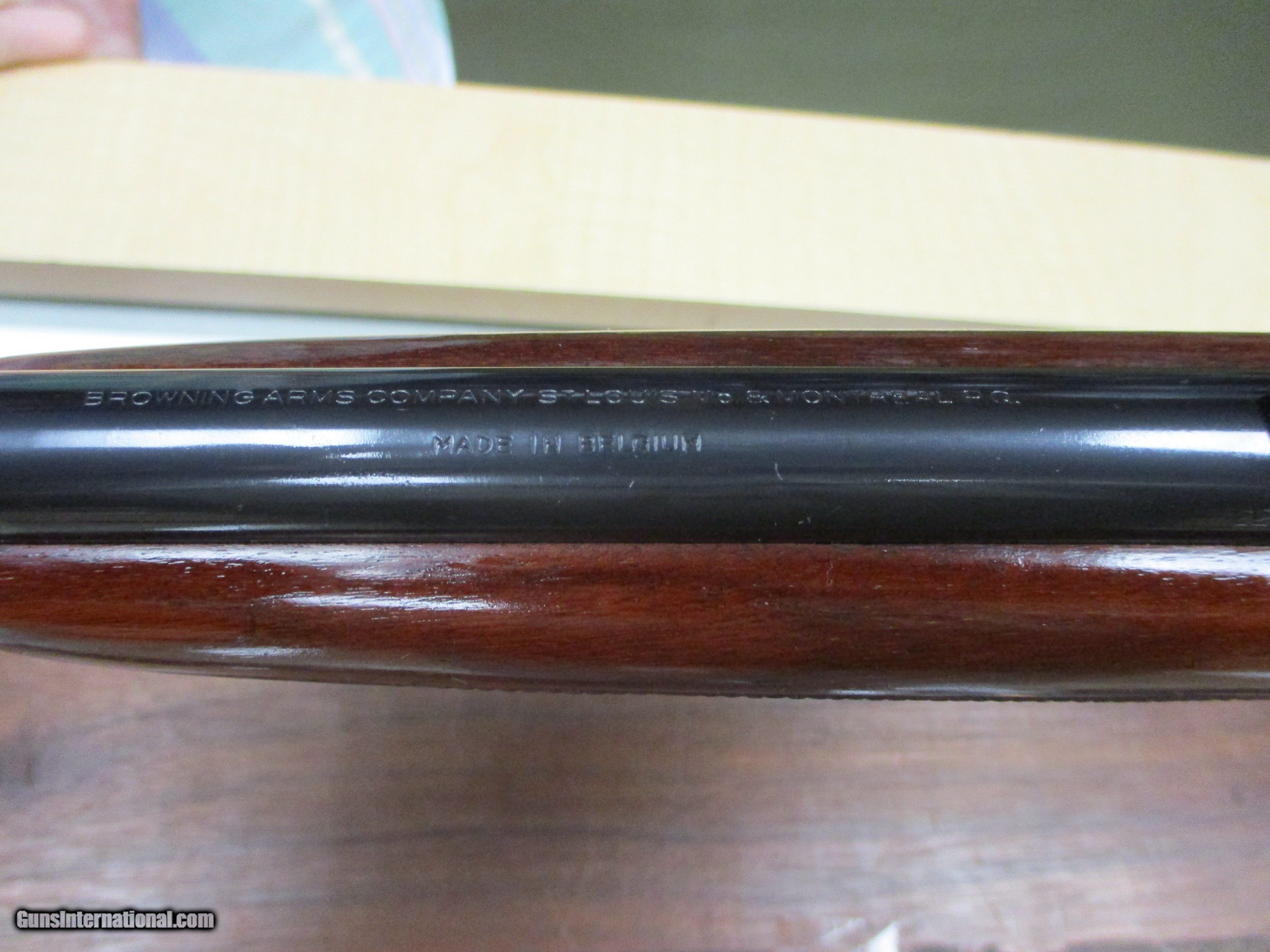 Description: Folks, In this listing we are offering a Browning Belgium SA-22 Semi-Auto 22LR. This early rifle features an engraved reciever with a game sceen with the early wheel sight (see pictures). This rifle is in all original mint condition with 99% wood finish with beautiful tiger striping, 99% original bluing and retains all of the Gold on the Trigger. The rifle is 100% mechanically perfect with a super clean bore, its been shot very little. Please feel free to ask any questions. We do charge 3% for credit cards. No Cailfornia Sales. SOLD Rifle Caliber: .22 Long Rifle Manufacturer: Browning Model: SA-22 Serial Number: T76948 Barrel Length: 19 inch Condition: Mint-99% Metal Condition: 99% Wood Condition: 99% Bore Condition: Mint Action: Semi-Auto Triggers: Gold |