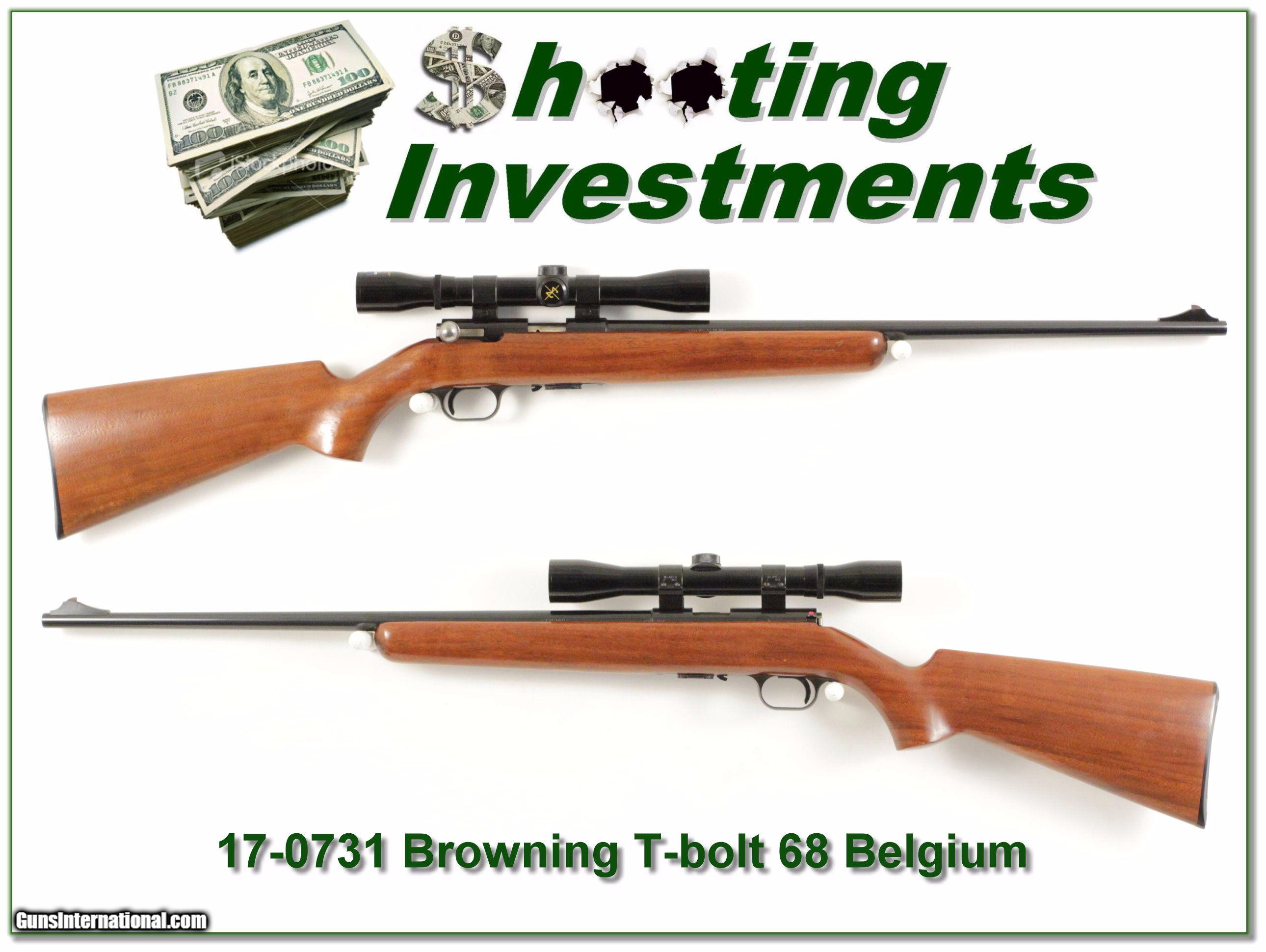 Description: This is an excellent condition Belgium made Browning T-bolt. It was made in 1968 and does not have salt wood. It comes as seen with period scope. I am selling this one on consignment and as such, lay-a-way can’t be used. It does of course have the standard 3-day inspection. Shipping and insurance is $35 or $15 more if you want it shipped in a new Plano hard case. Please email me with any questions or larger pictures. (Consign your quality firearms with Shooting Investments for only 10%! Let me know if you have any you would like to sell!) 17-0731 Payment: Payment is by Money Order, Cashiers Check or Personal Check. I can now also accept MasterCard and Visa with a 3% convenience fee. PayPal can be used for some items but never firearms. Please let us know if you would like to pay via PayPal. Shipping: The shipping charge will be listed in each description. It is $35 for most guns. Some heavy guns or those insured for over $2000 will be higher. Shipments to Alaska and Hawaii are higher because air shipment is required. Most firearms are shipped within 5 days of receipt of payment. We prefer shipping at the beginning of the week to avoid firearms in transit over weekends. We package all shipments carefully and insure them for the full purchase price, rounded up to the next $100. In the unlikely event that damage occurs, it is important that you save all packaging material for the claims process. Optics are shipped Priority Mail and most other non-firearm shipments are shipped First Class. Returns: Our return policy is simple. If for any reason you are not pleased with your purchase, you may return your item for a refund. The only exception is ammunition, it cannot be returned. It is important to us that you are happy. Guns cannot be fired or dissembled before returning them and must be returned in the same condition as received. Notification of a return must occur with-in 3 days of receipt at your dealer. Shipping, convenience and dealer fees are not refundable and are the responsibility of the buyer. Lay-a-way: If needed, we offer a 60 day lay-a-way option on most firearms. It is 1/3 now, 1/3 in 30 days and 1/3 in 60 days. Lay-a-way firearm sales are final. Consigning your firearms with Shooting Investments: We will help you get top dollar for your firearms. While most local guns shops charge 20% or more, our fee is only 10% with a minimum of $50. At your local gun shop it might take months to sell. Selling on-line provides instant access to thousands of interested buyers. You won’t find any other on-line dealer willing to sell your firearms for only 10% or listing every gun on 4 separate s. Selling through an House typically costs the seller 15% and the buyer an addition 15% (so 30%) and you have to wait several months to sell and longer to receive funds. If properly priced, we will sell your firearms in a week or two. Send us an email or give us a call and we’ll explain how easy it is for you to get top dollar. Trading: We collect guns and usually just trade for guns we want to add to our collections. We often sell guns for others wanting to purchase one of ours. We find this the most fair to both of us. Our Commission is only 10% and we hold the gun you want until yours sells. Please contact us if you want to sell one of yours to buy one of ours. Help for California Buyers: We are happy to ship to California. It is the buyer’s responsibility to make sure any item you buy is legal in your state. We are also happy to help with your purchase of a firearm from someone other than us. If you see a gun you would like to buy but the seller can’t or won’t ship to California we can help. You buy the gun and have it shipped to us. We’ll then ship it to your California dealer. The cost for this service is only $30 + shipping. Let me know if we can help! SOLD |