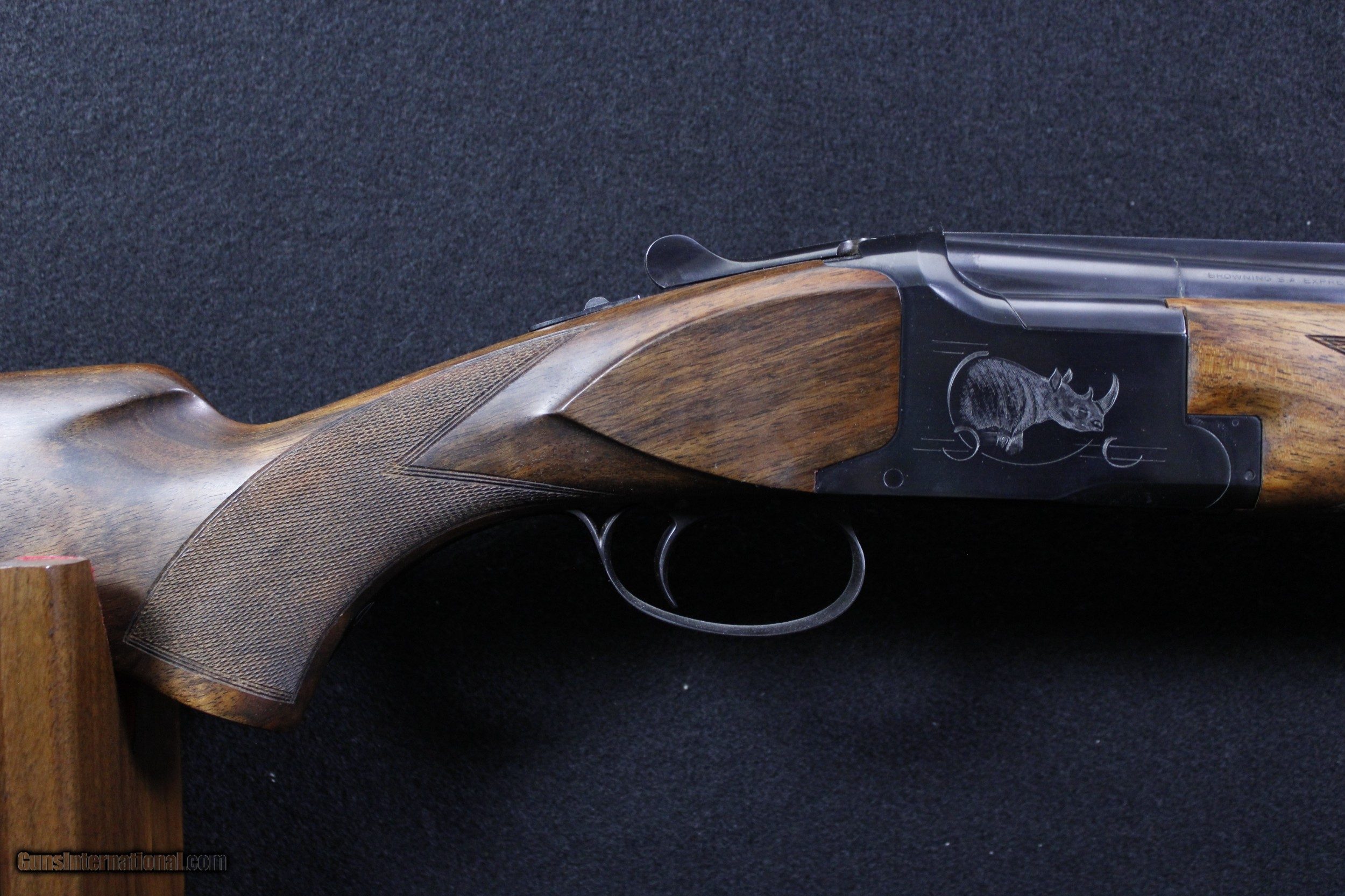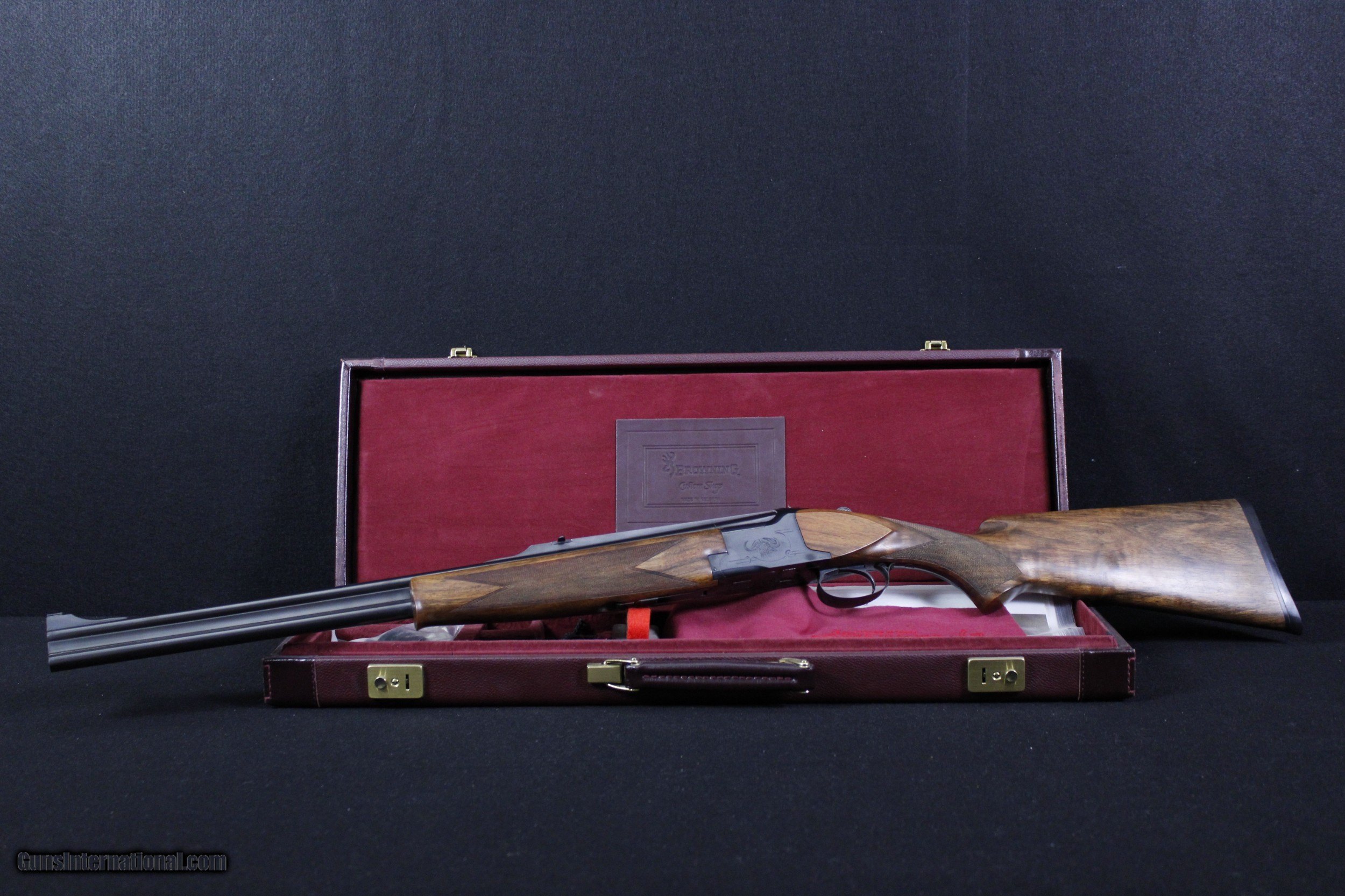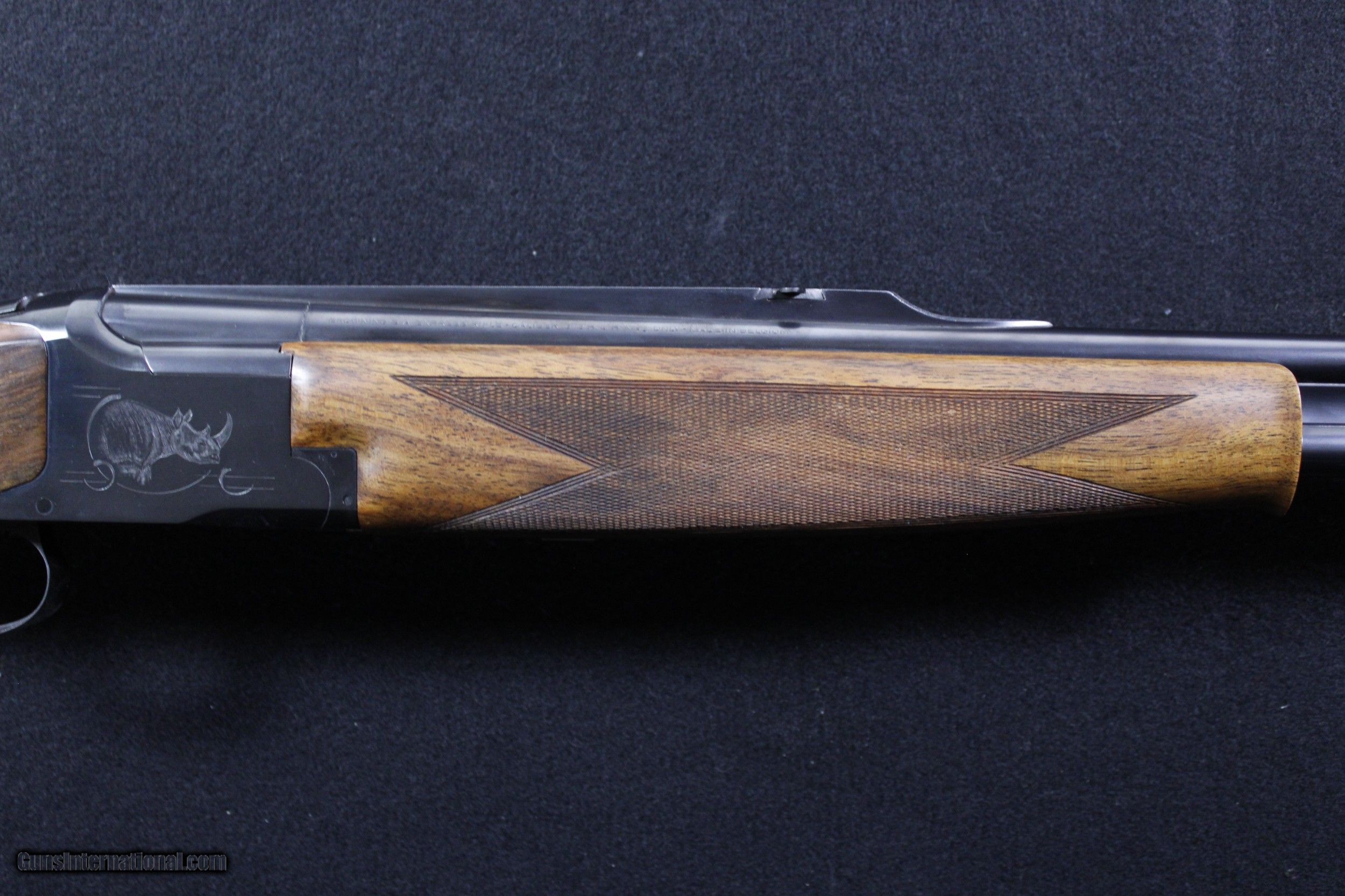 Description: Belgium made to order Browning CCS25 Express double rifle chambered in .375 H&H Mag with gorgeous wood. Manufactured in 1998 and signed by Master Engraver Claudia Perfido this double rifle is new in box and comes with a Browning take down case. Dimensions are as follows; BBL. 24" WT. 9lb 0oz. DIM. 14 1/2" L.O.P. On Sale!! Was $24950 Now $19995 SOLD |
