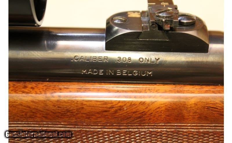 Description: This Browning FN High-Power Safari Grade chambered in .308 win, is in excellent shape over all, there are some small dings throughout the stock, bore is bright and shiny, rifling has strong lands and grooves, bluing is almost untouched. .308 Winchester SOLD Metal Condition: Excellent Wood Condition: Excellent Bore Condition: Excellent Barrels: 22" inch Weight: 7.5 lbs Item Location: Hoffman Estates, IL |
