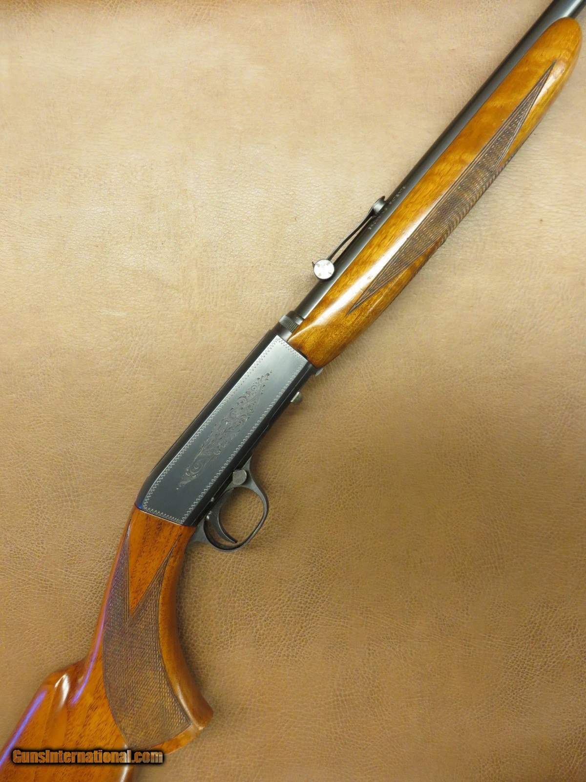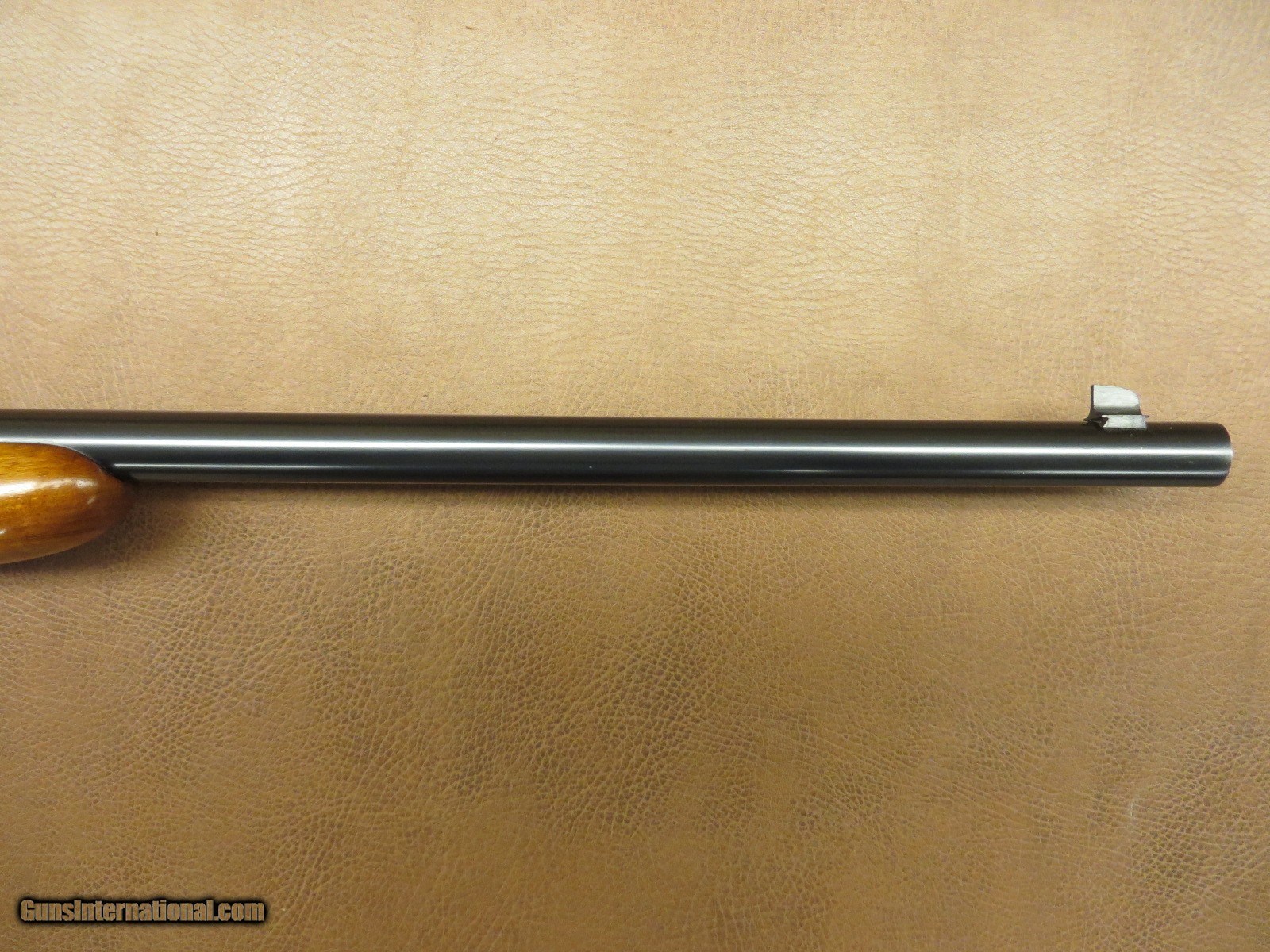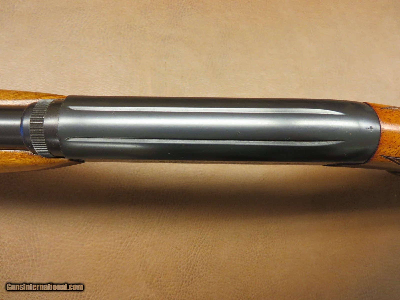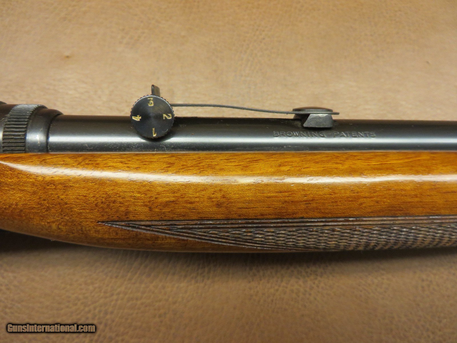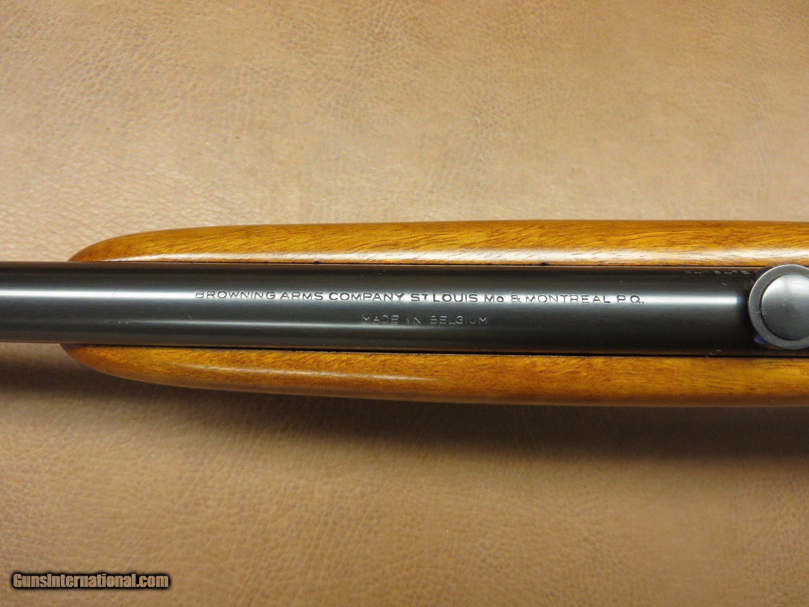 Description: .22 Long Rifle has 19 inch barrel with original sights including wheel adjustable rear. Made in Belgium in 1959. Engraved receiver grooved for scope mounting. Checkered walnut with original steel butt plate and magazine tube thru butt. All in 98% condition. SOLD |