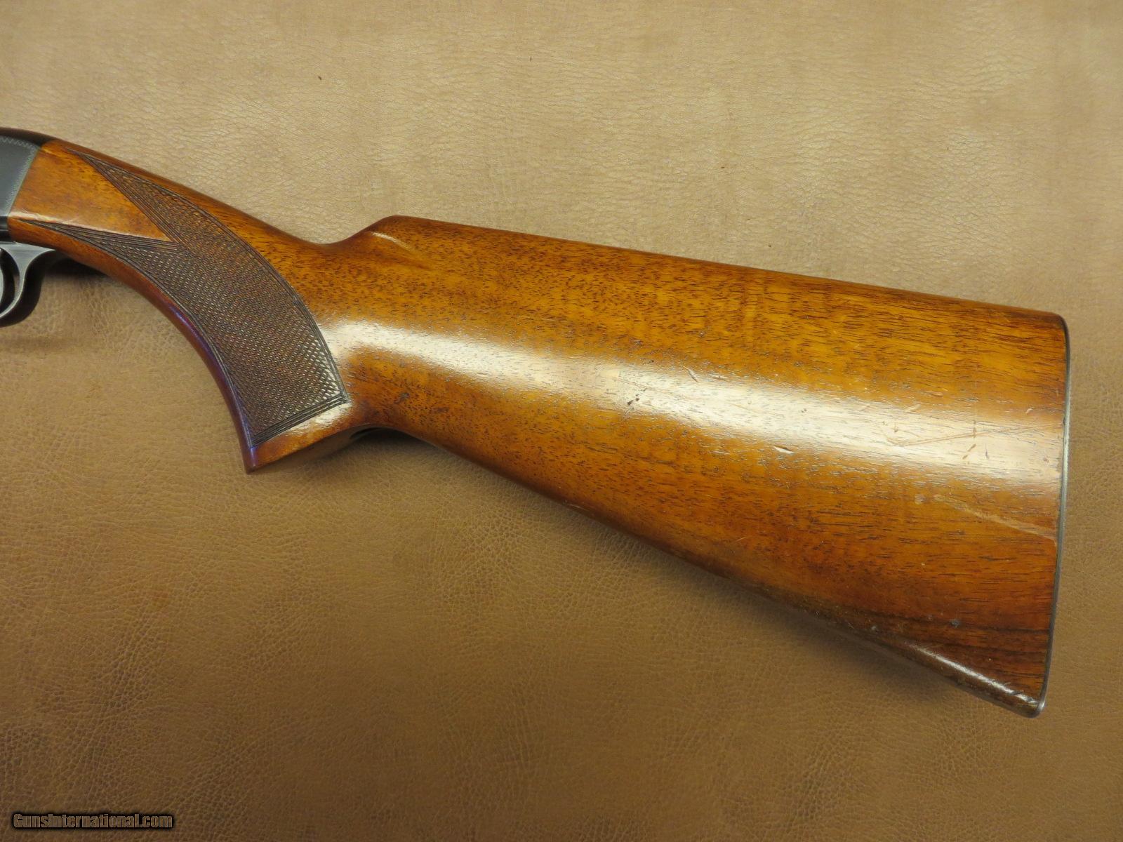 Description: .22 Long Rifle has 19 inch barrel with original sights including wheel adjustable rear. Made in Belgium in 1958. Grooved receiver for scope mounting. Checkered walnut with original steel butt plate and magazine tube thru butt. Small chip of wood missing on left side of forend at rear. Blue is 95%+ and the wood is 90-95%. SOLD |