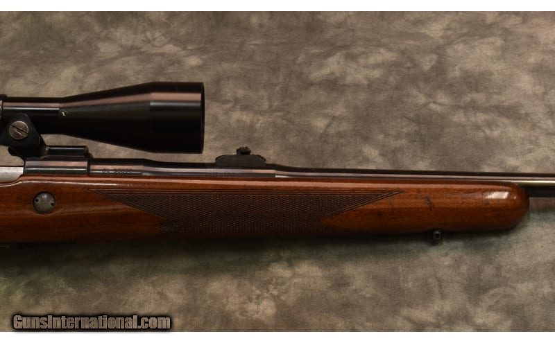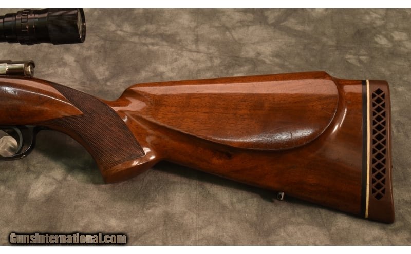 Description: Very nice Browning Hi-Power rifle in .30-06 built in Belgium with controlled round feed action. Includes a Bausch & Lomb Balvar 8A scope which has adjustments in the mounts. .30-06 Springfield SOLD Metal Condition: Very Good with minor wear from use Wood Condition: Very Good with minor wear Bore Condition: Excellent Bright Shiny Bore Barrels: 22" Barrel Weight: 8 lbs 9 oz Sights: "Original folding rear sight and hooded front sight. Includes, period correct Bausch & Lomb Balvar 8A. Adjustments are built into the mounts. Item Location: Springfield, MO |