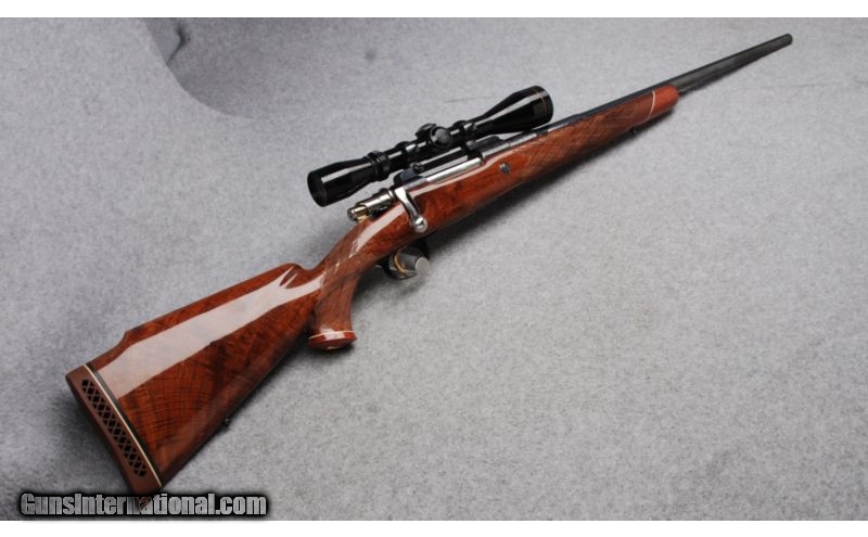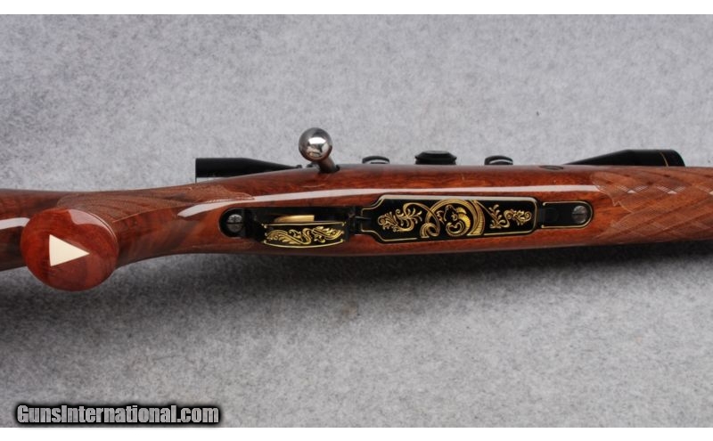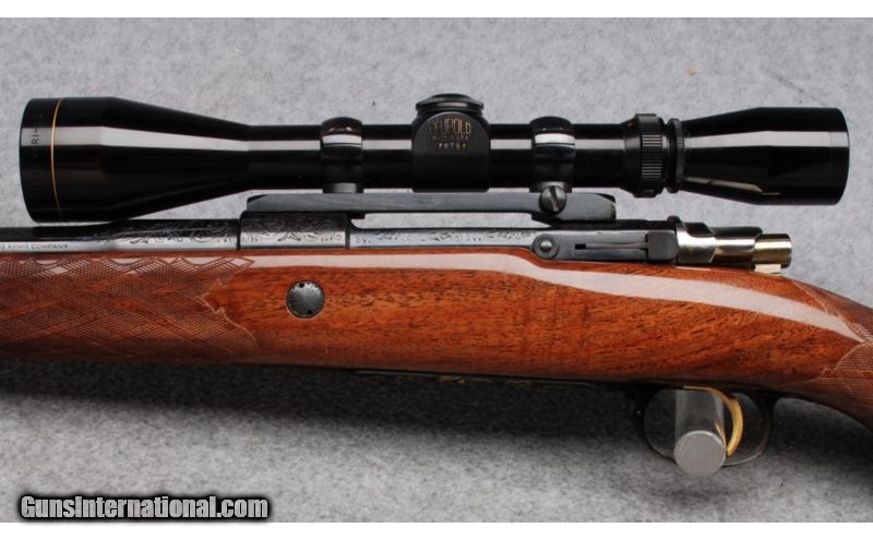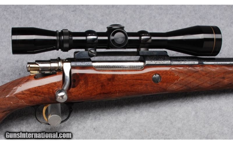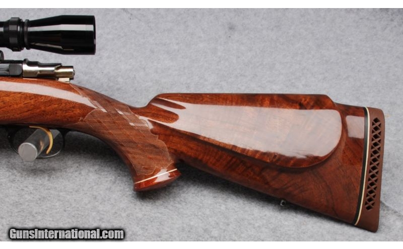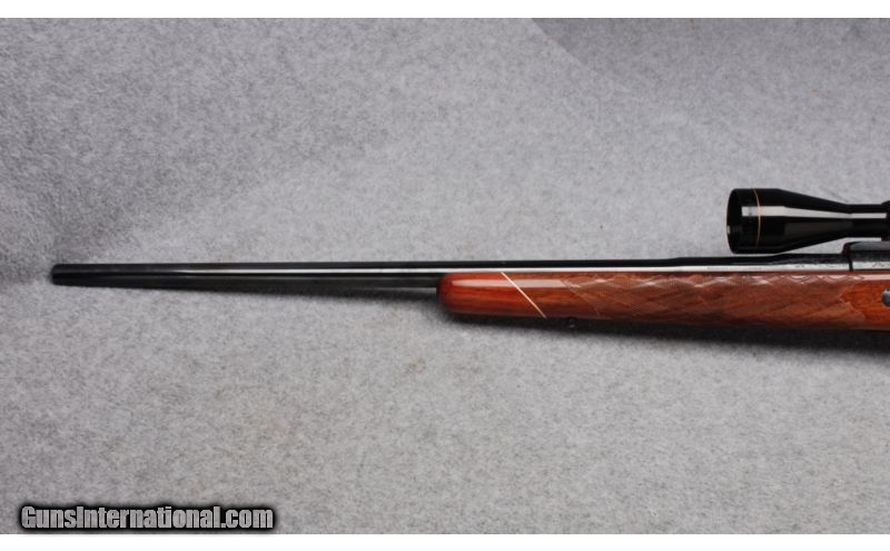 Description: This is a made in Belgium Browning Hi Power Safari Bolt Action rifle in .300 Winchester Magnum. The action, the rear part of the barrel, and the floorplate are engraved. The floorplate is gold inlaid. The stock is Monte Carlo style in High Grade walnut with skip line checkering and contrasting fore end and pistol grip caps. Condition of wood and metal is Excellent. The bore is bright and shiny. This rifle is equipped with a Leupold 3-9 Vari-X III scope in a 1 piece Redfield mount. The scope and mount are included in the price of the rifle and will not be removed and the rifle repriced without them. SOLD Caliber Info: .300 Winchester Magnum Metal Condition: Excellent Wood Condition: Excellent Bore Condition: Bright and Shiny Barrels: 24 Triggers: Gold Stock: Monte Carlo Style High Grade Walnut with Skip Line Checkering and Contrasting Fore End and Pistol Grip Caps Stock Dimensions: LOP 13 1/2 Butt Pad: Browning Ventilated Rubber Sights: Leupold 3-9 Vari-X II Scope in a 1 Piece Redfield mount Item Location: Reno, NV |