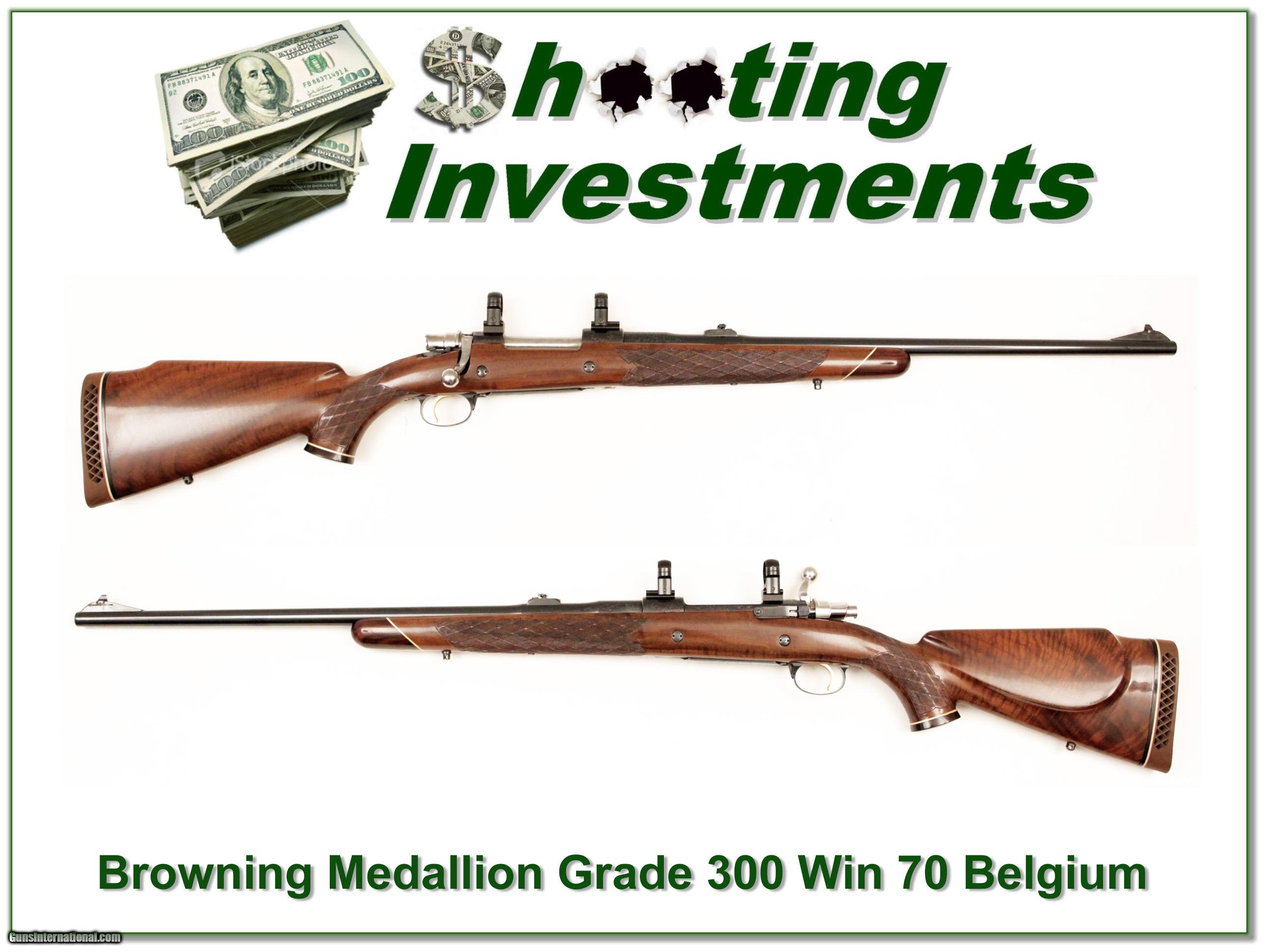 Description: This is a Beautiful Browning Medallion made in 300 Winchester. It was made in Belgium in 1970 and has been used. It was restored with wood and blue and is now in excellent condition. It was a saltwood gun. I am selling this one on consignment and as such lay-a-way can’t be used. It does of course have the standard 3 day inspection. Shipping and insurance is $35 or $15 more if you want it shipped in a new Plano hard case. Please email me with any questions or larger pictures. (I now consign quality firearms only 10%! Let me know if you have any you would like to sell!) [16-0504] Payment: Payment is by Money Order, Cashiers Check or Personal Check. I can now also accept MasterCard and Visa with a 3% convenience fee. PayPal can be used for some items but never firearms. Please let us know if you would like to pay via PayPal. Shipping: The shipping charge will be listed in each description. It is $35 for most guns. Some heavy guns or those insured for over $2000 will be higher. Shipments to Alaska and Hawaii are higher because air shipment is required. Most firearms are shipped within 5 days of receipt of payment. We prefer shipping at the beginning of the week to avoid firearms in transit over weekends. We package all shipments carefully and insure them for the full purchase price, rounded up to the next $100. In the unlikely event that damage occurs, it is important that you save all packaging material for the claims process. Optics are shipped Priority Mail and most other non-firearm shipments are shipped First Class. Returns: Our return policy is simple. If for any reason you are not pleased with your purchase, you may return your item for a refund. The only exception is ammunition, it cannot be returned. It is important to us that you are happy. Guns cannot be fired or dissembled before returning them and must be returned in the same condition as received. Notification of a return must occur with-in 3 days of receipt at your dealer. Shipping, convenience and dealer fees are not refundable and are the responsibility of the buyer. Lay-a-way: If needed, we offer a 60 day lay-a-way option on most firearms. It is 1/3 now, 1/3 in 30 days and 1/3 in 60 days. Lay-a-way firearm sales are final. Consigning your firearms with Shooting Investments: We will help you get top dollar for your firearms. While most local guns shops charge 20% or more, our fee is only 10% with a minimum of $50. At your local gun shop it might take months to sell. Selling on-line provides instant access to thousands of interested buyers. You won’t find any other on-line dealer willing to sell your firearms for only 10% or listing every gun on 4 separate s. Selling through an House typically costs the seller 15% and the buyer an addition 15% (so 30%) and you have to wait several months to sell and longer to receive funds. If properly priced, we will sell your firearms in a week or two. Send us an email or give us a call and we’ll explain how easy it is for you to get top dollar. Trading: We collect guns and usually just trade for guns we want to add to our collections. We often sell guns for others wanting to purchase one of ours. We find this the most fair to both of us. Our Commission is only 10% and we hold the gun you want until yours sells. Please contact us if you want to sell one of yours to buy one of ours. Help for California Buyers: We are happy to ship to California. It is the buyer’s responsibility to make sure any item you buy is legal in your state. We are also happy to help with your purchase of a firearm from someone other than us. If you see a gun you would like to buy but the seller can’t or won’t ship to California we can help. You buy the gun and have it shipped to us. We’ll then ship it to your California dealer. The cost for this service is only $30 + shipping. Let me know if we can help! SOLD