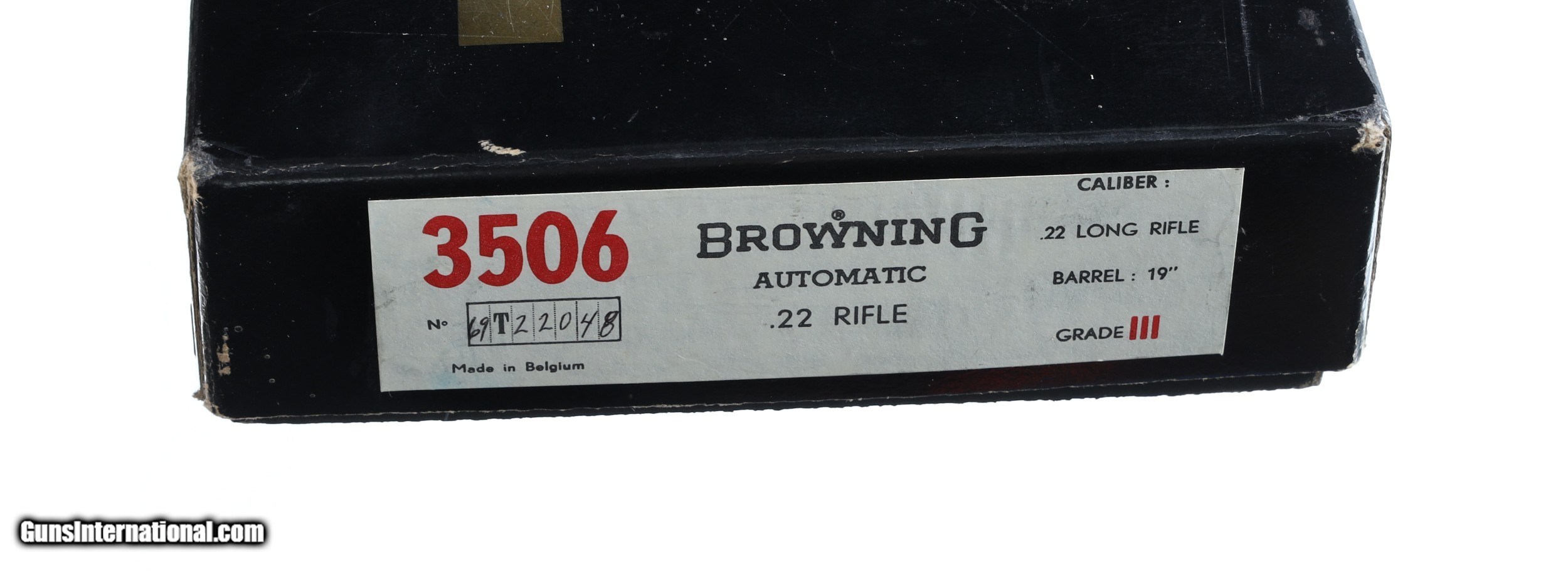 Description: Excellent plus to near mint condition, splotch of soft grease on right side of receiver. Mfd in Belgium. With factory box. Left side vignette is signed "L. LAMBERT". Mfd circa 1969. • Free Shipping, No Credit Card Fees. • Lay-a-way available for this firearm. • 1/3 Down, a 1/3 in 30 Days 1/3 in 60 Days. SOLD Curio/Relic: Yes Manufacturer: Browning Model: SA-22 Serial Number: 69T22048 Barrel Length: 19 |