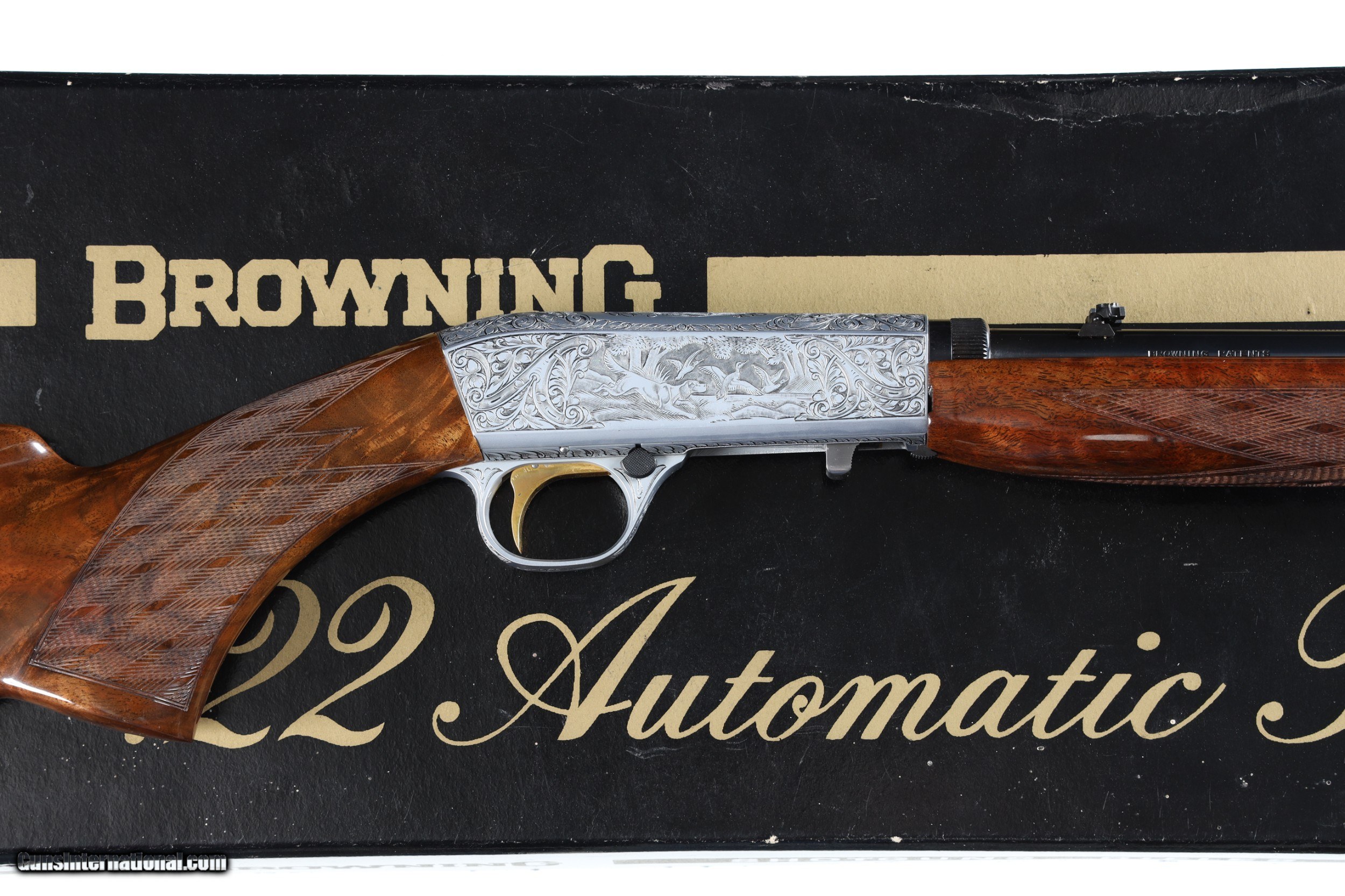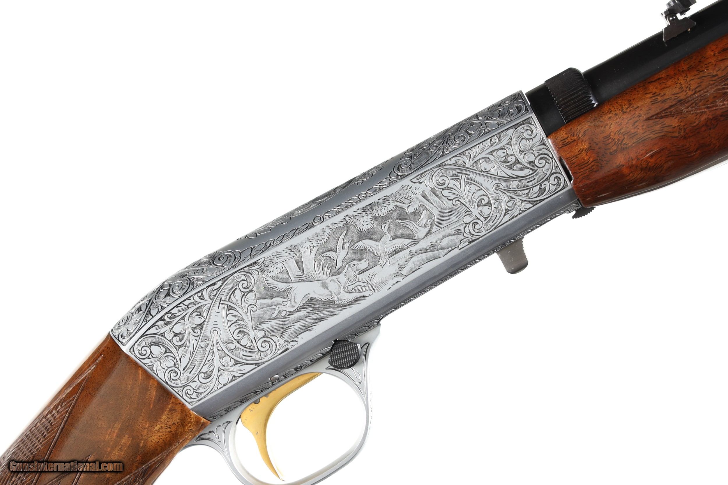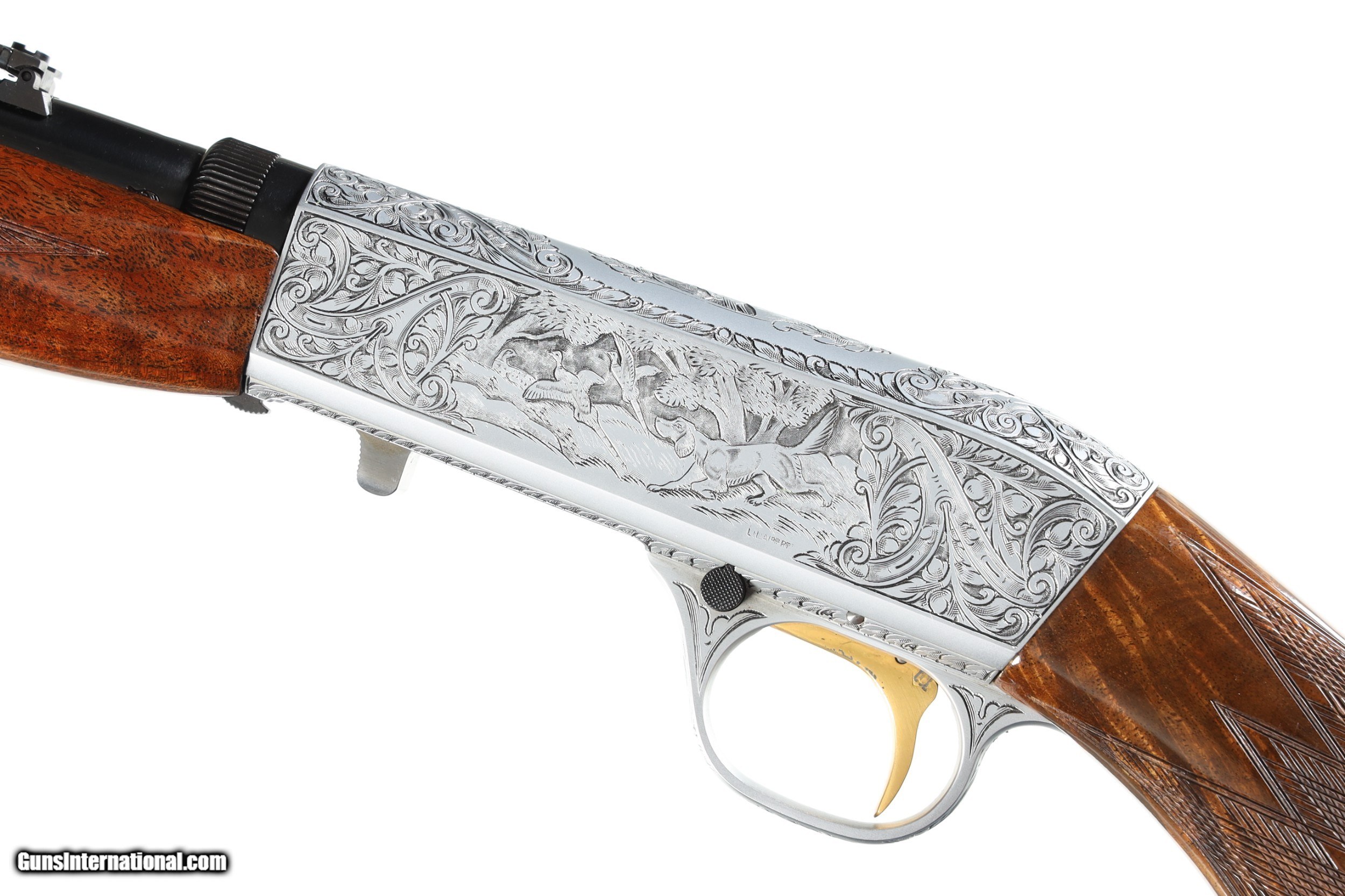 Description: Excellent plus overall condition with factory box, minimal to no handling marks. Receiver is fully engraved with game scenes on both sides by engraver L. Lambert with signed signature on left side. Grade III mfd in Belgium. • Free Shipping, No Credit Card Fees. • Lay-a-way available for this firearm. • 1/3 Down, a 1/3 in 30 Days 1/3 in 60 Days. SOLD Curio/Relic: Yes Manufacturer: Browning Model: SA-22 Serial Number: 70T35895 Barrel Length: 19 1/2 |