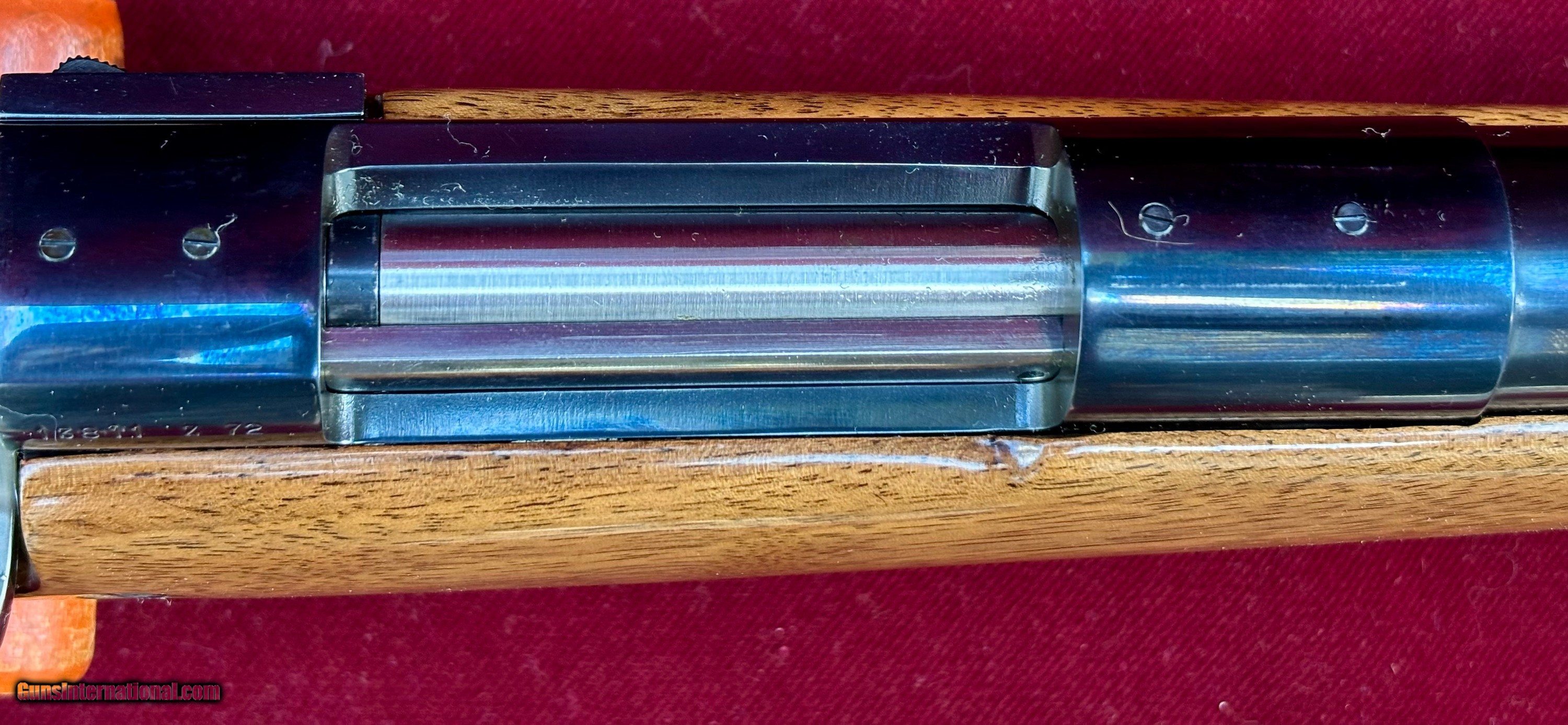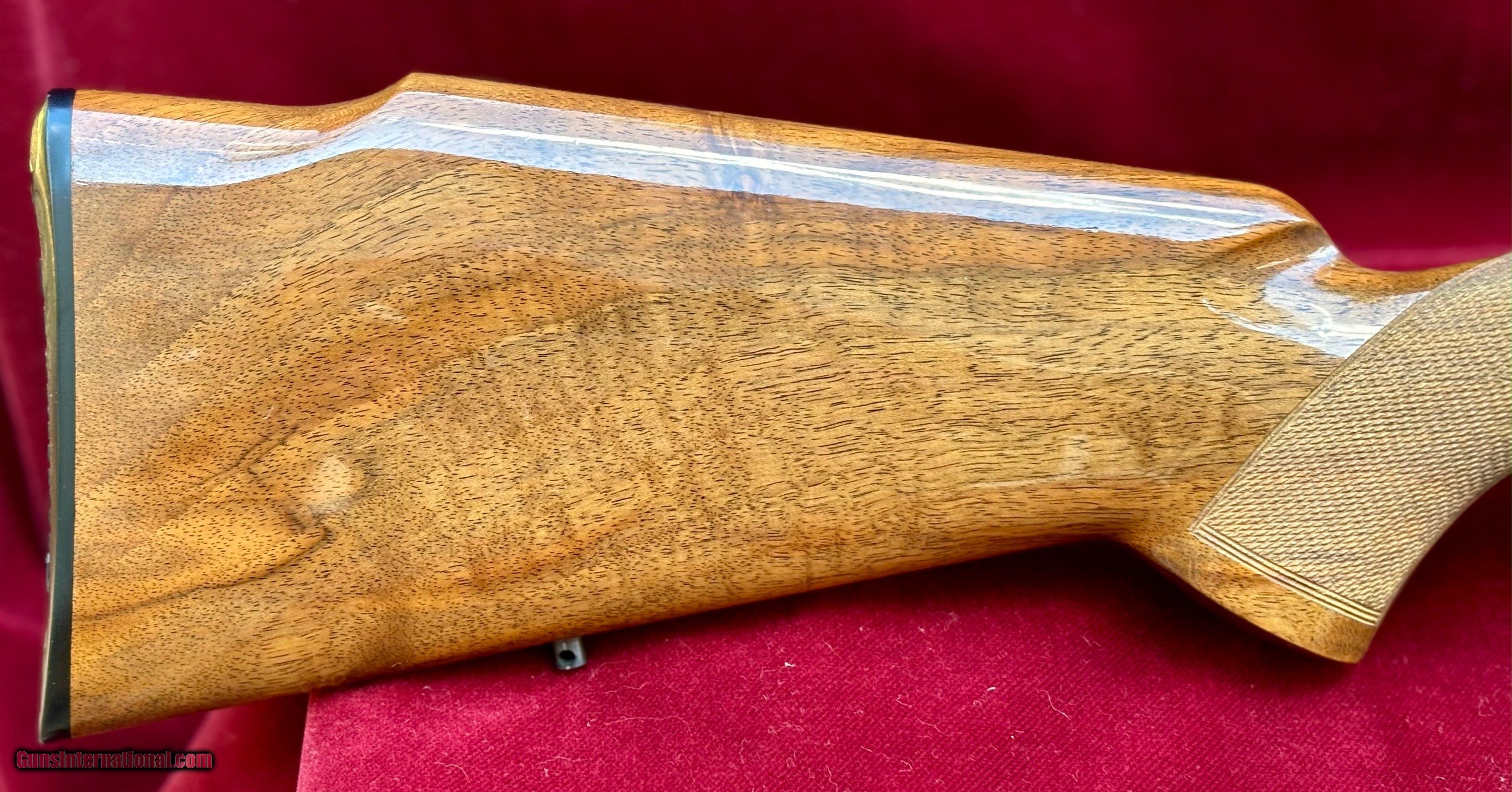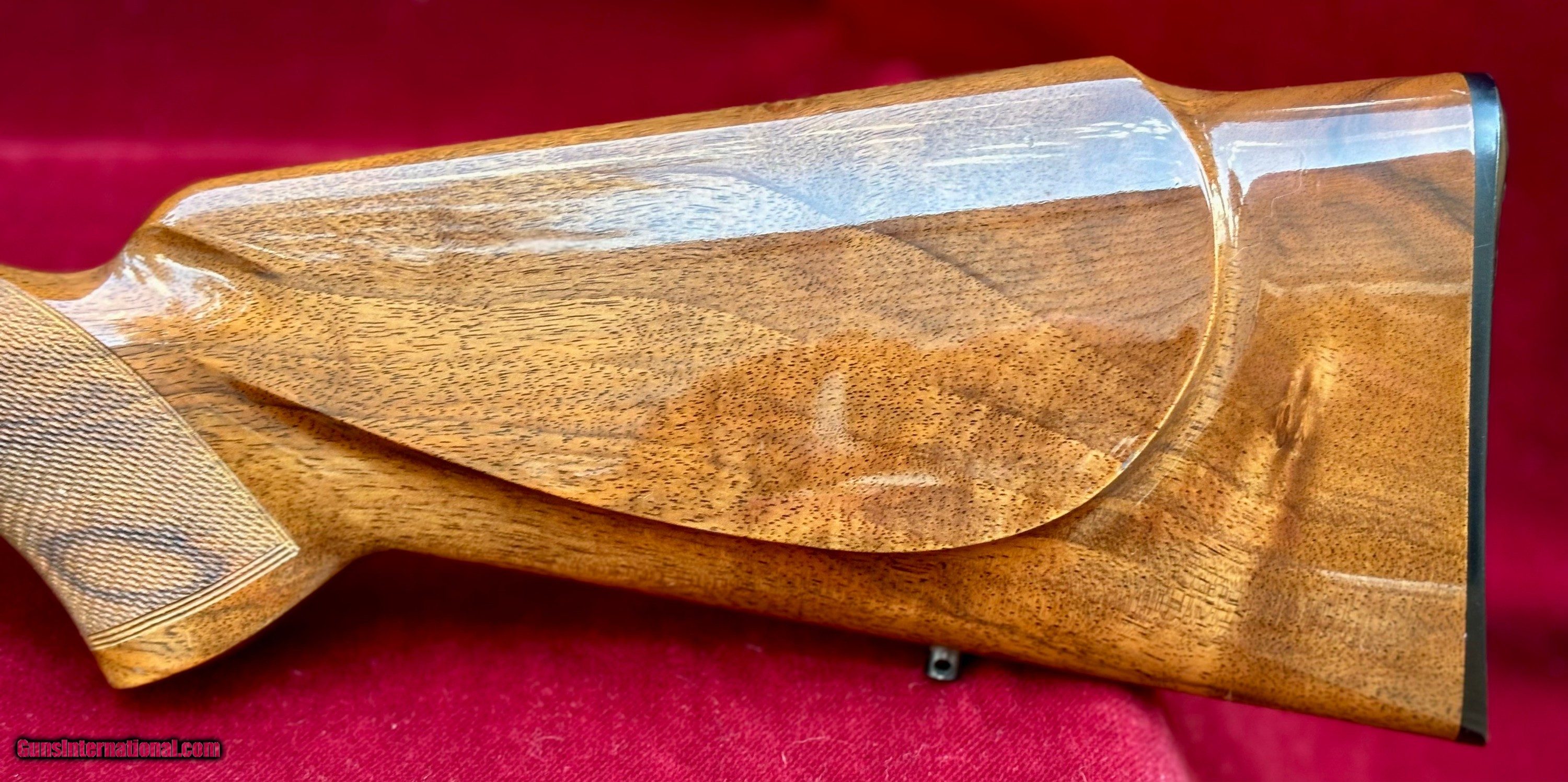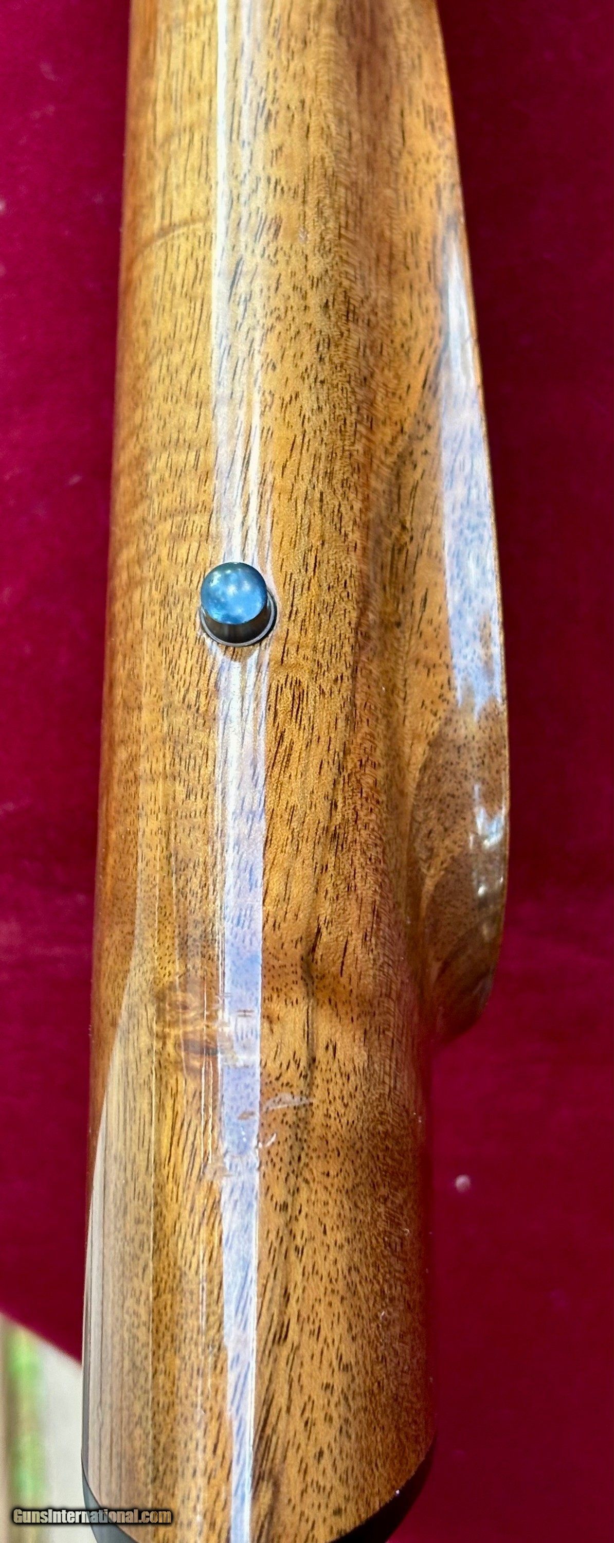 Description: Browning Safari 22/250-24" heavy barrel. Made 1972. Blue 99% overall. Shows very light evidence of a scope mounted at one time. Nice light colored wood that is 99% overall, has 8-10 small handling marks. Imported-BV-Lynden, Wa. Logo is under the bolt knob and is visable only when bolt is opened. C&R FFL ok. Shipping and Ins. extra. SOLD Curio/Relic: Yes Rifle Caliber: .22-250 Remington Manufacturer: BROWNING Model: SAFARI Action: BOLT |