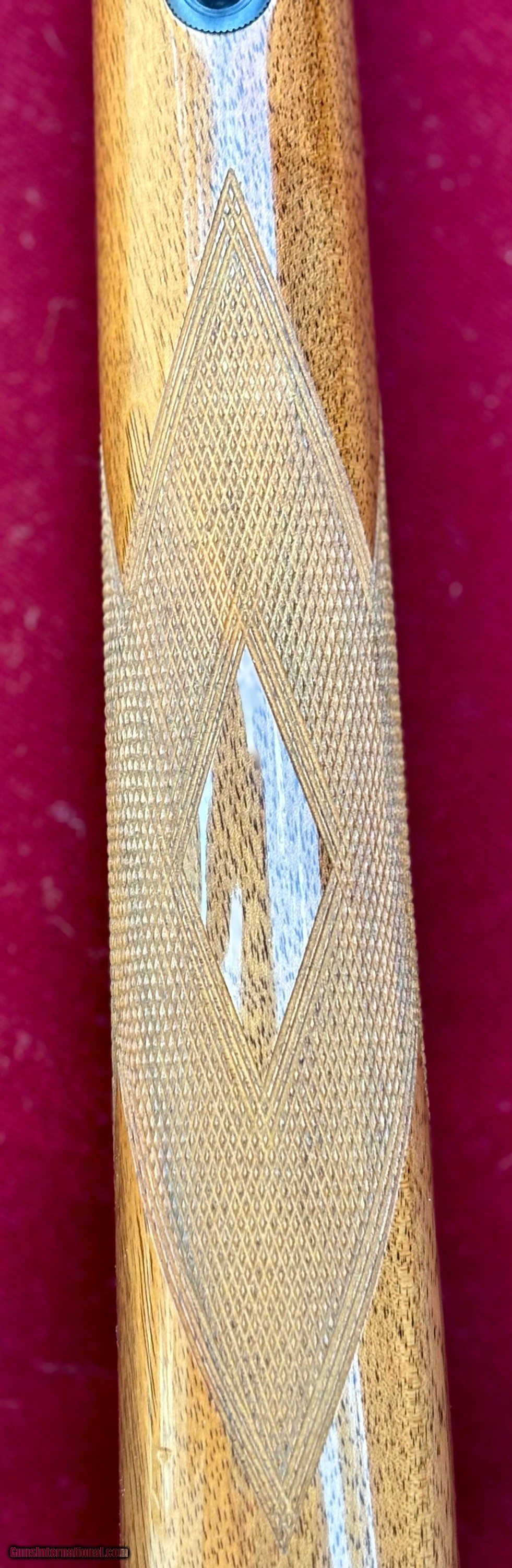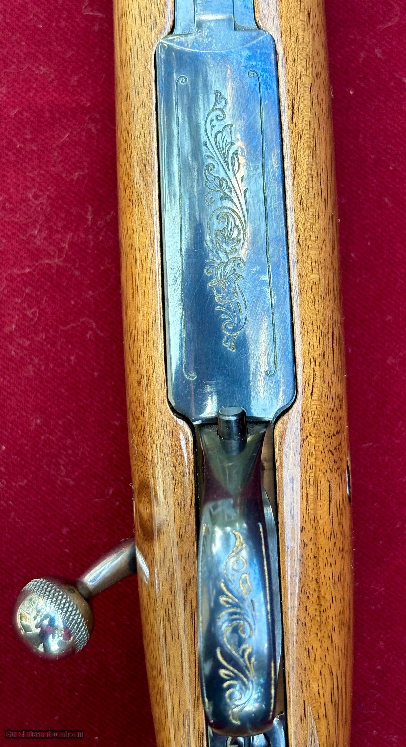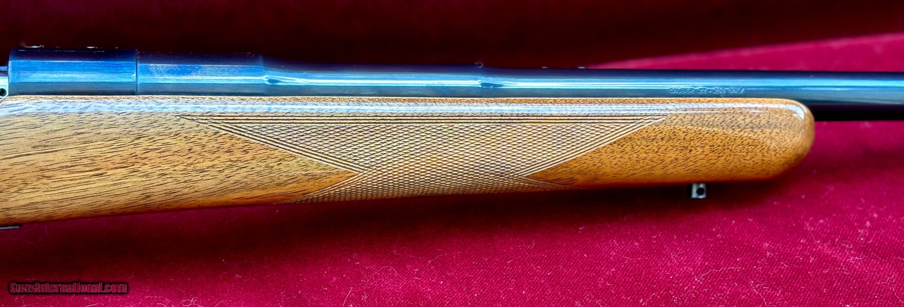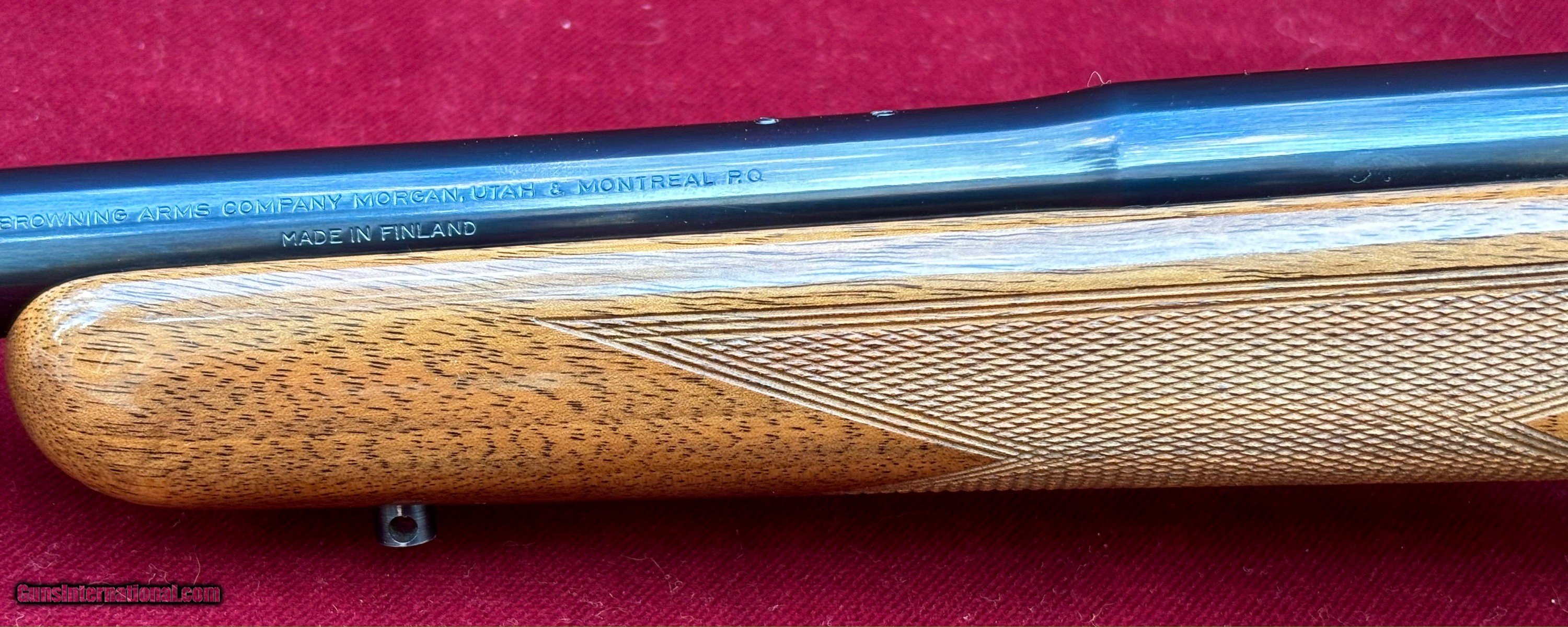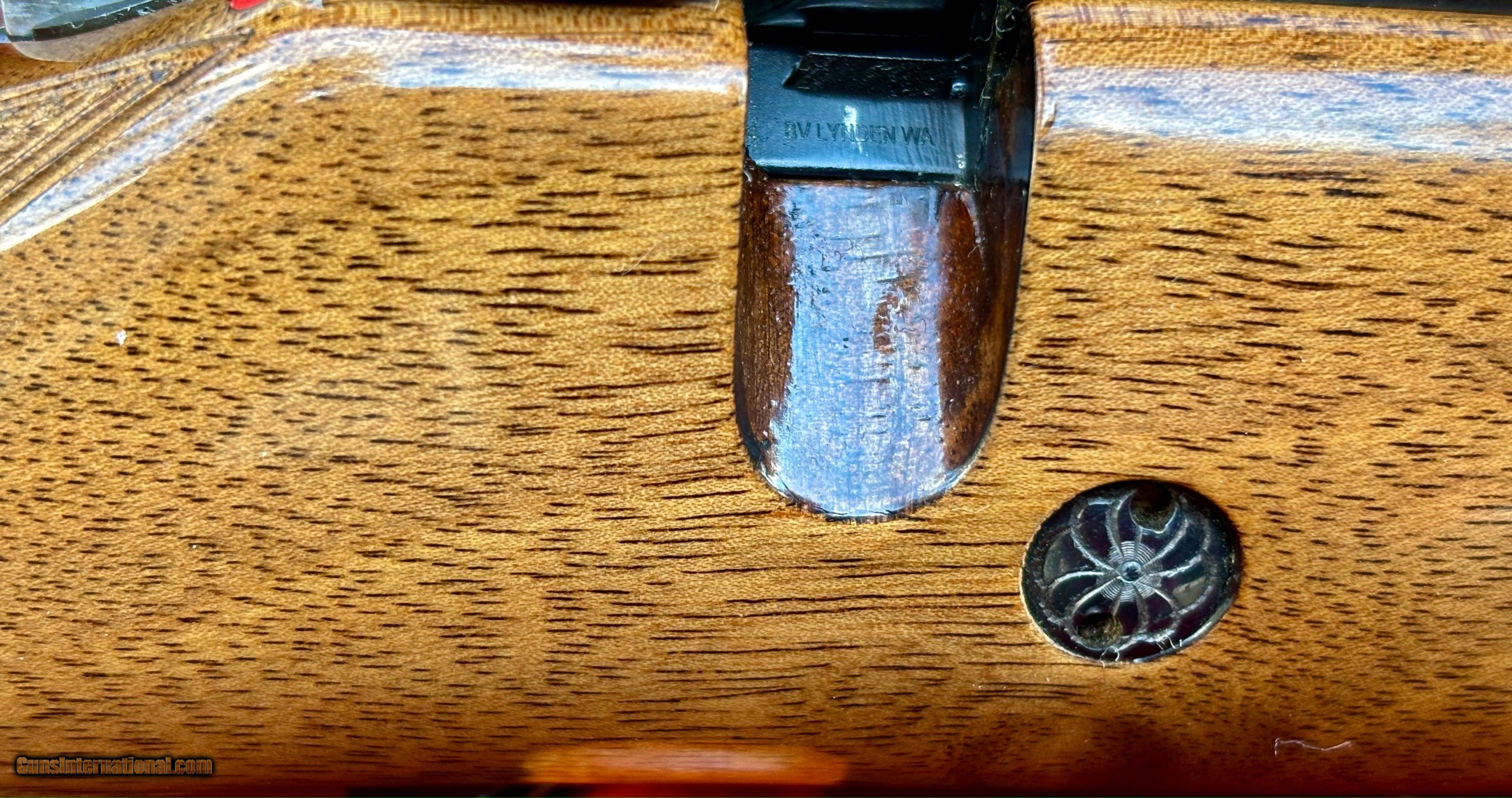 Description: Browning Safari 22/250-24" heavy barrel. Made 1972. Blue 99% overall. Shows very light evidence of a scope mounted at one time. Nice light colored wood that is 99% overall, has 8-10 small handling marks. Imported-BV-Lynden, Wa. Logo is under the bolt knob and is visable only when bolt is opened. C&R FFL ok. Shipping and Ins. extra. SOLD Curio/Relic: Yes Rifle Caliber: .22-250 Remington Manufacturer: BROWNING Model: SAFARI Action: BOLT |