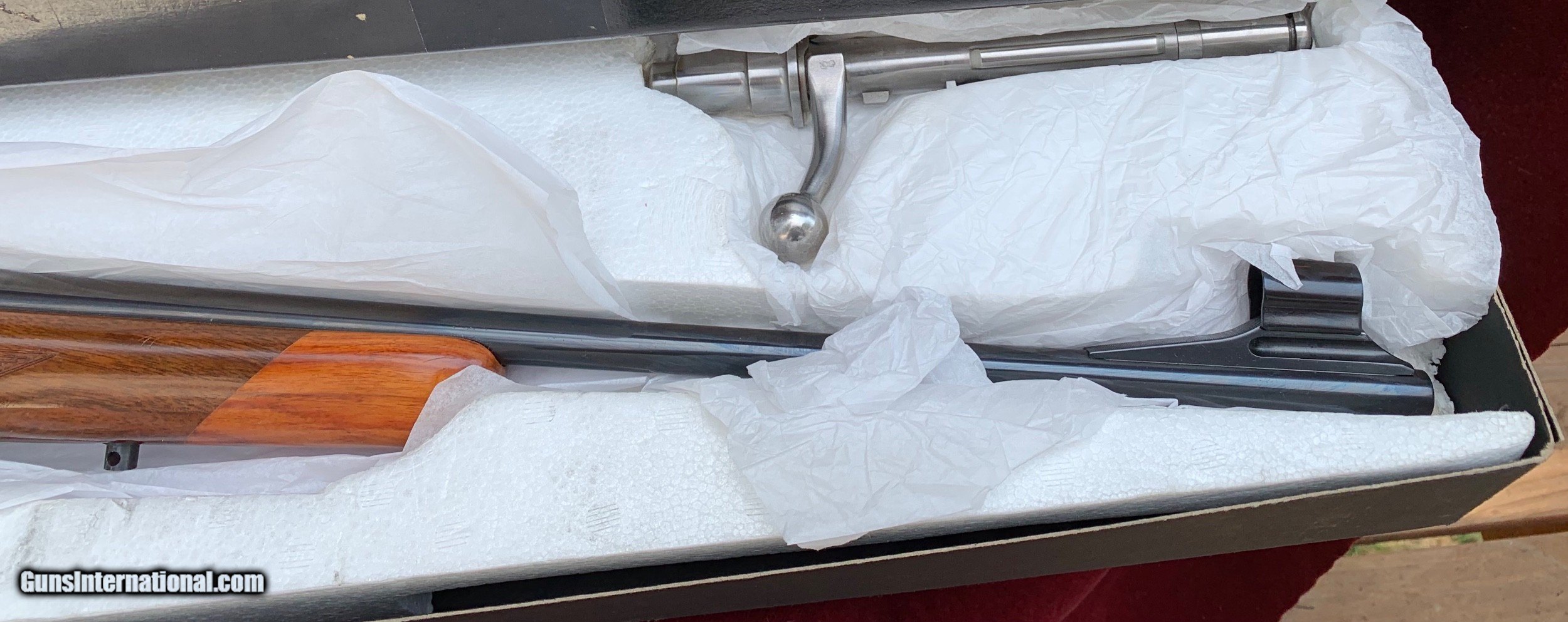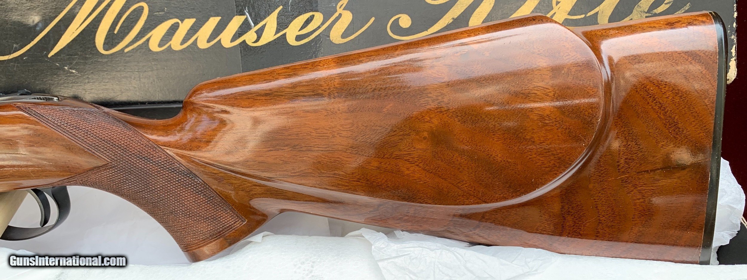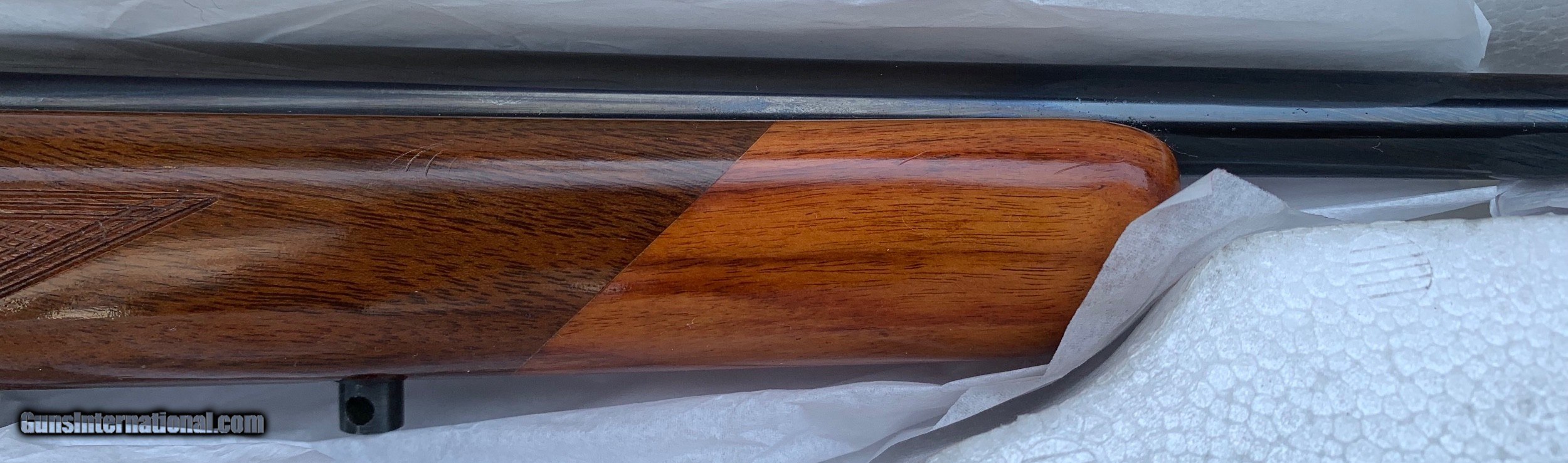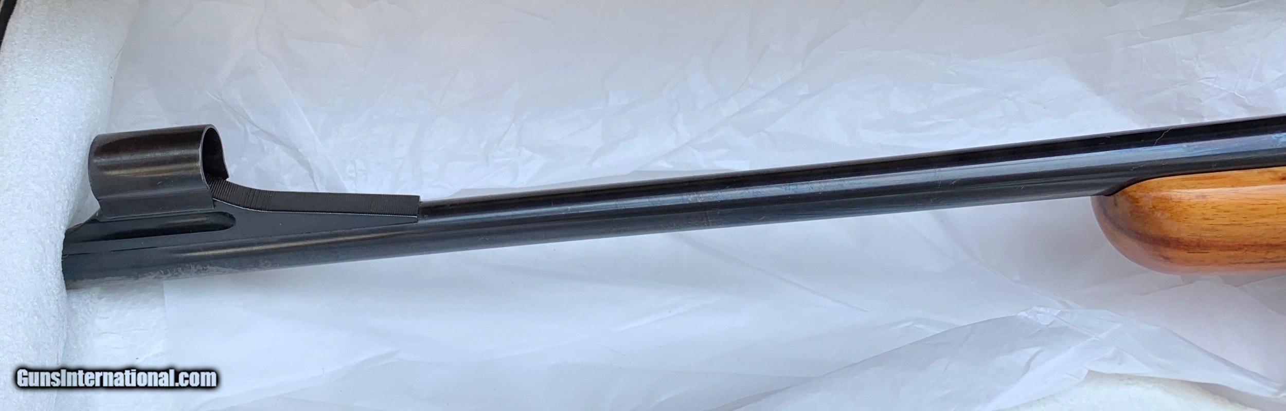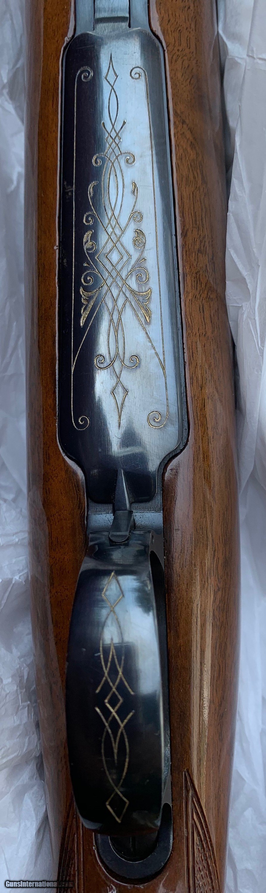 Description: BROWNING SAFARI 243. Small ring Mauser action. Made 1960. These smsll ring 243's were only made until 1964.Has what appears to be the correct box but there is no end label. Has the more desirable early square bridge rear sight. Gun appears all original and is rare for a couple of reasons. It has a 22" pencil barrel instead of the standard contour 22" barrel usually found on these guns and it has a fore end tip which is rarely seen on a Safari grade Browning. Blue and metal is 99%, wood is 97-98% overall with nice color and figure. Nice collectable and rare Safari. C. & R.-FFL-OK. Shipping and insurance $40. SOLD Curio/Relic: Yes Rifle Caliber: .243 Winchester |