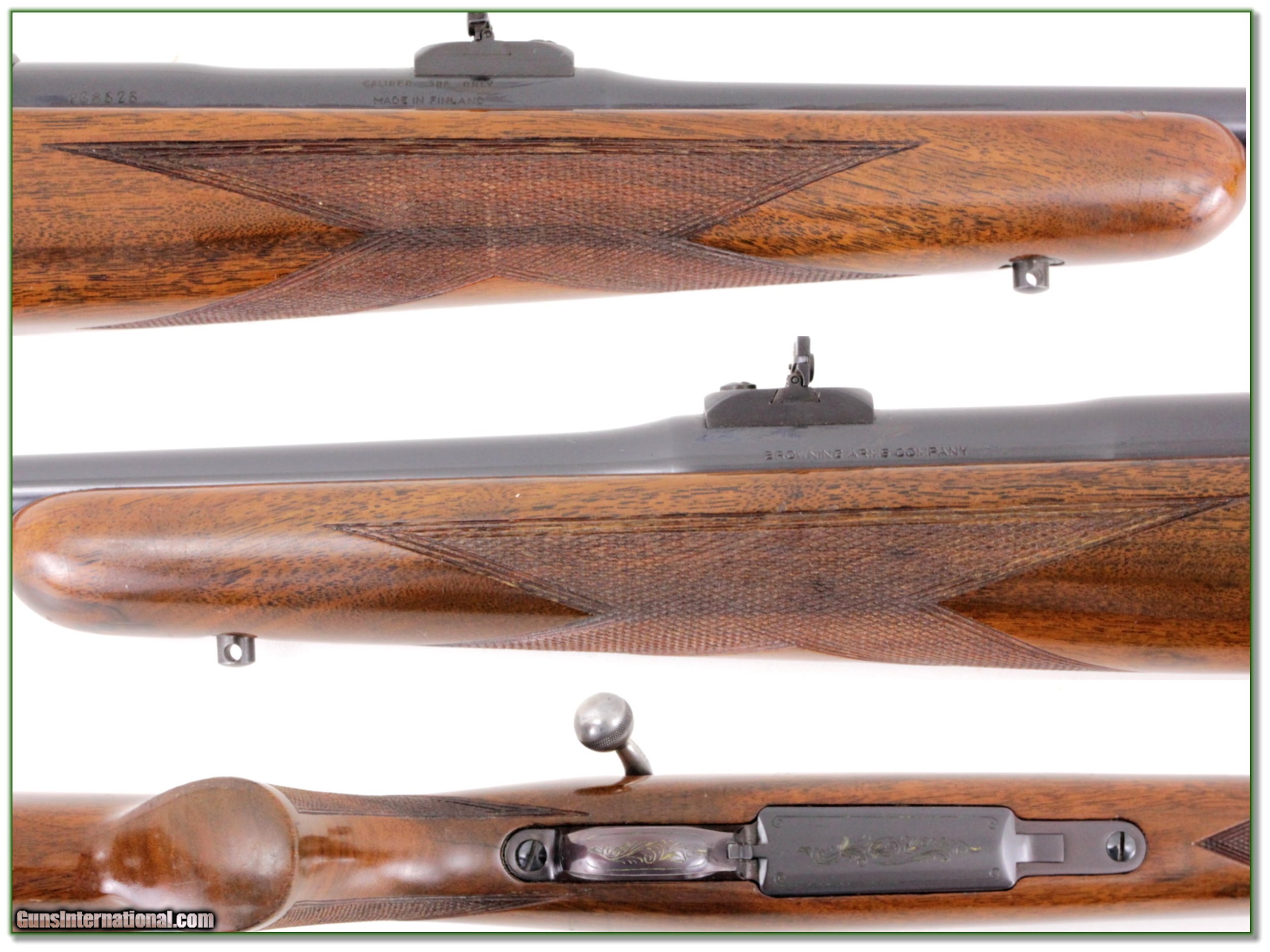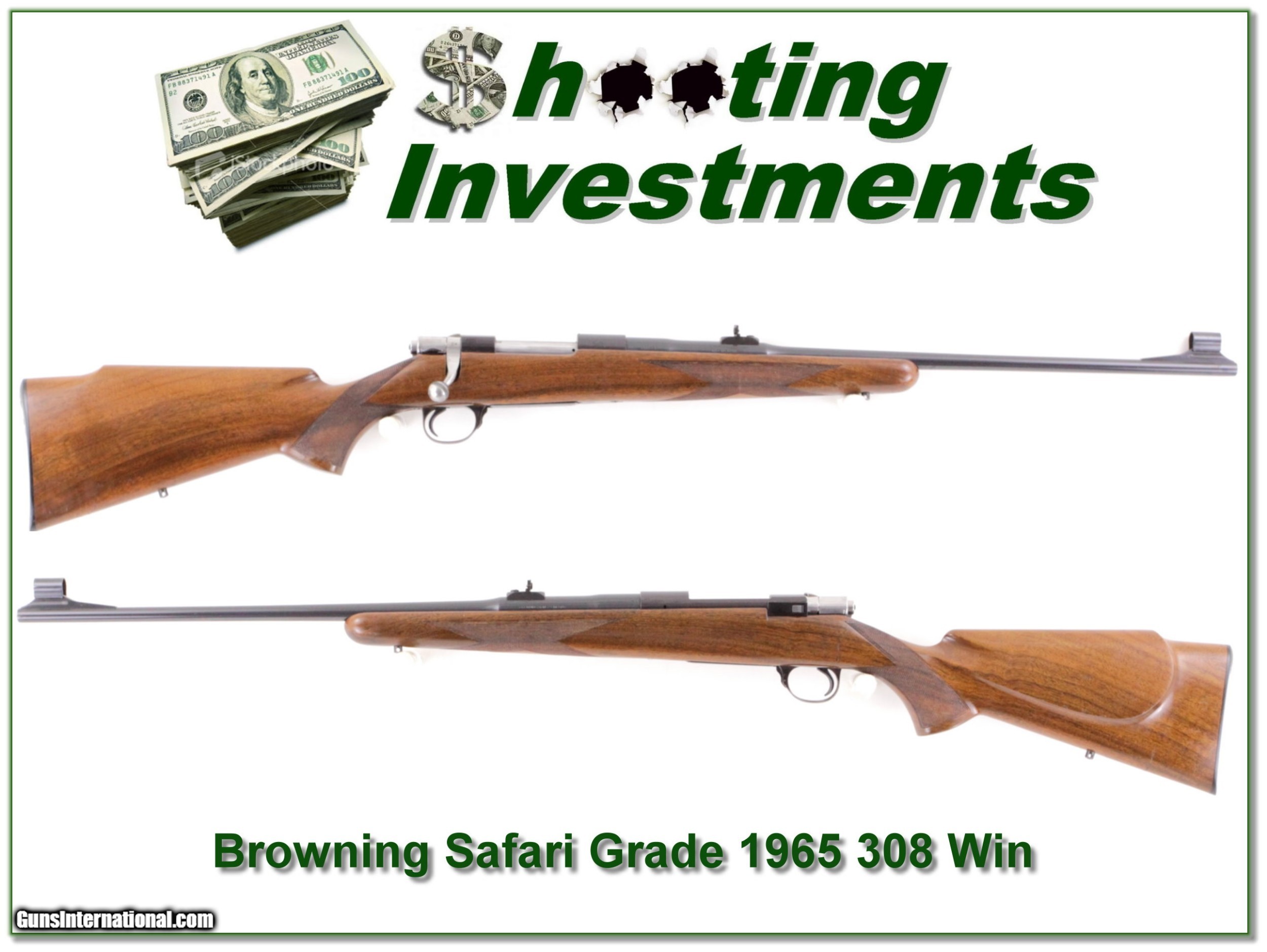 Description: This is a 1965 Belgium made Browning Safari Grade in 308 Winchester. This is the light weight 22in Pencell Barrel 308. These were built on a Sako action and this one was made well before any saltwood issues. The blue is excellent, and the wood has light marks. It will make a classic hunting gun. They just don’t make them like this anymore! Shipping with insurance is $39. Please email me with any questions or larger pictures. (Consign your quality firearms with Shooting Investments for only 12%! Let me know if you have any you would like to sell!) 19-0031 Payment: Payment is by Money Order, Cashiers Check or Personal Check. I can now also accept Credit Cards (MasterCard, Visa, Discover & American Express) with a 3% convenience fee. PayPal can be used for some items but never for firearms. Shipping: The shipping charge will be listed in each description. It is $39 for most firearms. Some heavy guns or those insured for over $2000 will be higher. Shipments to Alaska and Hawaii are higher because air shipment is required. Most firearms are shipped on Tuesday and Thursday and usually in 5 days of receipt of payment. We package all shipments carefully and insure them. Optics are shipped Priority Mail and most other non-firearm shipments are shipped First Class. Returns: Our return policy is simple. If for any reason you are not pleased with your purchase, you may return your item for a full refund of purchase price. Ammunition cannot be returned. It is important to us that you are happy. Guns cannot be fired or dissembled before returning them and they must be returned in the same condition as received. Notification of a return must occur with-in 3 days of receipt at your dealer. Shipping, convenience and dealer fees are not refundable and are the responsibility of the buyer. Lay-a-way: If needed, we offer a 60 day lay-a-way option on most firearms. It is 1/3 now, 1/3 in 30 days and 1/3 in 60 days. Lay-a-way firearm sales are final and if not completed the first payment cannot be returned. Consigning your firearms with Shooting Investments: We will help you get top dollar for your firearms. While most local guns shops charge 20% or more, our fee is only 12% with a minimum of $75. At your local gun shop it might take months to sell. Selling on-line provides instant access to thousands of interested buyers. You won’t find any other on-line dealer willing to sell your firearms for only 12% or listing every gun on 3 separate s. Selling through an House typically costs the seller 15% and the buyer an addition 15% (so 30%) and you have to wait several months to sell and longer to receive funds. If properly priced, we will sell your firearms in a few weeks. Send us an email or give us a call and we’ll explain how easy it is for you to get top dollar. Trading: Trading for use is really just buying your gun to re-sell. If you have a gun you want to trade, please email a picture and we will let you know what we can give or it. You will always get more if we sell it for you on consignment. Help for California Buyers: We are happy to ship to California. It is the buyer’s responsibility to make sure any item you buy is legal in your state. We are also happy to help with your purchase of a firearm from someone other than us. If you see a gun you would like to buy but the seller can’t or won’t ship to California they can ship to use and we’ll then ship it to your California dealer. The cost for this service is only $30 + shipping. Let us know if we can help! SOLD |