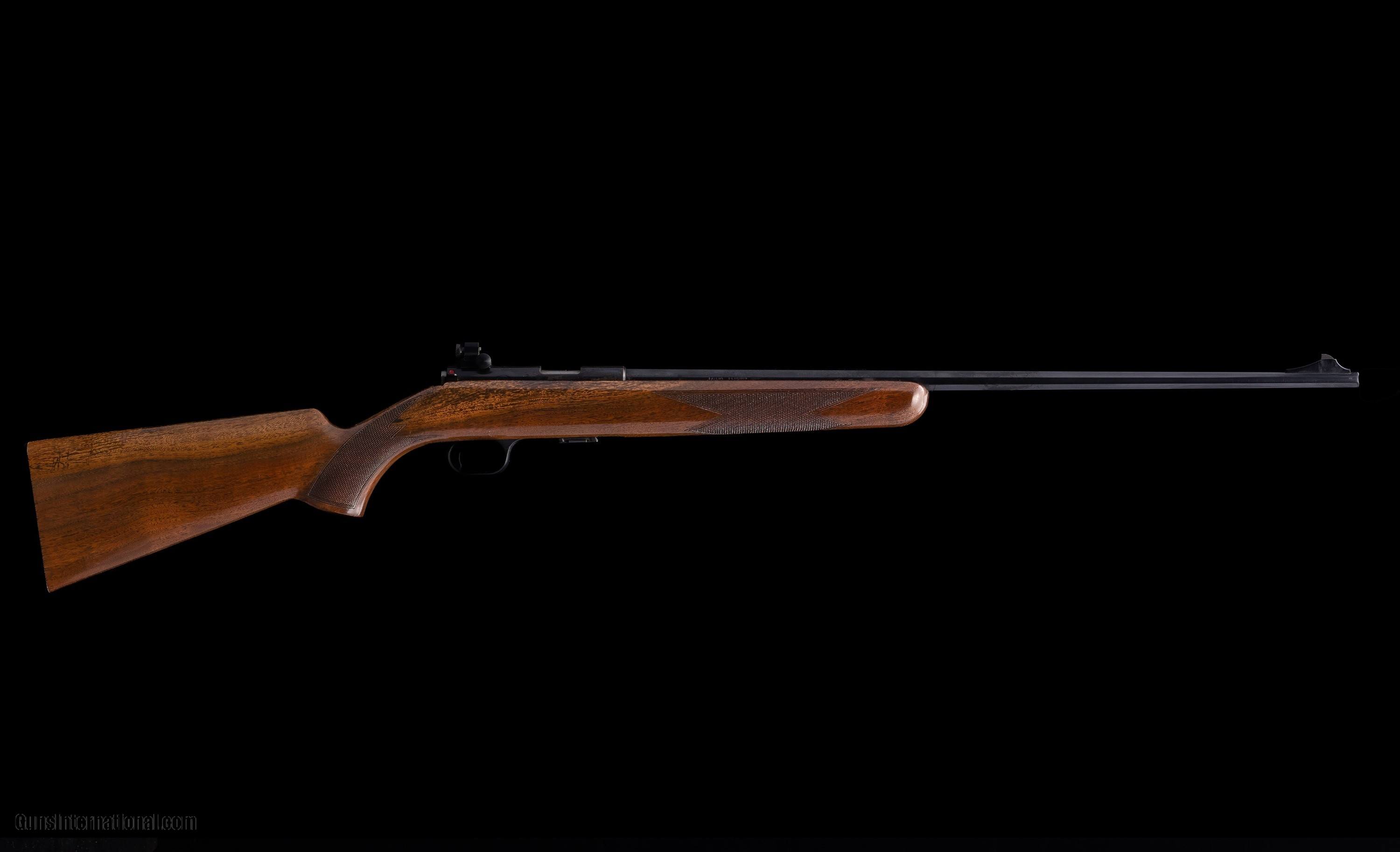 Description: Offered here is a scarce and highly desirable Belgian-made Browning T-Bolt in true left-handed configuration, chambered in .22 Long Rifle. Original FN-manufactured T-Bolts (1965–1974) have a strong collector following, and left-hand versions were produced in extremely limited quantities, making this rifle a rare find in today’s market. This example features a 22-inch barrel, straight-pull T-Bolt action, and a classic walnut pistol-grip stock with an approximate 13 3/4-inch length of pull. The rifle remains in excellent overall condition with only a couple of minor handling marks and no cracks, repairs, or alterations. This rifle is equipped with the desirable factory-style blade front sight and a rear peep sight—the preferred configuration for accuracy and fast sight alignment in rimfire shooting. The barrel is correctly roll-marked “Made in Belgium,” confirming FN Herstal production. SPECIFICATIONS: • Make: Browning • Model: T-Bolt (Original Belgian Production) • Caliber: .22 Long Rifle • Action: Straight-pull T-Bolt, Left-Handed • Barrel Length: 22” • Length of Pull: 13 3/4” • Stock: Walnut, pistol grip • Front Sight: Blade • Rear Sight: Peep Sight • Condition: Excellent, minimal handling marks • Markings: “Made in Belgium” (FN Herstal production) Rifle Caliber: .22 Long Rifle Manufacturer: Browning Model: T-Bolt Barrel Length: 22 Condition: Excellent Metal Condition: Excellent Wood Condition: Excellent Bore Condition: Excellent Action: Straight-pull T-Bolt Triggers: Single Stock: Walnut LOP: 13 3/4 Item Location: Michigan Grips: Pistol Grip Price: $999.00 Buy Now Contact Seller |
