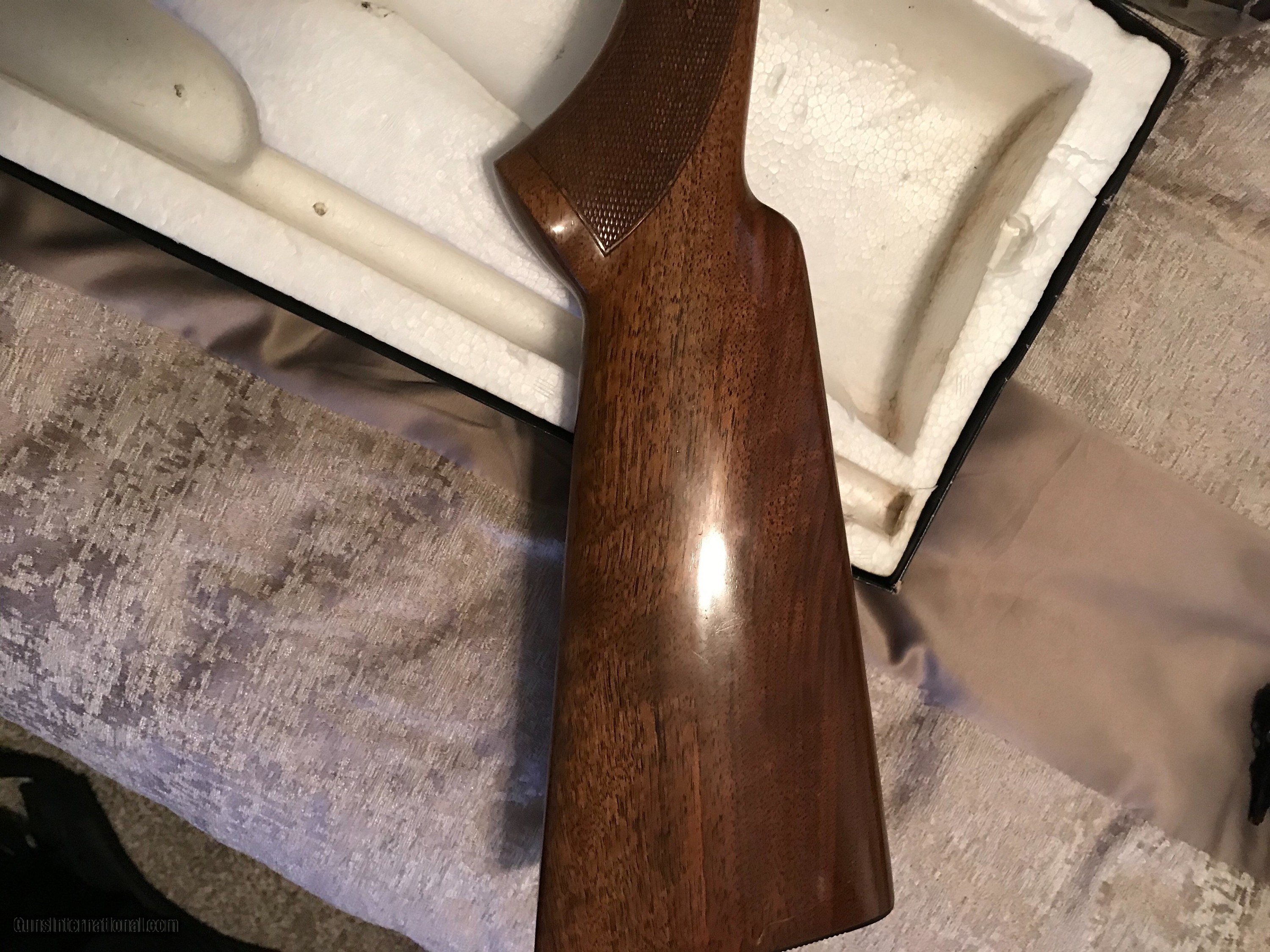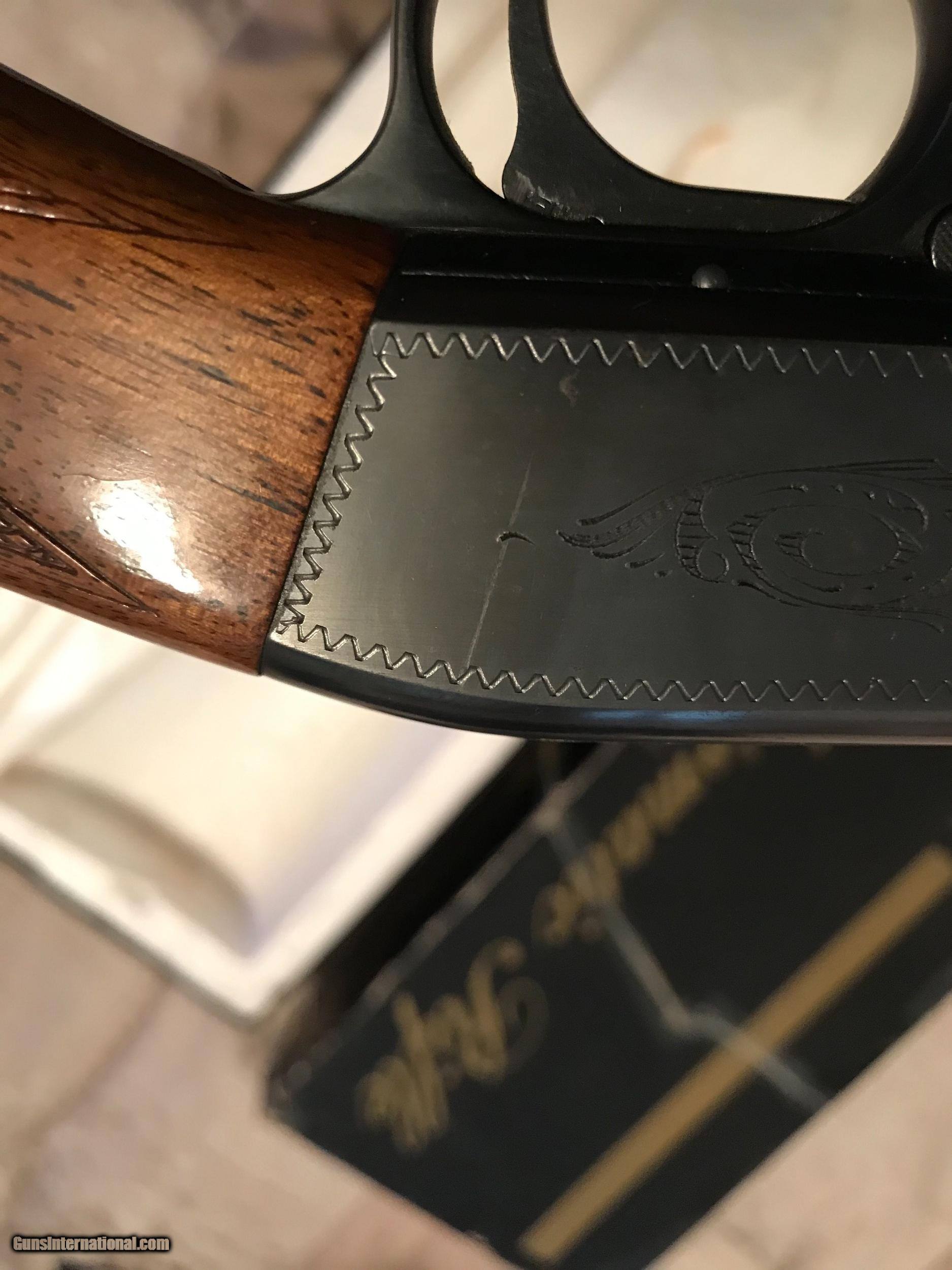 Description: Another nice takedown. Blue finish, blonde/brown wood, flip up sight, comes with non original box. A few dings but very nice for its age. Please email with questions. Shipping included. Cards add 3% SOLD Manufacturer: Browning Model: Takedown 22 Condition: Used Metal Condition: Excellent Wood Condition: Excellent Bore Condition: Excellent Action: Semi auto Finish: Blue Weight: Flip up Manufacture Date: 1966 Item Location: 37075 |