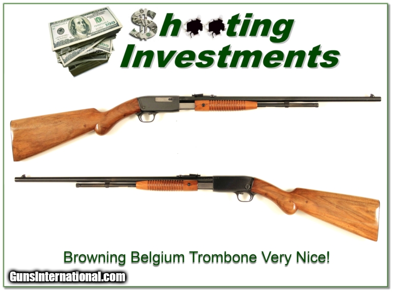 Description: Browning and rimfire collectors this is a gun that has gotten hard to find. It is a Belgium made 22 Trombone. These have become sought after collector guns. This in is in very good condition. The wood has better grin than most with only a handing mark or two. This is a Shooting Investments and is sure to increase in value over time. Shipping and insurance is $30 or $18 more if you want it shipped in a new Plano hard case. Please email me with any questions or larger pictures. (I now consign quality firearms only 10%! Let me know if you have any you would like to sell!) [14-1007] Payment: Payment is by Money Order, Cashiers Check or Personal Check. I can now also accept MasterCard and Visa with a 3% convenience fee. PayPal can be used for some items but never firearms. Please let us know if you would like to pay via PayPal. Shipping: The shipping charge will be listed in each description. It is $30 for most guns. Some heavy guns or those insured for over $2000 may be higher. Shipments to Alaska and Hawaii are higher because air shipment is required. Most firearms are shipped within 5 days of receipt of payment. We prefer shipping at the beginning of the week to avoid firearms in transit over weekends. We package all shipments carefully and insure them for the full purchase price, rounded up to the next $100. In the unlikely event that damage occurs, it is important that you save all packaging material for the claims process. Optics are shipped Priority Mail and most other non-firearm shipments are shipped First Class. Returns: Our return policy is simple. If for any reason you are not pleased with your purchase, you may return your item for a refund. The only exception is ammunition, it cannot be returned. It is important to us that you are happy. Guns cannot be fired or dissembled before returning them and must be returned in the same condition as received. Notification of a return must occur with-in 3 days of receipt at your dealer. Shipping, convenience and dealer fees are not refundable and are the responsibility of the buyer. Lay-a-way: If needed, we offer a 60 day lay-a-way option on most firearms. It is 1/3 now, 1/3 in 30 days and 1/3 in 60 days. Lay-a-way firearm sales are final. Consigning your firearms with Shooting Investments: We will help you get top dollar for your firearms. While most local guns shops charge 20% or more, our fee is only 10% with a minimum of $50. At your local gun shop it might take months to sell. Selling on-line provides instant access to thousands of interested buyers. You won’t find any other on-line dealer willing to sell your firearms for only 10% or listing every gun on 4 separate s. Selling through an House typically costs the seller 15% and the buyer an addition 15% (so 30%) and you have to wait several months to sell and longer to receive funds. If properly priced, we will sell your firearms in a week or two. Send us an email or give us a call and we’ll explain how easy it is for you to get top dollar. Trading: We collect guns and usually just trade for guns we want to add to our collections. We often sell guns for others wanting to purchase one of ours. We find this the most fair to both of us. Our Commission is only 10% and we hold the gun you want until yours sells. Please contact us if you want to sell one of yours to buy one of ours. Help for California Buyers: We are happy to ship to California. It is the buyer’s responsibility to make sure any item you buy is legal in your state. We are also happy to help with your purchase of a firearm from someone other than us. If you see a gun you would like to buy but the seller can’t or won’t ship to California we can help. You buy the gun and have it shipped to us. We’ll then ship it to your California dealer. The cost for this service is only $30 + shipping. Let me know if we can help! SOLD |