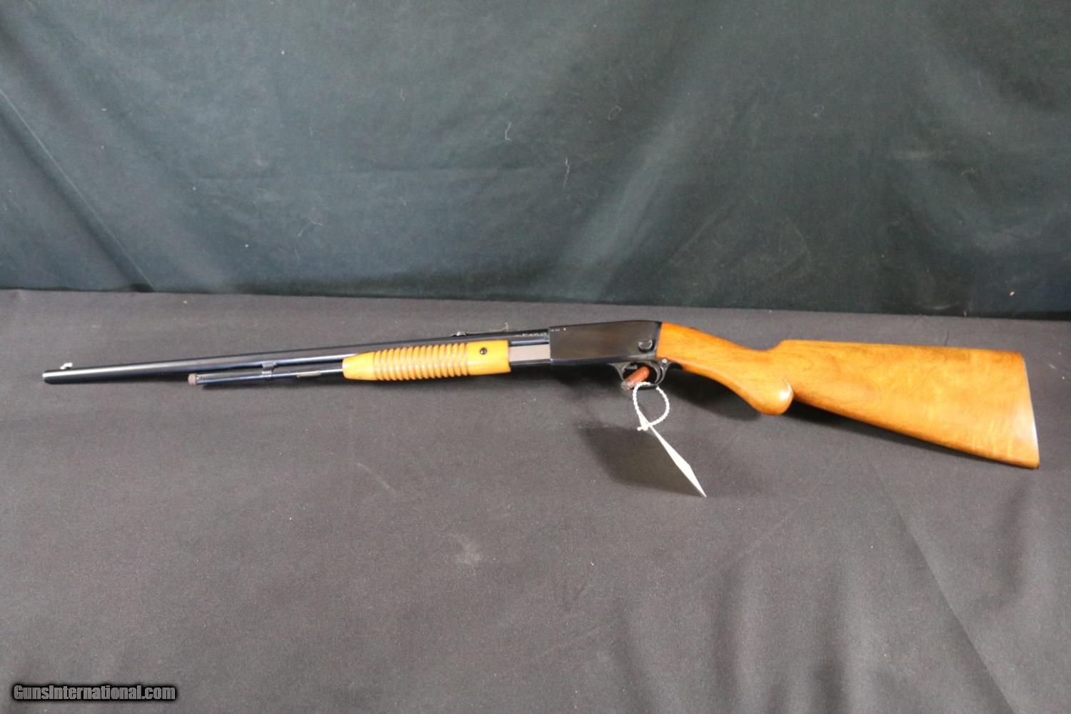 Description: MADE IN BELGIUM. VERY GOOD CONDITION. SURE TO INCREASE IN VALUE. GREAT PIECE TO ANY COLLECTION. PLEASE ADD $35 FOR SHIPPING. SOLD Caliber Info: 22 Condition: EXCELLENT Metal Condition: ECELLENT Wood Condition: LIGHT HANDLING MARKS Bore Condition: ECELLENT Action: PUMP Triggers: SINGLE LOP: 13 1/2 |