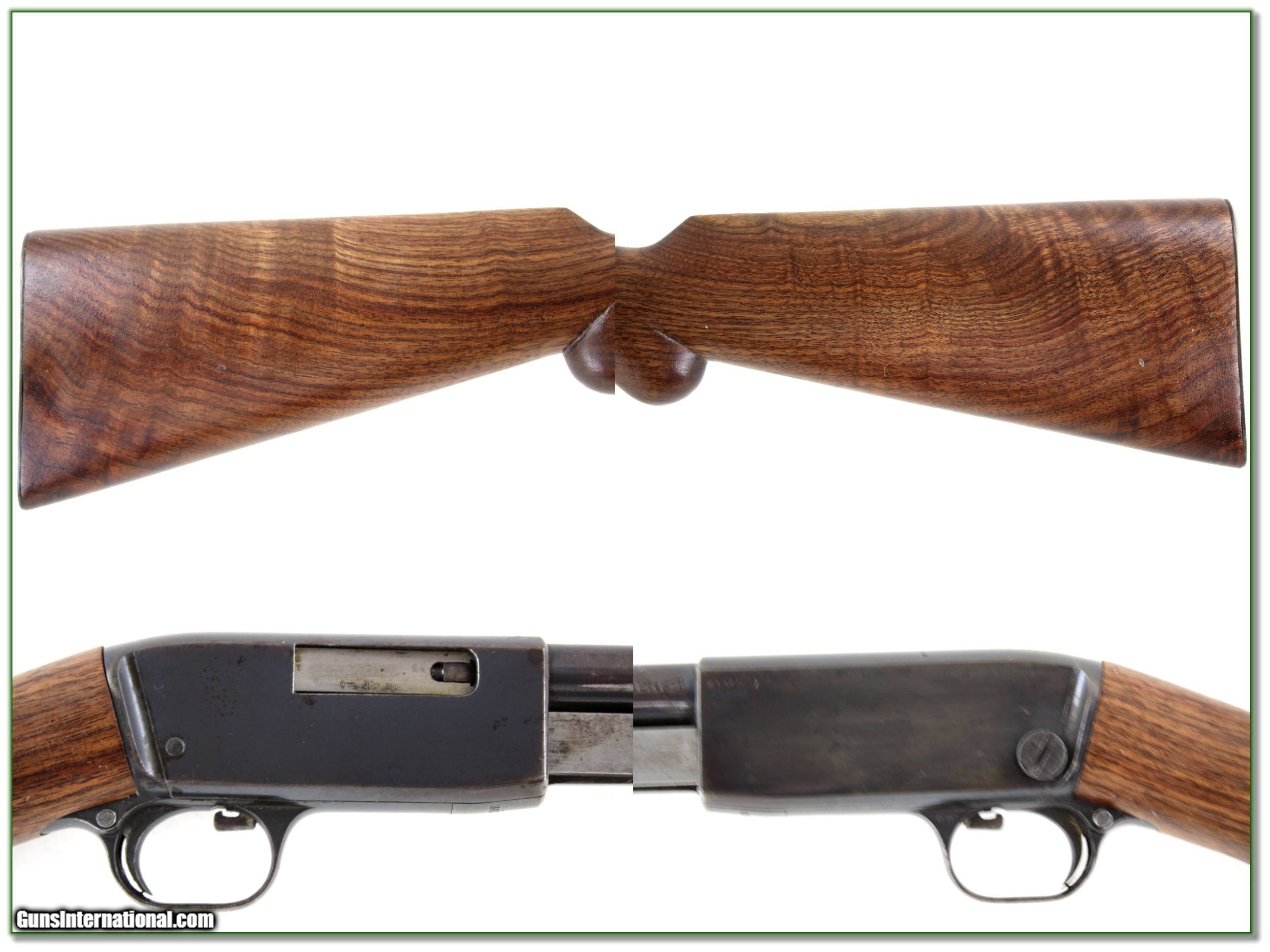 Description: Collectors, this is a RARE chance to own and very early Browning Trombone. These guns were made between 1922 and 1974 with limited records of the early ones. This one dates to before 1930 with serial number 36770. It is fully functional with most of the blue present. The stock was refinished or replaced at some point. It has it’s original metal but and the figure in the stock is outstanding. The finish doesn’t match the original finish on the forearm. This early Browning will make a nice addition to your collection of is worthy of a full restoration if you want a perfect early example. Either way, it is a real Shooting Investment! Shipping with insurance is $39. Please email me with any questions or larger pictures. (Consign your quality firearms with Shooting Investments for only 12%! Let me know if you have any you would like to sell!) 20-0501 Payment: Payment is by Money Order, Cashiers Check or Personal Check. I can now also accept Credit Cards (MasterCard, Visa, Discover & American Express) with a 3% convenience fee. Shipping: The shipping charge will be listed in each description. It is $39 for most firearms. Some heavy guns or those insured for over $2000 will be higher. Shipments to Alaska and Hawaii are higher because air shipment is required. Most firearms are shipped on Tuesday and Thursday and usually in 5 days of receipt of payment. We package all shipments carefully and insure them. Optics are shipped Priority Mail and most other non-firearm shipments are shipped First Class. Returns: Our return policy is simple. If for any reason you are not pleased with your purchase, you may return your item for a full refund of purchase price. Ammunition cannot be returned. It is important to us that you are happy. Guns cannot be fired or dissembled before returning them and they must be returned in the same condition as received. Notification of a return must occur with-in 3 days of receipt at your dealer. Shipping, convenience and dealer fees are not refundable and are the responsibility of the buyer. Lay-a-way: If needed, we offer a 60 day lay-a-way option on most firearms. It is 1/3 now, 1/3 in 30 days and 1/3 in 60 days. Lay-a-way firearm sales are final and if not completed the first payment cannot be returned. Consigning your firearms with Shooting Investments: We will help you get top dollar for your firearms. While most local guns shops charge 20% or more, our fee is only 12% with a minimum of $75. At your local gun shop it might take months to sell. Selling on-line provides instant access to thousands of interested buyers. You won’t find any other on-line dealer willing to sell your firearms for only 12% or listing every gun on 3 separate s. Selling through an House typically costs the seller 15% and the buyer an addition 15% (so 30%) and you have to wait several months to sell and longer to receive funds. If properly priced, we will sell your firearms in a few weeks. Send us an email or give us a call and we’ll explain how easy it is for you to get top dollar. Trading: Trading for use is really just buying your gun to re-sell. If you have a gun you want to trade, please email a picture and we will let you know what we can give or it. You will always get more if we sell it for you on consignment. Help for California Buyers: We are happy to ship to California. It is the buyer’s responsibility to make sure any item you buy is legal in your state. We are also happy to help with your purchase of a firearm from someone other than us. If you see a gun you would like to buy but the seller can’t or won’t ship to California they can ship to use and we’ll then ship it to your California dealer. The cost for this service is only $30 + shipping. Let us know if we can help! SOLD |
