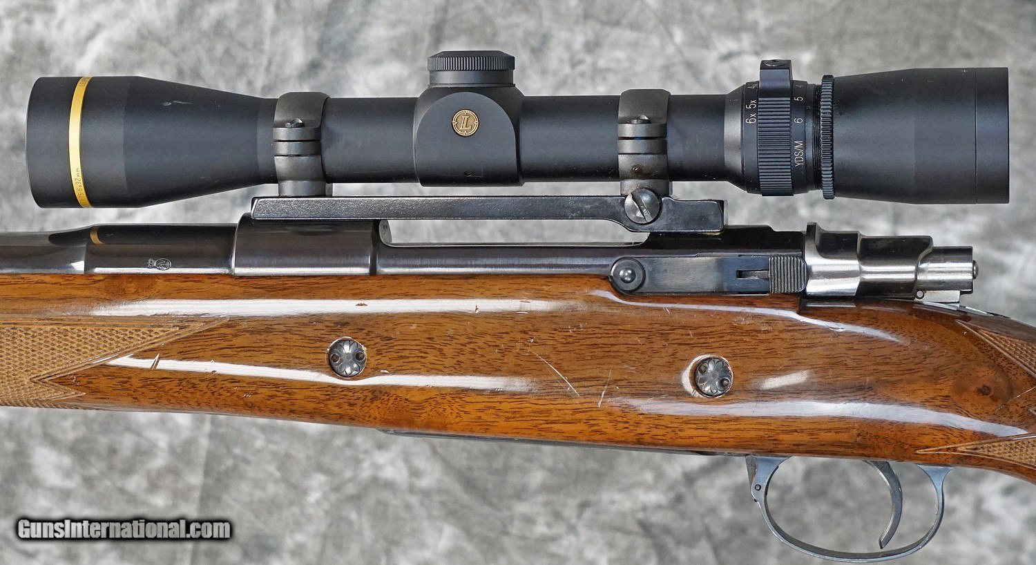 Description: Pre-Owned Fn Browning Safari chambered in .458 Win Mag with 24" barrel, factory iron sights with FN 98 Mauser short extractor action, blued action and barrels in original condition with minor bluing wear, simple scroll engraved floor-plate. Bore is bright, rifling strong and excellent condition. Includes Leupold VX III 1.75-6x32mm scope. Factory Monte Carlo stock in excellent condition, handling marks, minor pin-head sized scuffs and minro finish wear. SOLD Rifle Caliber: .458 Winchester Magnum |