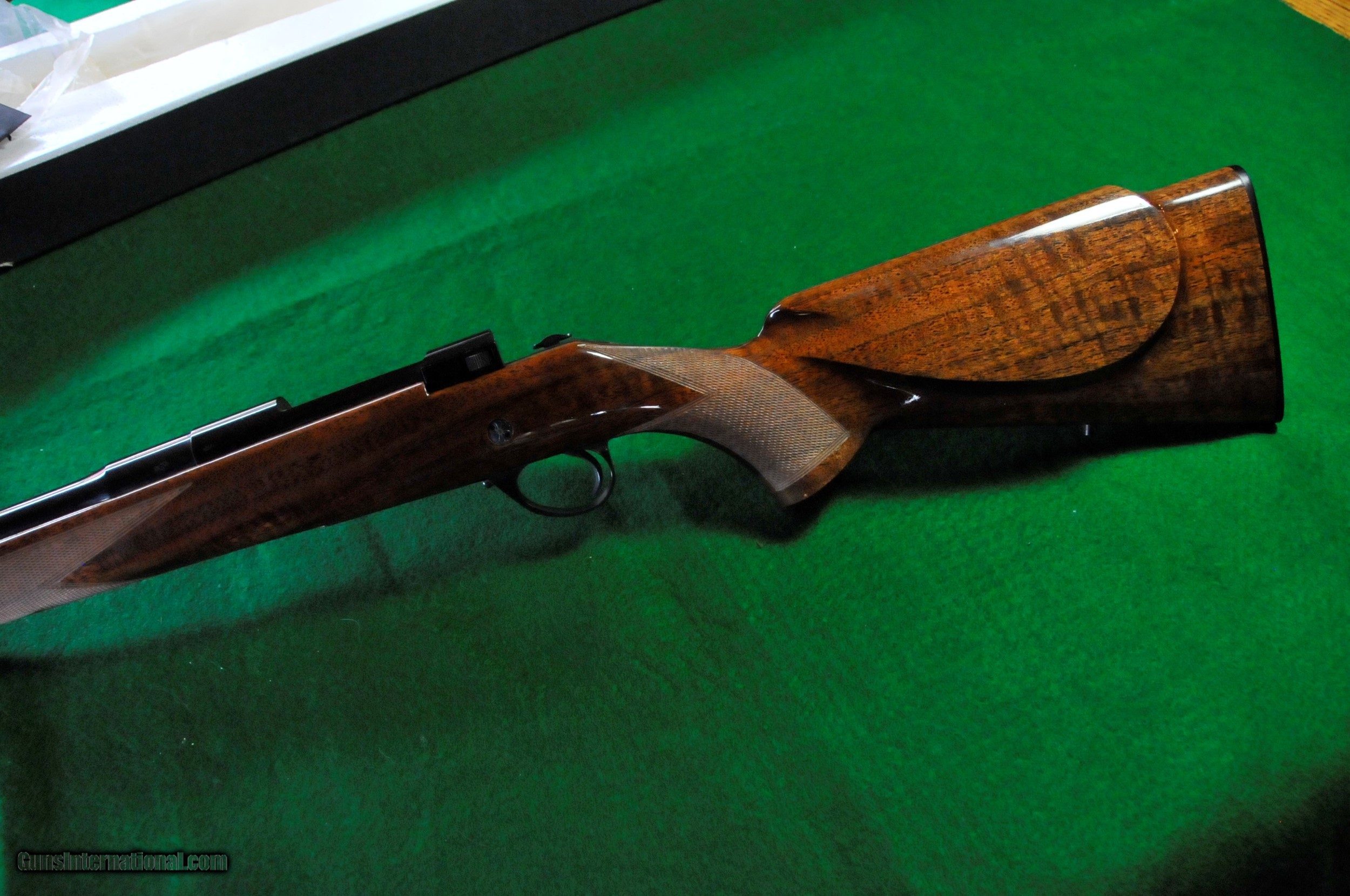 Description: This Belgium Browning Sako is new-in-the-box with all factory accessories including manual, packing tissue paper and plastic bolt bag. It was manufactured in 1972 and features the desirable heavy 24 inch barrel. The box is in excellent condition with the exception of a couple of tape marks. The box has the original factory label that is serial numbered to the rifle. In addition,the box comes with the original Browning factory shipping carton. The rifle exhibits 100% metal finish and stock finish. There are no dings, finish checking or blemishes that I could find after a detailed examination under strong light. This gun was shipped to a small gun shop in rural eastern Washington on August 1, 1974 and the owner kept the rifle for himself. The shop went out of business in the 1980's and the family of the late owner put his collection up for sale earlier this year. The rifle remained unopened, in storage for the last 45 years, explaining it's pristine condition. An FFL is required for purchase, I am not a dealer so please make sure your dealer will send a copy of their FFL to an individual. If not, there will be an additional charge of $50 to cover the cost my dealer charges me. It is the responsibility of buyer to insure it is legal to purchase and own this rifle in their location. Shipping is a flat fee of $50. If you call please leave a message and I'll call right back. Thanks for looking. SOLD |