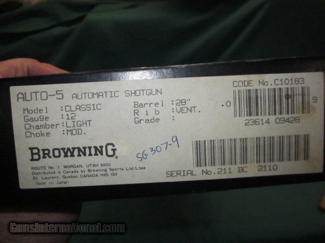 Browning Auto-5 CLASSIC 12ga. 100% New inbox