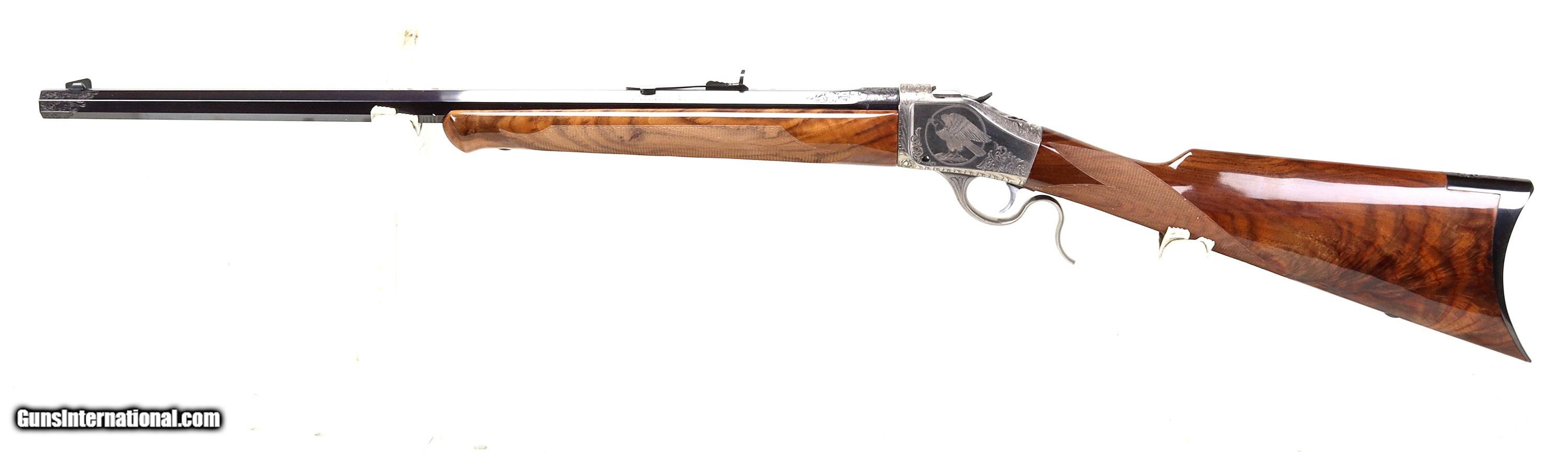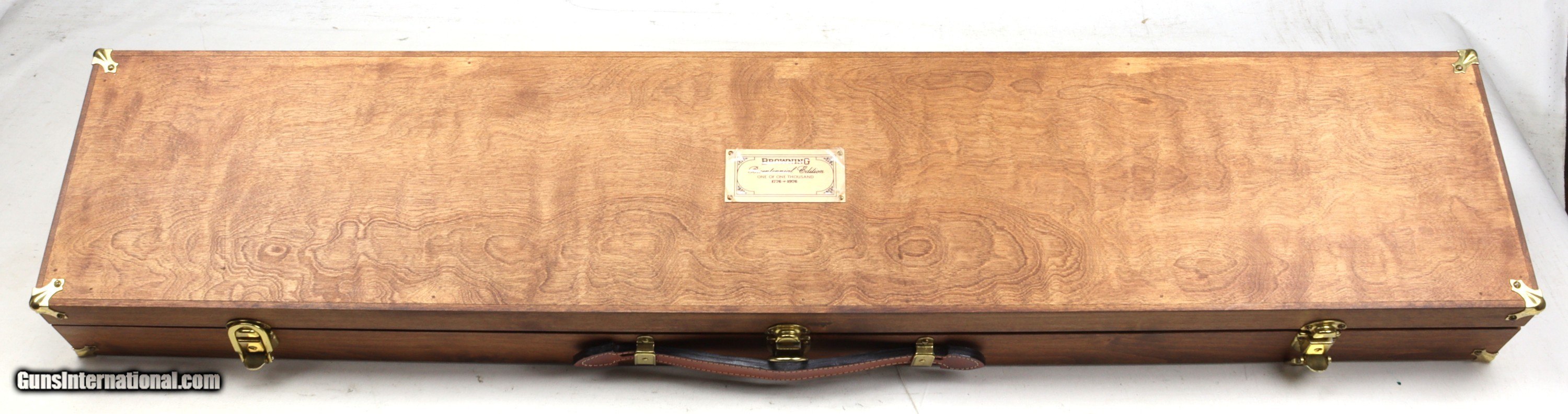 Description: BROWNING B-78 CENTENNIAL, " ONE OF 1000", SN#1976-0229, MFG: 1976. These Centennial Model's were Made in Japan, and finished in Belgium. Features Beautiful Engraved Coin Finish, Floral Scroll Engraving on Muzzle and all the Flats. Beautifull y Engraved Animal Scenes, American Bison, and American Eagle, Right Side Engraver Signed: R.Bee. Includes Original Box and Original Browning bowie Knife. Additional Pictures on Request . SHIPS FREE TO LOWER 48, AND NO C/C FEE IF PURCHASED ON BUY NOW BEFORE NEW YEAR SOLD |