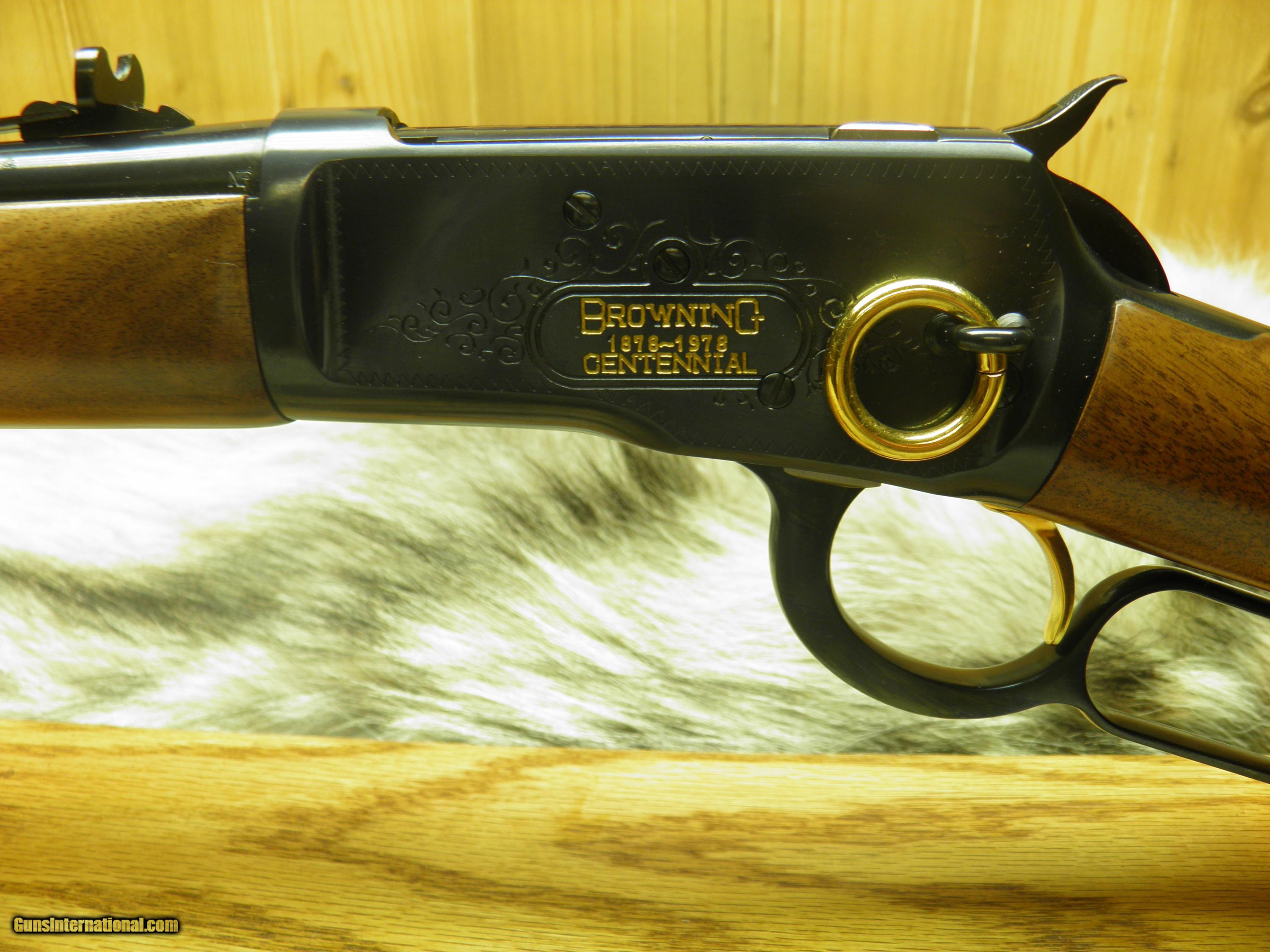 Description: BROWNING CENTENNIAL 92 CAL: 44 REM MAG. MANF: 1978 20" BARREL, SIGHTS REAR CLASSIC CLOVERLEAF WITH NOTCHED ELEVATION RAMP,STEEL POST FRONT SIGHT, GOLD TRIGGER, FULL LENGTH TUBE MAG CAPACITTY 11 ROUNDS, RECEIVER HAND ENGRAVED SCROLL WORK WITH GOLD SADDLE RING, FRENCH WALNUT STRAIGHT GRIP STOCK, AND CLASSIC FOREARM, STEEL BUTT PLATE, LENGTH OF PULL 12 3/4", OVERALL LENGTH 37 1/2", APPROX: WEIGHT 5 1/2 LBS, "CONDITION" 100% NEW AND UNFIRED IN FACTORY BOX WITH OWNERS MANUAL AND WARRANTY CARD! SOLD |