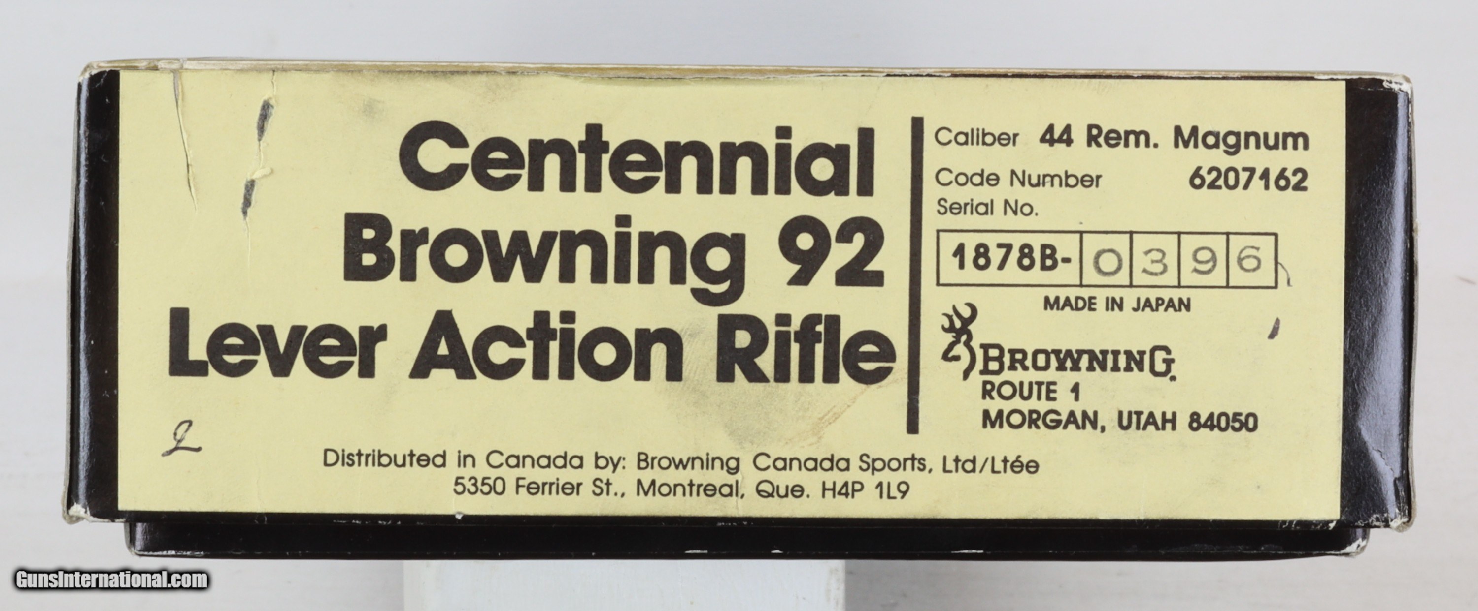 Description: BROWNING Model: B92, CENTENNIAL CARBINE, SN#1878B-0396, MFG: 1978 44 MAG, 20" Barrel, NIB, No Paperwork. Only 1000 made. LOP: 13", Trigger Pull: 5lbs, 2ozs. Weight: 5lbs, 13.6ozs. Original Box. Ships to lower 48 w/Insurance: $55.00 This would make a Ideal First Gun . SOLD |