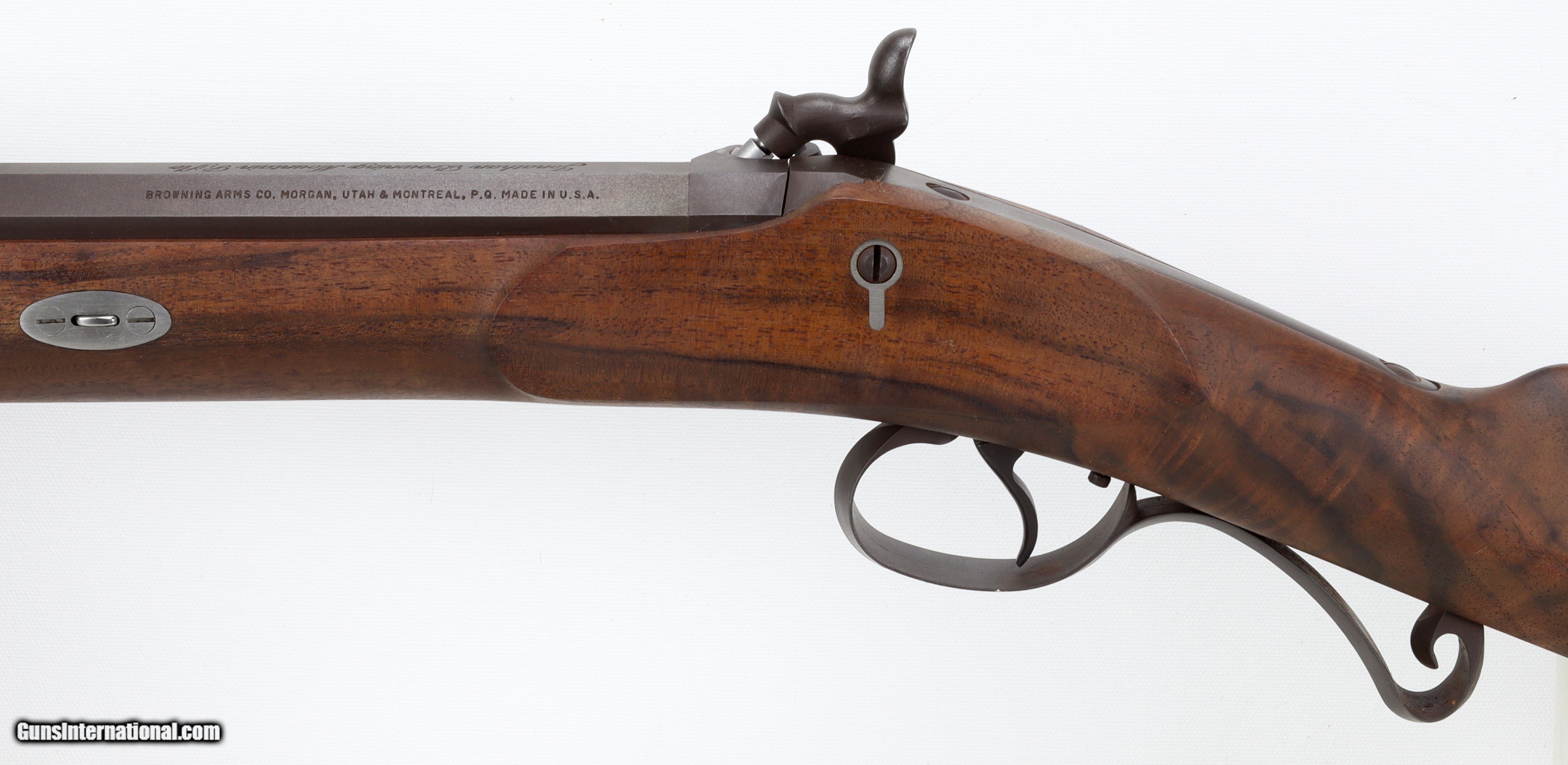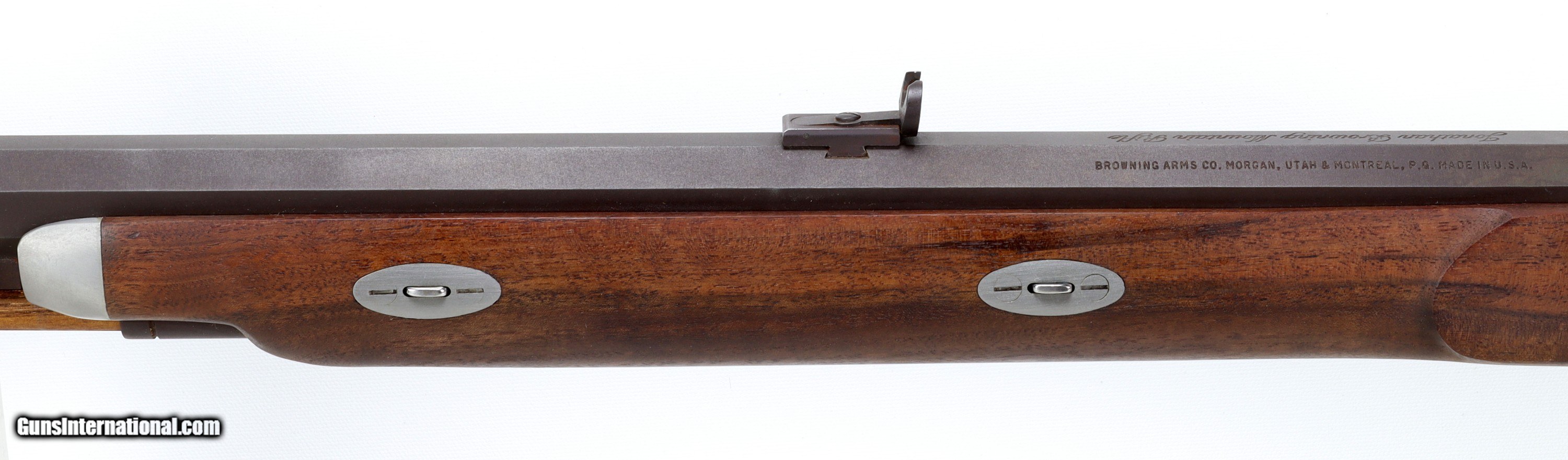 Description: BROWNING MOUNTAIN RIFLE, .50 CAL, PERCUSSION, SN#1878-0396, MFG: 1978, 30 3/4" Barrel, Beautiful Ornate Powder Horn. Includes Wooden Display Case W/Lock. LOP: 13 1/2", Trigger Pull: 6lbs,4ozs, Weight: 9lbs, 10.5ozs. Beautiful Figured Walnut Stock. Unfired/ New In Original Shipping Material. Ships to Lower 48 W/Insurance: Actual Cost of shipping. SOLD |