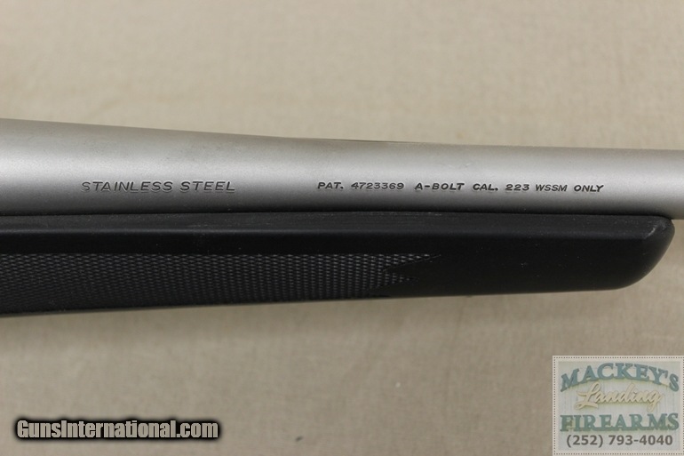 Description: Browning A-Bolt 223 WSSM 22" barrel, SS *AS IS* This is a used gun we took in on trade that we believe to be from before the recall, and was never sent back. The bore and rifling appear to be excellent, but it does not group. Best groups are 6-8 inches at 100 yards. For more information call 252-793-4040. Please refer to our inventory # 43646. FFL Required for shipment. No shipping outside the US. SOLD |