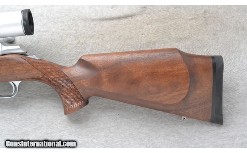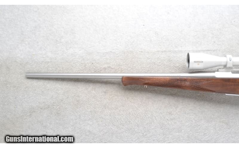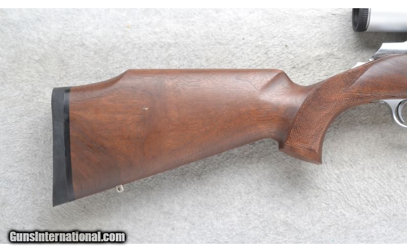 Description: This Browning Model A-Bolt is a right hand bolt action rifle in .270 Win. Cal. It has a 22 inch matte finish stainless steel barrel. It is outfitted with a Nikon Monarch 3 2.5-10x42 Scope. The butt stock is a checkered grip walnut pistol grip with a raised cheekpiece. The forearm is a checkered grip walnut schnabel style. .270 Winchester SOLD Chambers: Hidden detachable magazine. Metal Condition: Excellent. Some very minor use marks. Wood Condition: Excellent Bore Condition: Excellent Barrels: 22 inch matte finish stainless steel. Stock Dimensions: LOP 14 1/2 inches. Fore End: Checkered grip walnut schnabel style. Butt Pad: Browning black rubber recoil pad. Weight: 7 Lb. 14 Oz. Sights: Nikon Monarch 3 2.5-10x42 Scope. Item Location: Richfield, WI |