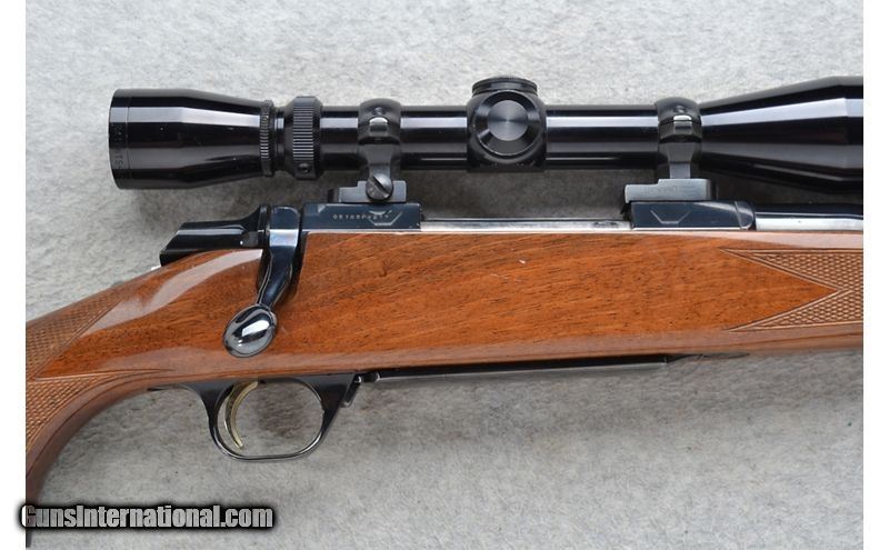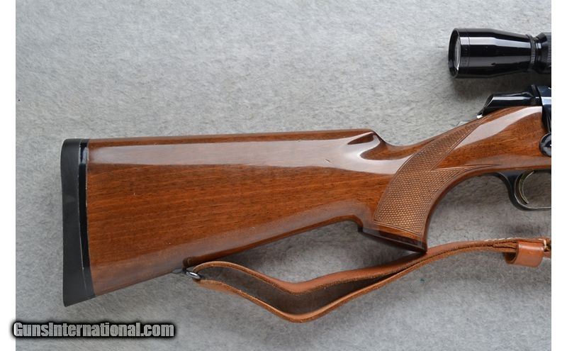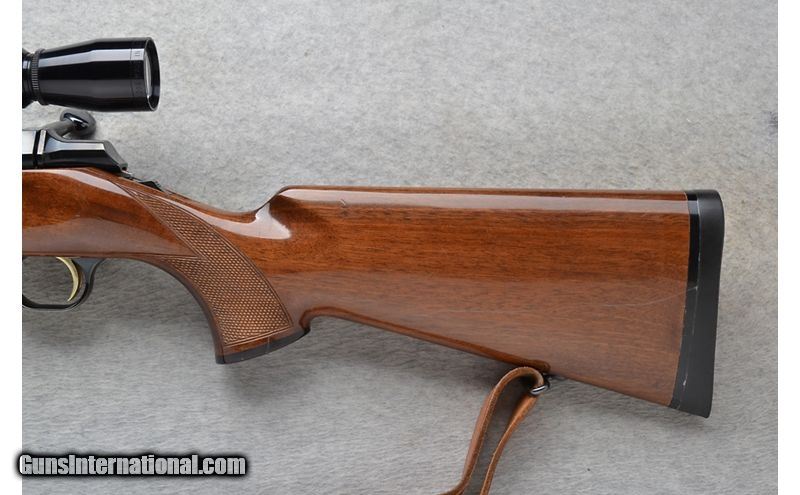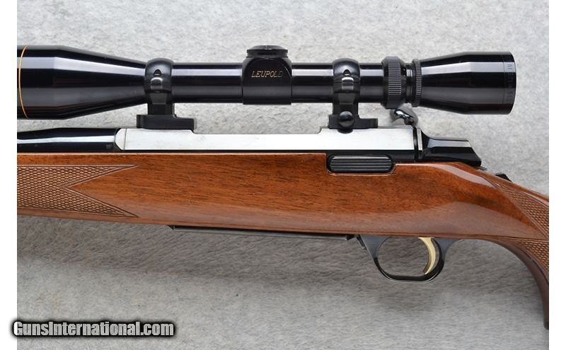 Description: This Browning Model A-Bolt is a right hand bolt action rifle in 7mm Rem. Mag. Cal. Only. It has a 24 inch barrel. It is outfitted with a Leupold 3x9 VARI-X IIc Scope. No iron sights. The butt stock is a checkered grip walnut pistol grip with a dark rosewood cap. The forearm is a checkered grip walnut with a rosewood tip. The grooved trigger is golden. 7mm Remington Magnum SOLD Chambers: Right hand bolt action 4 round hidden detachable magazine. Metal Condition: Very good with some minor handling marks and freckling on the barrel. Wood Condition: Fair. Many handling marks and scratches. Bore Condition: Excellent. Barrels: 24 inch. Triggers: Grooved. Golden. Stock Dimensions: LOP 13 5/8 inches. Fore End: Checkered grip walnut with a rosewood tip. Butt Pad: Browning checkered black rubber. Weight: 8 Lbs. 8 Oz. Sights: Leupold 3x9 VARI-X IIc Scope. No iron sights. Item Location: Richfield, WI |