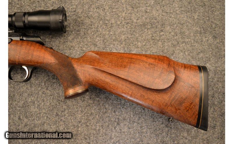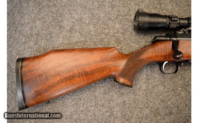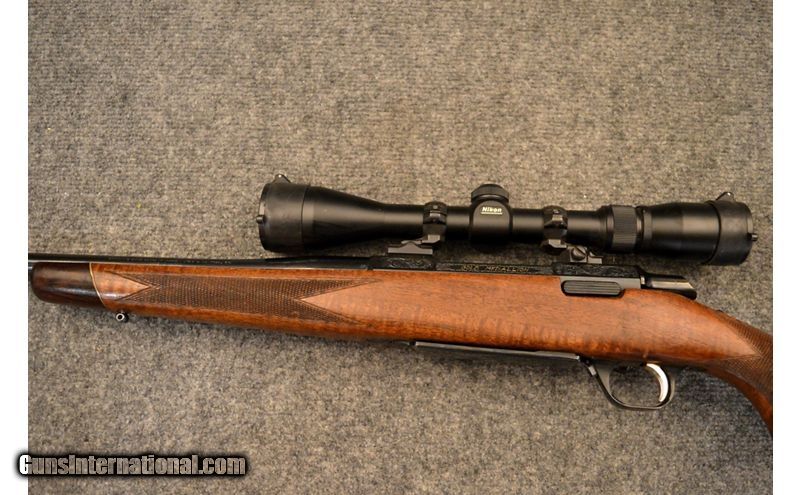 Description: This Browning A-Bolt Gold Medallion has elegant engraving on the receiver and on the scope rings. The original owner's name is engraved on the bolt. The figured stock appears to be an aftermarket stock with classic California lines. Chambered in the versatile .270 Winchester, this rifle is ready for the field! .270 Winchester SOLD Chambers: .270 Winchester Metal Condition: Very good Wood Condition: Very good with some compression dents Bore Condition: Very good Barrels: 22" with Browning BOSS system Triggers: Gold Browning trigger Butt Pad: Browning rubber pad Weight: 8 Lbs. 3 Ozs. Sights: Nikon Buckmaster 3-9x40mm Item Location: Albuquerque, NM |