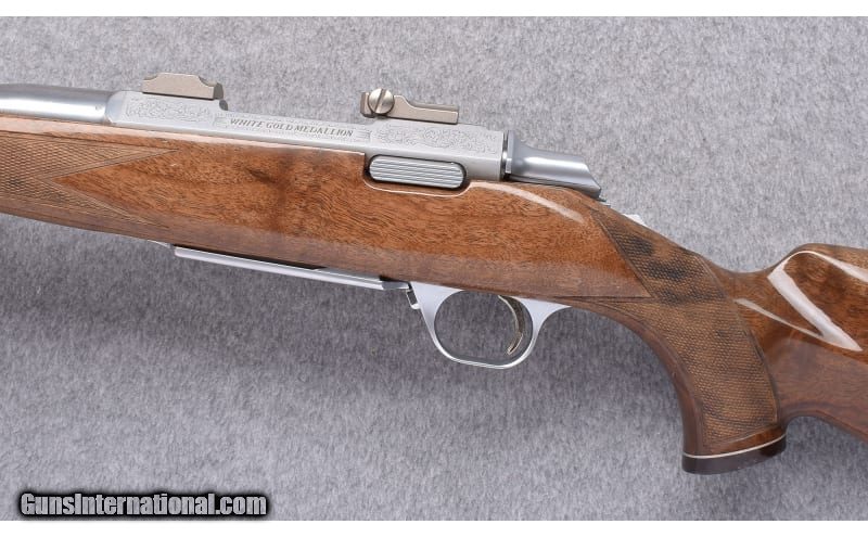 Description: Browning A-Bolt Gold Medallion . Stainless construction, engraved receiver and floorplate. Nicely figured Black Walnut Monte Carlo stock with right palm swell and rosewood caps. Solid rifle shows few scattered nicks and scratches. .300 WSM SOLD Metal Condition: Stainless Bore Condition: "Bright , Sharp Barrels: 23" Tapered Stainless Stock Dimensions: 13 3/4" LOP Butt Pad: Browning Recoil Pad Weight: 7 lbs Sights: Scope Bases Installed Item Location: Buda, TX |