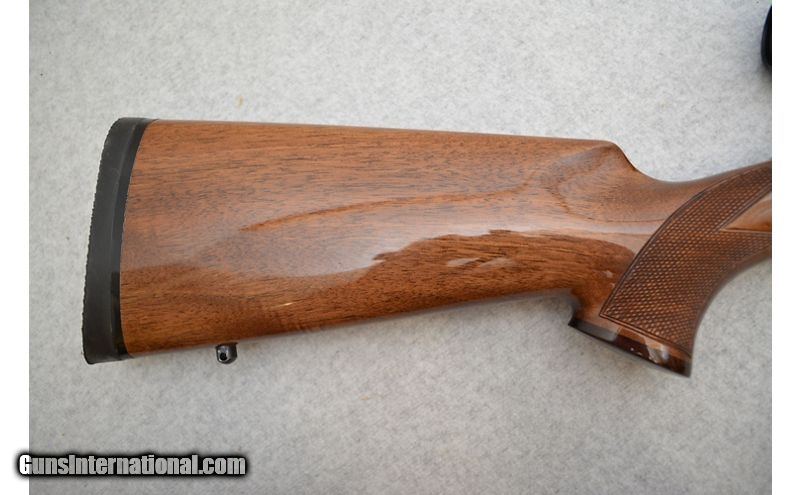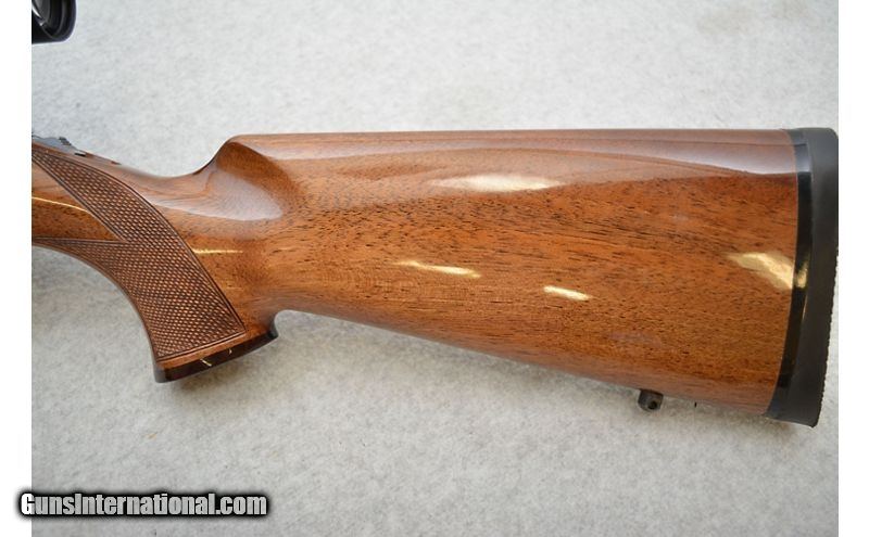 Description: Given that this rifle was built in 1988 it is in great shape. Metal and finish are in fantastic shape with no apparent damage or issues. The stock has a few handling marks to the finish but none are worth individual note. Comes with a single magazine but the magazine is not pictured. .270 Winchester SOLD Chambers: Bolt action fed from a removable internal magazine attached to a hinged floor plate. Metal Condition: Excellent. Wood Condition: Excellent. Bore Condition: Excellent. Barrels: 22" Gloss blued. Stock Dimensions: "Diamond pattern checkered walnut with rosewood grip cap, gloss finish, and 13¾ LOP. Fore End: Rosewood tipped walnut with diamond pattern checkered side panels. Butt Pad: Black rubber pad. Weight: 7lbs 8oz Sights: No iron sights. Comes equipped with a Leupold VX-I 3-9x40mm scope. Chokes: N/A Item Location: Green Bay |