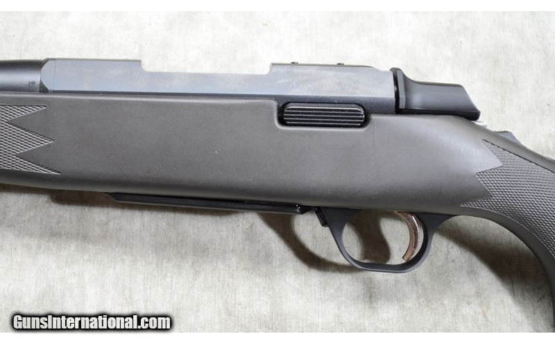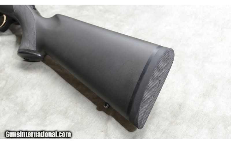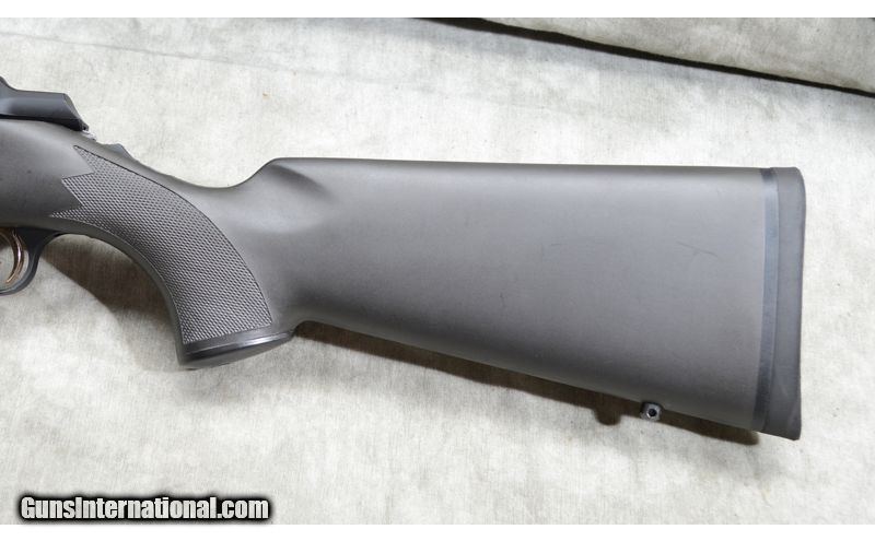 Description: This black synthetic features pistol grip, .243 chambering , black ceramacoat metal parts and is scope-ready. .243 Winchester SOLD Chambers: 4-round magazine. Metal Condition: Excellent. It has been fired but could pass for new. Wood Condition: Excellent. Bore Condition: Bright and shiny. Barrels: 22 inch. Triggers: Factory grooved trigger. Stock Dimensions: 13-5/8 inch LOP. Butt Pad: Soft rubber pad. Weight: 6 Lb. 6 Oz. Sights: Set up for your choice of scope. Item Location: Rogers |