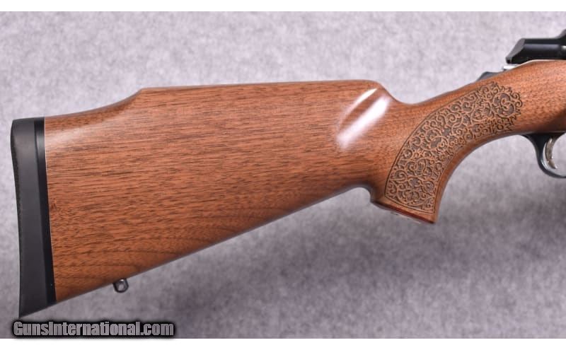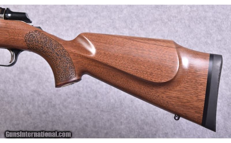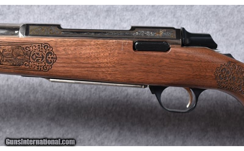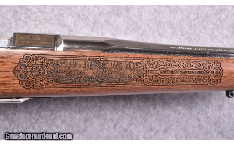Description: This Browning A-Bolt II Classic Hunter was a Rocky Mountain Elk Foundation Banquet gun in 2005 and is #388 of 445. It appears unfired and comes with the original box. It's walnut stock is laser etched with an elk scene on the forend and beautiful scroll work on the pistol grip. The stainless octagonal barrel is tapered. The stainless action and hinged floor plate have black and gold inlays with additional elk scenes. The pistol grip has a Rocky Mountain Elk Foundation medallion. The rifle is in new condition except for a few minor dings in the stock (see photos). This is priced to be appealing to either the collector or the hunter. Beautiful and practical, this will not be available long. .338 Winchester Magnum SOLD Metal Condition: Excellent Wood Condition: Excellent Bore Condition: Excellent Barrels: 26" octagonal stainless tapered barrel Stock Dimensions: 13-3/4" length of pull Butt Pad: Browning rubber recoil pad Weight: 7.6 lbs Item Location: Boise, ID |
