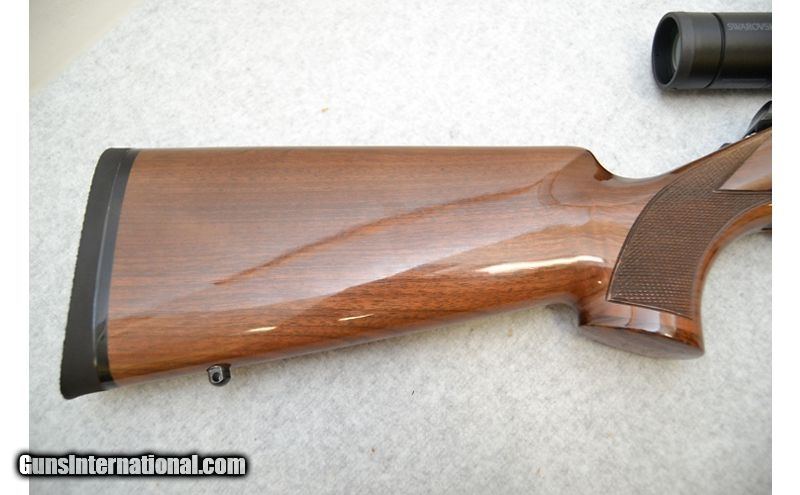 Description: Very good condition overall. Metal is pristine. The stock is only a hair less well off; bearing a very few number of very minor marks to the finish. A single magazine is included but not pictured. .325 WSM SOLD Chambers: Bolt action fed from internal detachable magazines. Metal Condition: Very good to excellent. Wood Condition: Stock is in very good condition. Bore Condition: Excellent with healthy shine and sharp rifling. Barrels: 20" Gloss blued with B.O.S.S. Triggers: Wide gold colored with grooved surface. Stock Dimensions: Diamond pattern checkered walnut with a 13¾" LOP. Rosewood grip cap. Fore End: Walnut with diamond pattern checkered side panels and stock cap. Butt Pad: Black Browning branded rubber pad. Weight: 7lbs 12oz Sights: No iron sights. Comes equipped with a Swarovski 3-10x42mm Z3 scope. Chokes: N/A Item Location: Green Bay |