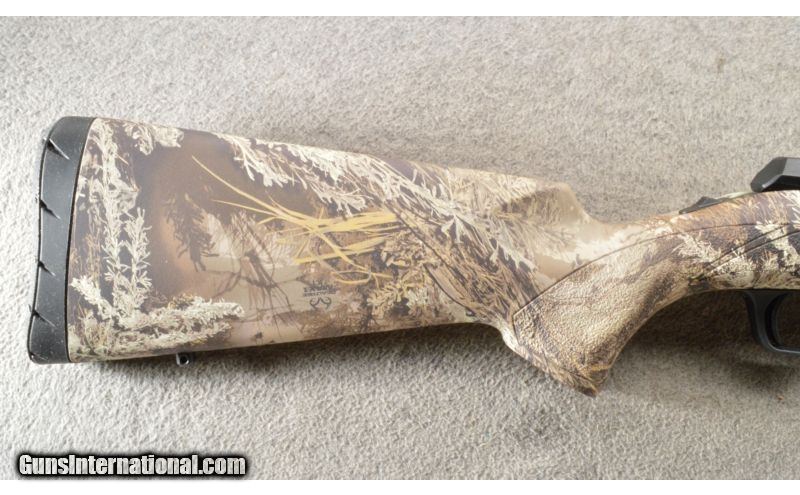 Description: This is a like NIB Browning A-Bolt III rifle in .308 Winchester. This bolt action rifle features a 22 inch barrel with threaded muzzle, brake, cap and removable magazine. It comes in a Browning polymer stock in Real Tree Max-1 XT camo and matte blue receiver and barrel. SOLD Manufacturer: 2018 Caliber Info: .308 Winchester. Chambers: Bolt action repeater. Metal Condition: ANIB. Wood Condition: ANIB. Bore Condition: ANIB. Barrels: 22 inch with treaded muzzle brake. Triggers: Single blued. Stock: Synthetic pistol grip stock in Real Tree Max-1 XT camo. Stock Dimensions: 13 3/4" LOP. Fore End: Matching synthetic forearm with textured grip. Butt Pad: Browning Inflex pad. Weight: 6 Lbs 8 Ozs. Sights: Drilled and tapped for your scope bases and rings. Extras: Comes in the factory box with a lock, 1 mag and the factory paperwork. Item Location: Owatonna, MN |