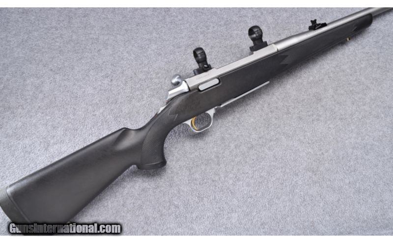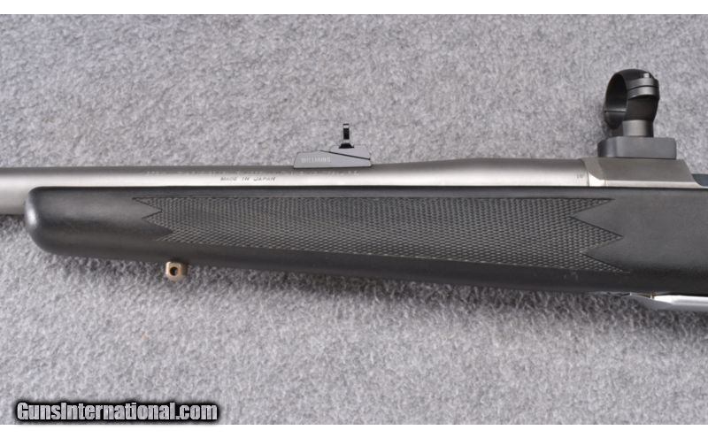Description: Metal shows a couple small scuffs. Bore remains excellent. Synthetic stock also remains excellent. Complete with rings and bases. SOLD Manufacturer: S/N 74XXXNWKXX Caliber Info: .375 H&H Mag. Metal Condition: Very Good Bore Condition: Excellent Barrels: 23" Stainless Triggers: Factory Stock: Checkered Black Synthetic Pistol Grip Stock Dimensions: 13 3/4" LOP Fore End: Checkered Black Synthetic Butt Pad: Black Rubber Weight: 7 3/4 LB Sights: Bead Front Item Location: Wheeling, WV |