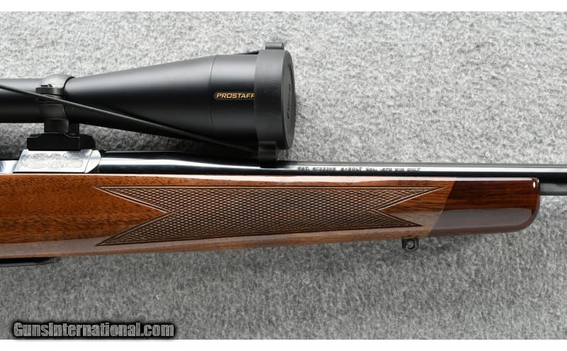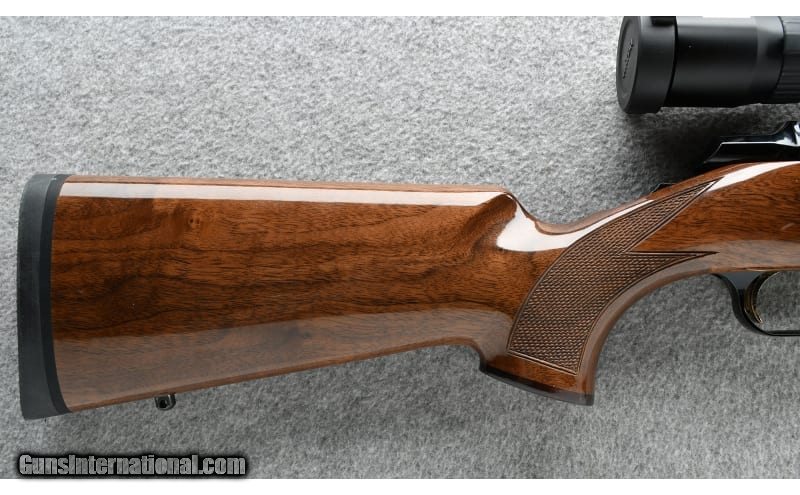 Description: Manufactured in Japan for Browning in 2014 .270 Winchester SOLD Chambers: .270 Winchester in a five round detachable box magazine bolt action rifle Metal Condition: "Very good, appears near new Wood Condition: "Very good, with a small scratch on the left side of the buttstock and wrist Bore Condition: Sharp & Bright Barrels: 26" 1:10 Twist Triggers: Single Stock Dimensions: 13 5/8" LOP Fore End: Checkered walnut with rosewood tip and sling stud Butt Pad: Browning rubber Weight: 9 lbs. Sights: "No sights, fitted a Nikon Prostaff 4-12X40 Scope with lens covers Item Location: Grand Junction, CO |
