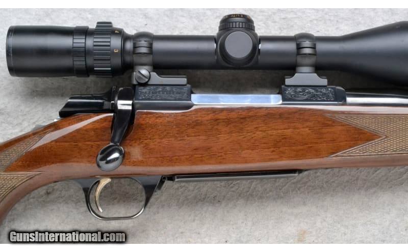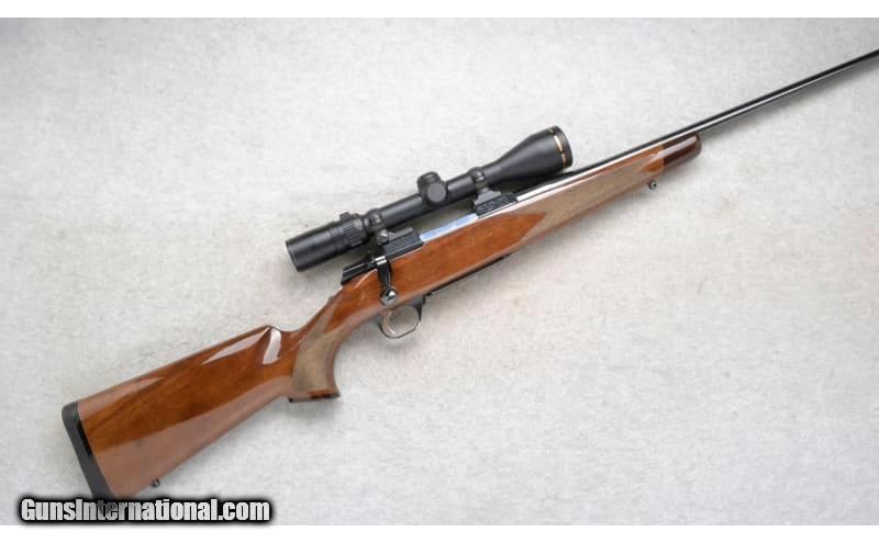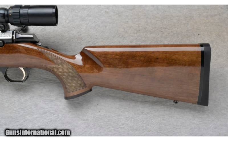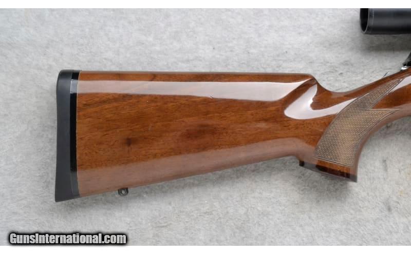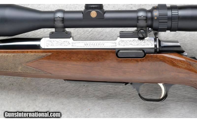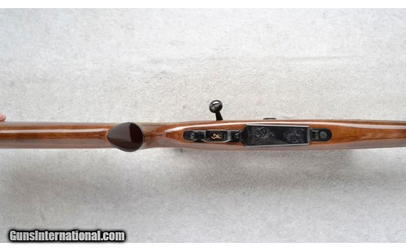 Description: This Browning Model A-Bolt Medallion is a right hand bolt action rifle in .300 WSM Cal. Only. It has a 23 inch barrel. It is outfitted with a Bushnell 3-9 Scope. The butt stock is a checkered grip walnut pistol grip with a rosewood cap. The forearm is a checkered grip walnut with a rosewood tip. The receiver and floorplate are engraved. Made in Japan. .300 WSM SOLD Chambers: Hidden detachable magazine. Metal Condition: Excellent. Wood Condition: Very Good. Has some light handling marks. Bore Condition: Excellent. Barrels: 23 inch. Stock Dimensions: LOP 13 1/2 inches. Fore End: Checkered grip walnut with a rosewood tip. Butt Pad: Browning black rubber pad. Weight: 7 lb. 10 oz. Sights: Bushnell Elite 3200 3-9 Scope. Item Location: Richfield, WI |