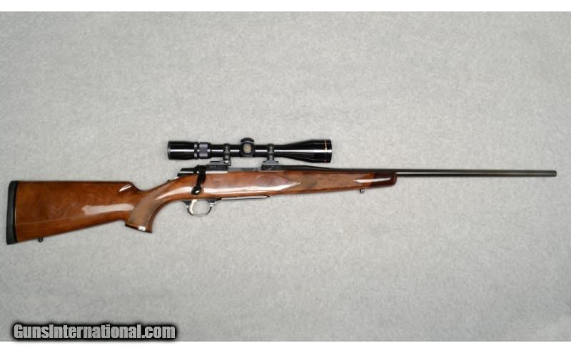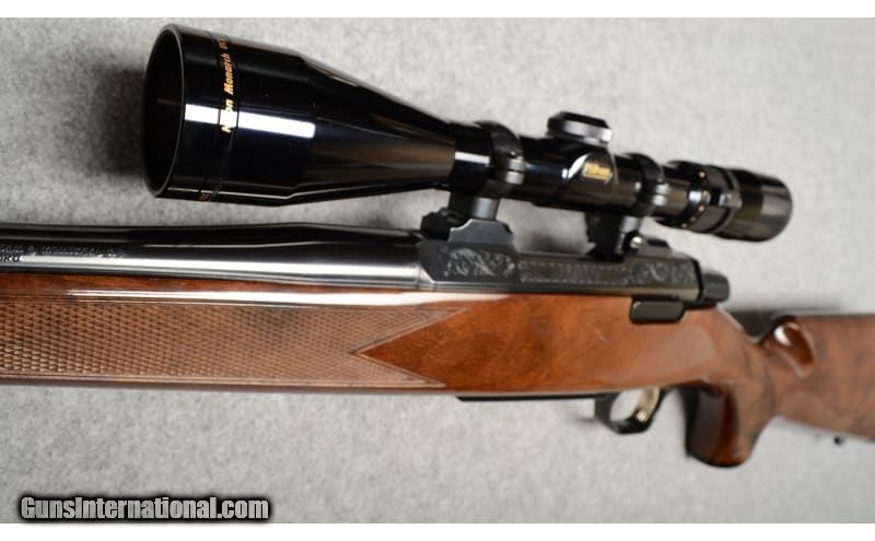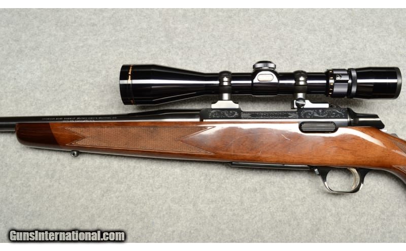Description: This beautiful rifle is outfitted with a glossy finished stock, checkered fore end, and a tasteful engraving on the receiver. .300 WSM SOLD Metal Condition: Excellent Wood Condition: Excellent Bore Condition: Excellent Barrels: Factory 22 Weight: 4 lbs Sights: Nikon Scope Item Location: Columbus, OH |