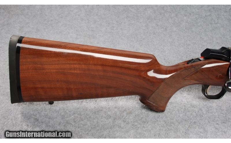 Description: SOLD Caliber Info: 7mm Rem. Mag. Metal Condition: Very minor handling marks. Wood Condition: Scratches and contact marks. Bore Condition: Bright and clean with strong rifling. Barrels: 26 Stock: Gloss Walnut with checkered pistol grip. Stock Dimensions: 13 5/8" LOP Fore End: Checkered gloss Walnut with Cherry wood tip. Butt Pad: Rubber Weight: 8 Lbs. 6 Oz. Sights: Scope bases and rings. Item Location: Billings, MT |