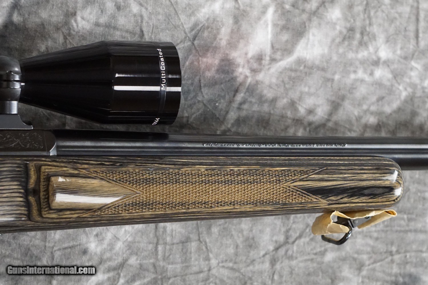 Description: Pre-Owned Browning A-Bolt Medallion Varmint chambered in .223 Remington, 25" barrel (To End of Muzzle Brake) with Boss system adj. muzzle brake. Blued action with scroll engraving, factory high-gloss Laminate varmint style stock. Gun is unfired, still with hang-tags; minor scuffs from storage, excellent overall condition. Includes Simmons 7780 3-9 scope. Consignment, ineligible for trade-ins. SOLD Rifle Caliber: .223 Remington |