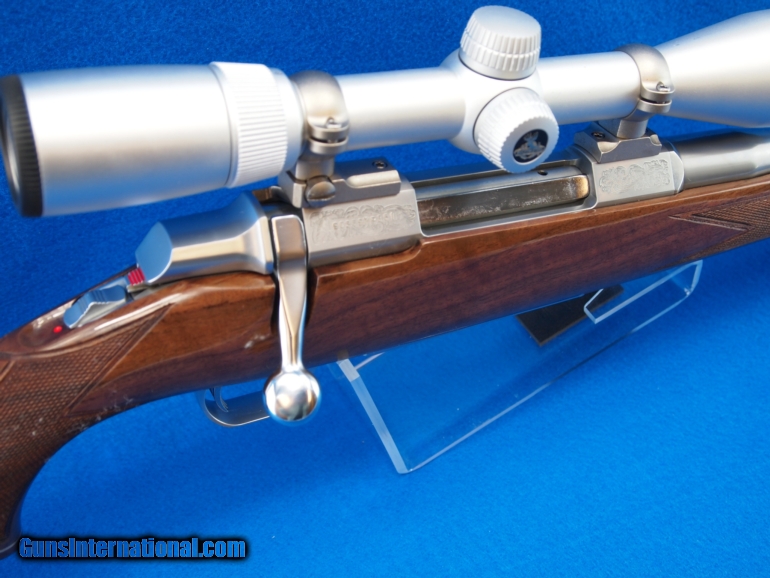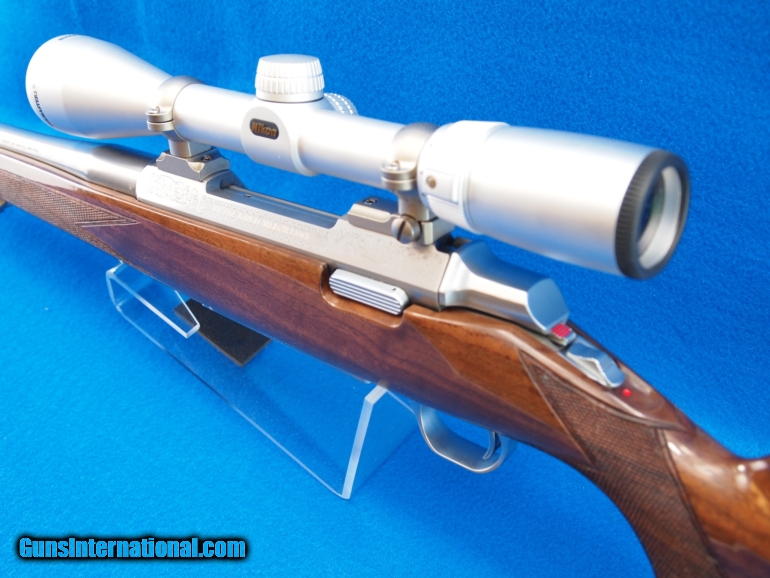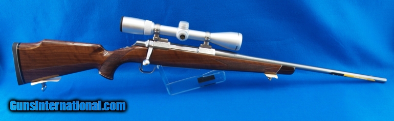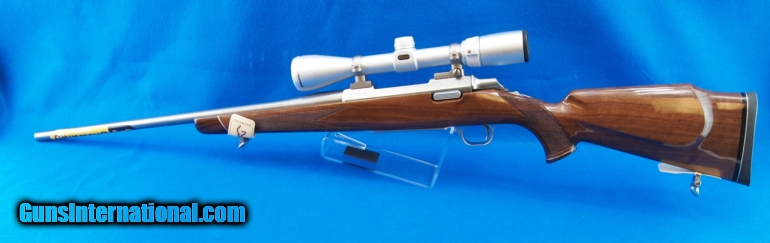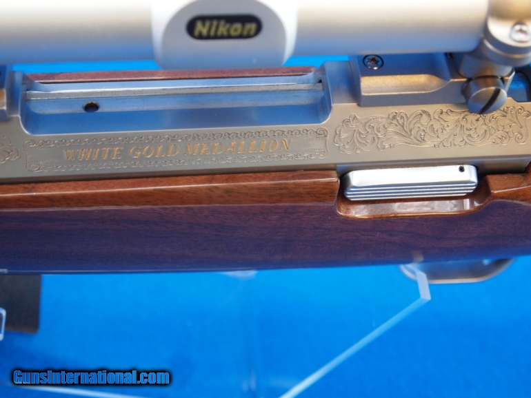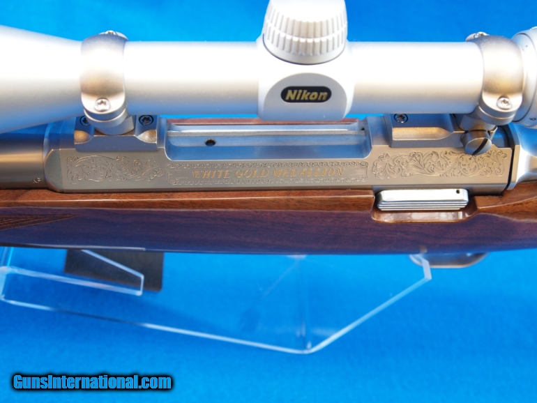 Description: Browning A-Bolt White Gold Medallion .270 WIN., 22 inch polished stainless steel free floating glass bedded barrel, 13 3/4 inch LOP, scroll engraving on polished receiver, adjustable feather trigger, detachable 4 round rotary magazine, top tang safety, bolt unlock button, gloss finished checkered walnut stock with rosewood fore-end grip tip[ and pistol grip cap, sling swivels, recoil pad, Nikon Buckmasters 3-9X40 scope. Gun Like New. Add 3% for credit cards $25.00 S&H SOLD |
