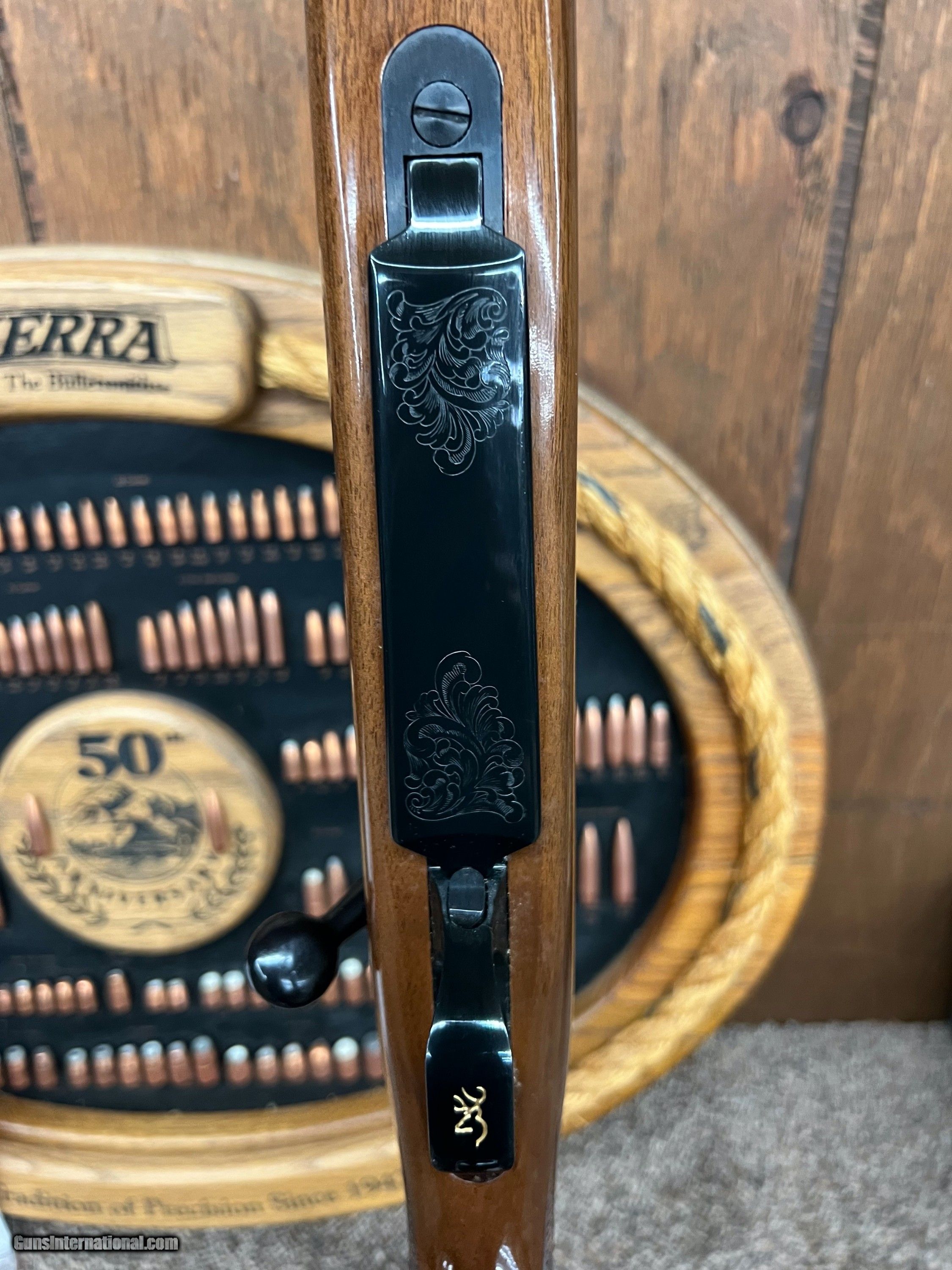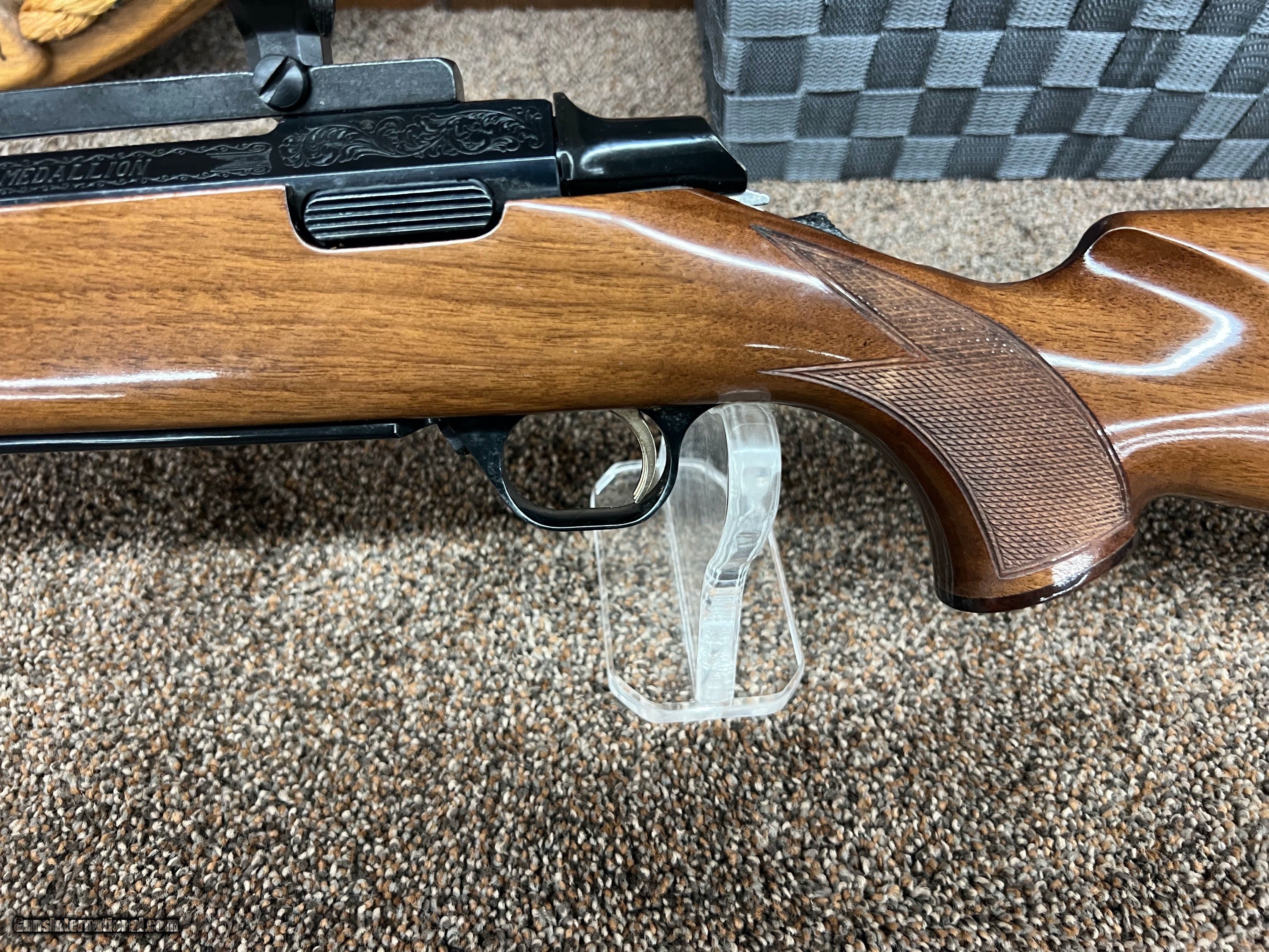 Description: Here's a nice lightly used Browning Abolt Medallion 7mm Rem Mag, exc bore, 26" barrel, engraved receiver, rosewood forend tip and pistol grip cap, solid pad, has engraved rings and a scope base included, a few light marks but nothing serious, a nice early Abolt Medallion! 2.99% credit card fee, 50.00 shipping, PA residents add 6% sales tax. SOLD Rifle Caliber: 7mm Remington Magnum |