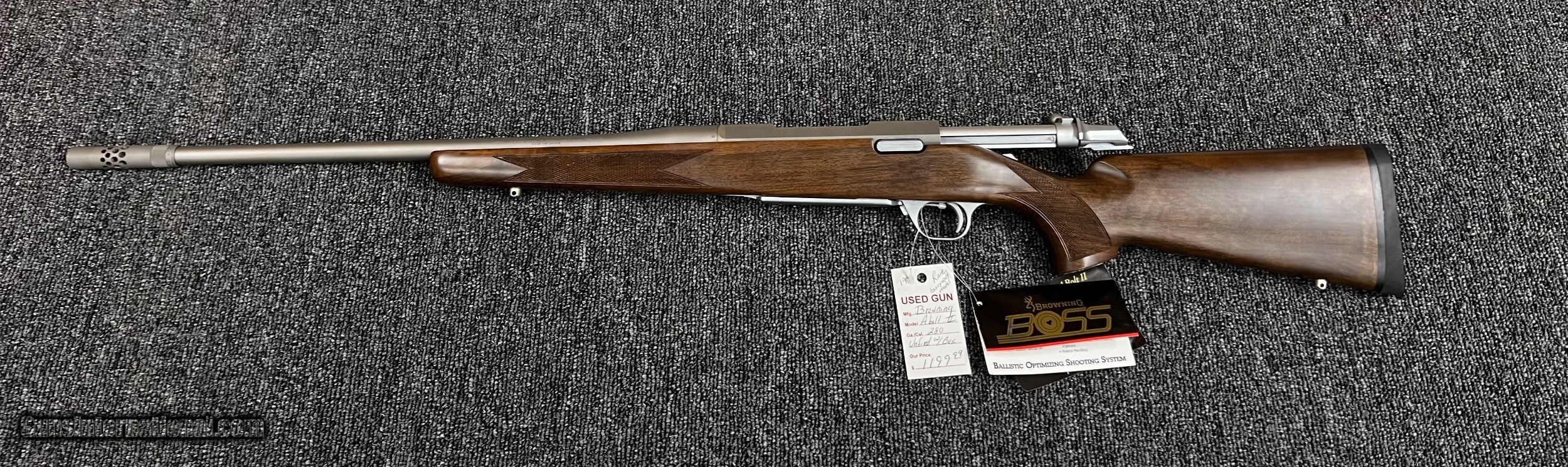 Description: Browning A-bolt II stainless greywolf BOSS. This was amnufactured in 1994 and was only produced in this stainless/walnut finish for around 3 years. Chambered in .280 remington with 22" barrel. Gun is UNFIRED, NIB that customer won at National Wild Turkey banquet in 1994. Factory Browning tags never removed from tigger guard. Small scratch in butt end of stock as pictured. Comes with factory original box. $1200.00...buyer pays shipping and insurance Email: Johnsonsgunsyahoo Phone: 517-265-2654 Used firearm : johnsonsgunsyahoo W. Johnson Service Inc. 3654 N. Adrian Hwy. Adrian, MI 49221 SOLD Rifle Caliber: .280 Remington Manufacturer: Browning Model: A-bolt II Barrel Length: 22 Condition: NIB Metal Condition: NIB Wood Condition: NIB Bore Condition: Unfired |