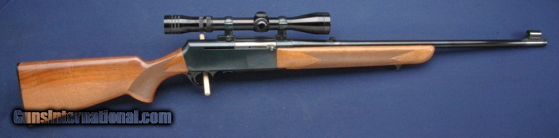 Description: First year (1967) Browning BAR chambered in .243. Excellent overall condition, excellent bright bore, smooth action. A couple of small scrapes under the ejection port are pretty much all of the wear you can see. It has a Redfield Widefield 3x9 duplex optic on Redfield mounts- clear glass. Lovely early Belgium rifle in top condition. You won't be disappointed. In order to protect your investment, all long guns over $500 must be shipped in a hard case. Minimum shipping at this level is $55 and includes the hard case. Shipping cost could increase depending on value or weight of the firearm. For long guns less than $500, we still recommend the purchase of a hard case, again to protect your investment. These numbers are for shipping to the lower 48. There is also a 3% surcharge for customers using a credit card on internet sales. Thank you! SOLD Rifle Caliber: .243 Winchester |