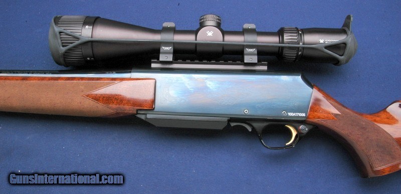 Description: Nice Browning BAR Safari chambered in 30-06. This is a Belgium/Portugal gun in excellent overall condition with a mint bright bore. Barrel measures 22" including the BOSS System. The optic is a Vortex Crossfire II, 6-24x50. The reticle is a duplex with stadia lines. It weighs 9 lbs 14 as you see it. Overall length 43" with a LOP of 14". There are a number of small dings and bangs in the wood from use. The pictures accurately represent color and condition of this firearm. $55 shipping to the lower 48, 3% surcharge for using a CC. If you choose to pay with a personal check, we will hold the item for up to 10 days to make sure that it clears. Please expedite such pymts as we will hold an item on your word for 5 days. SOLD Rifle Caliber: .30-06 Springfield |