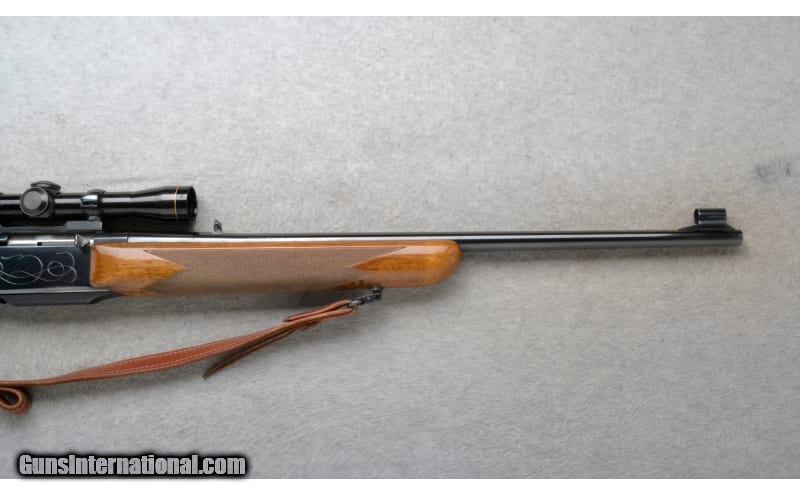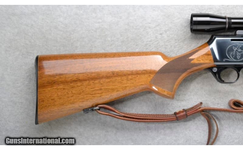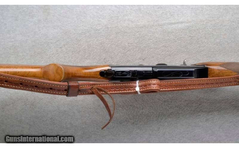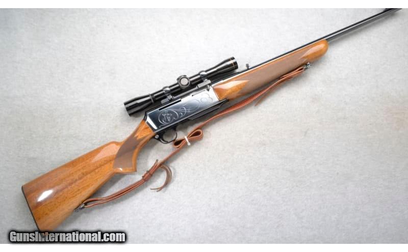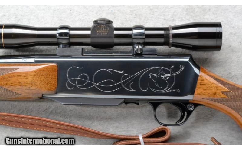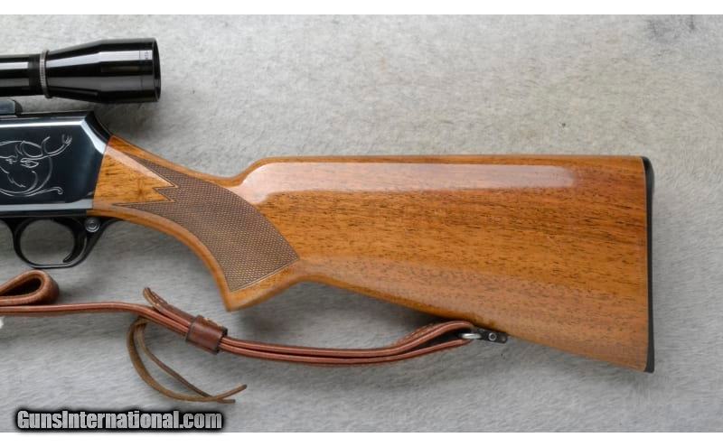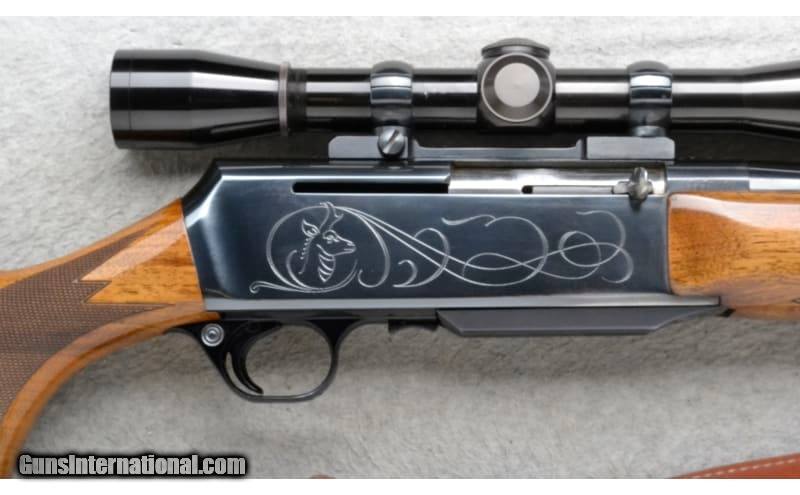 Description: This Browning Model BAR is a right hand semi-auto rifle in .30-06 Sprg. Cal. It has a 22 inch barrel. A hooded front blade sight and a folding adjustable notch middle sight. It is outfitted with a Leupold Scope. The butt stock is a checkered grip walnut pistol grip. The forearm is a checkered grip walnut. The receiver is lightly engraved. Made in Belgium. .30-06 Springfield SOLD Chambers: Hidden detachable magazine. Metal Condition: Excellent. Wood Condition: Good. Many light handling marks. A little finish wear. Bore Condition: Excellent. Barrels: 22 inch. Stock Dimensions: LOP 13.75 inches. Fore End: Checkered grip walnut. Butt Pad: Browning black plate. Weight: 8 lb. 10 oz. Sights: Hooded front blade. Folding adjustable notch middle. Leupold M8-4X Scope. Item Location: Richfield, WI |