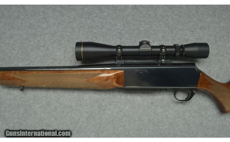 Description: This Browning BAR is chambered in .30-06 Springfield. It has a 22" barrel and comes with a 3-9 Leupold scope. It has a small chip missing out of the grip and minor use wear. Comes with one magazine. Made in Belgium. .30-06 Springfield SOLD Chambers: .30-06 Springfield Metal Condition: "Good, minor use wear Wood Condition: Use wear Bore Condition: Very good Barrels: 22 Stock Dimensions: LOP 13 1/2 Butt Pad: Browning butt plate Weight: 8 lbs 10 oz Sights: Leupold 3-9 Item Location: Sun Prairie, WI |